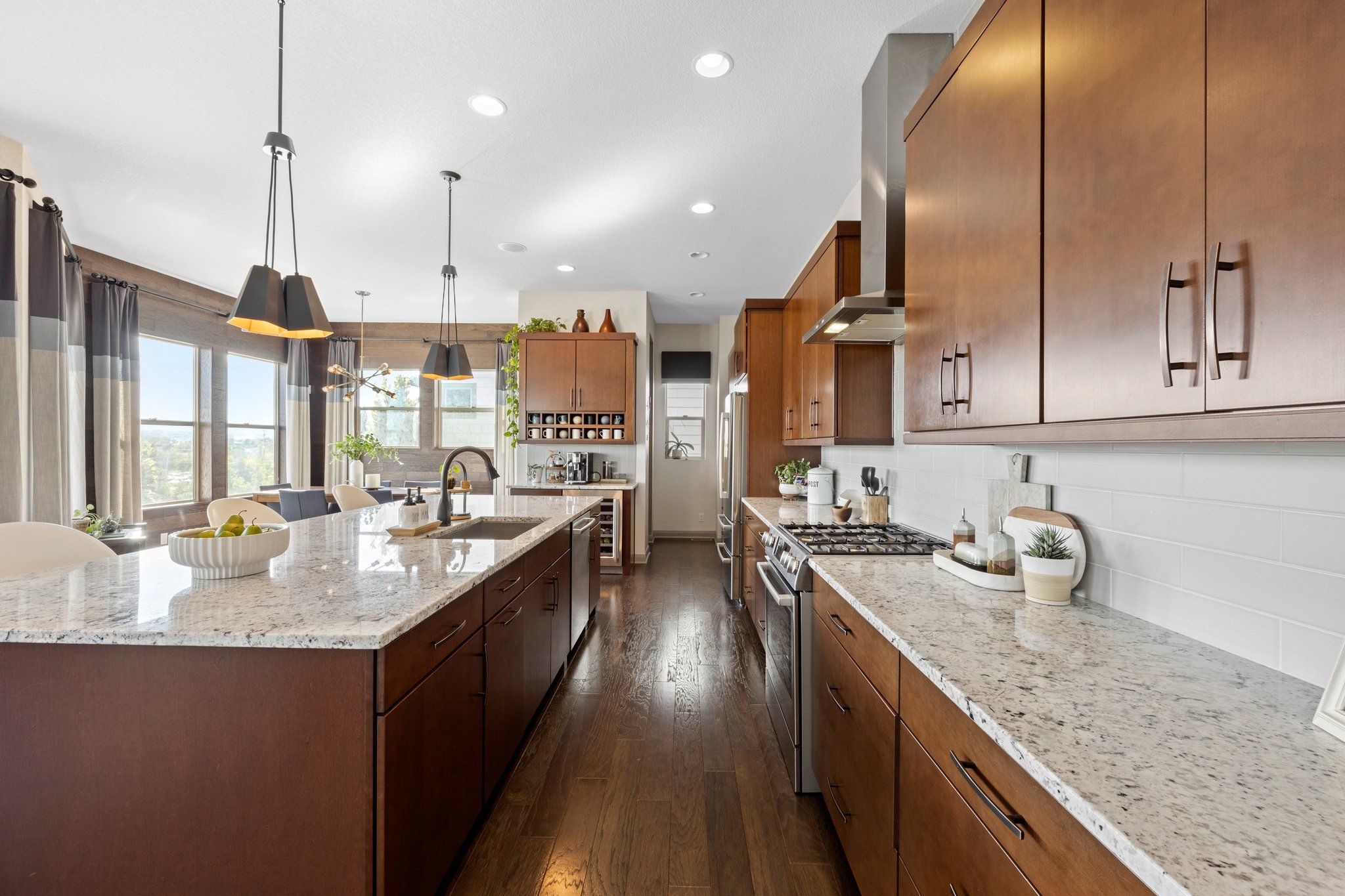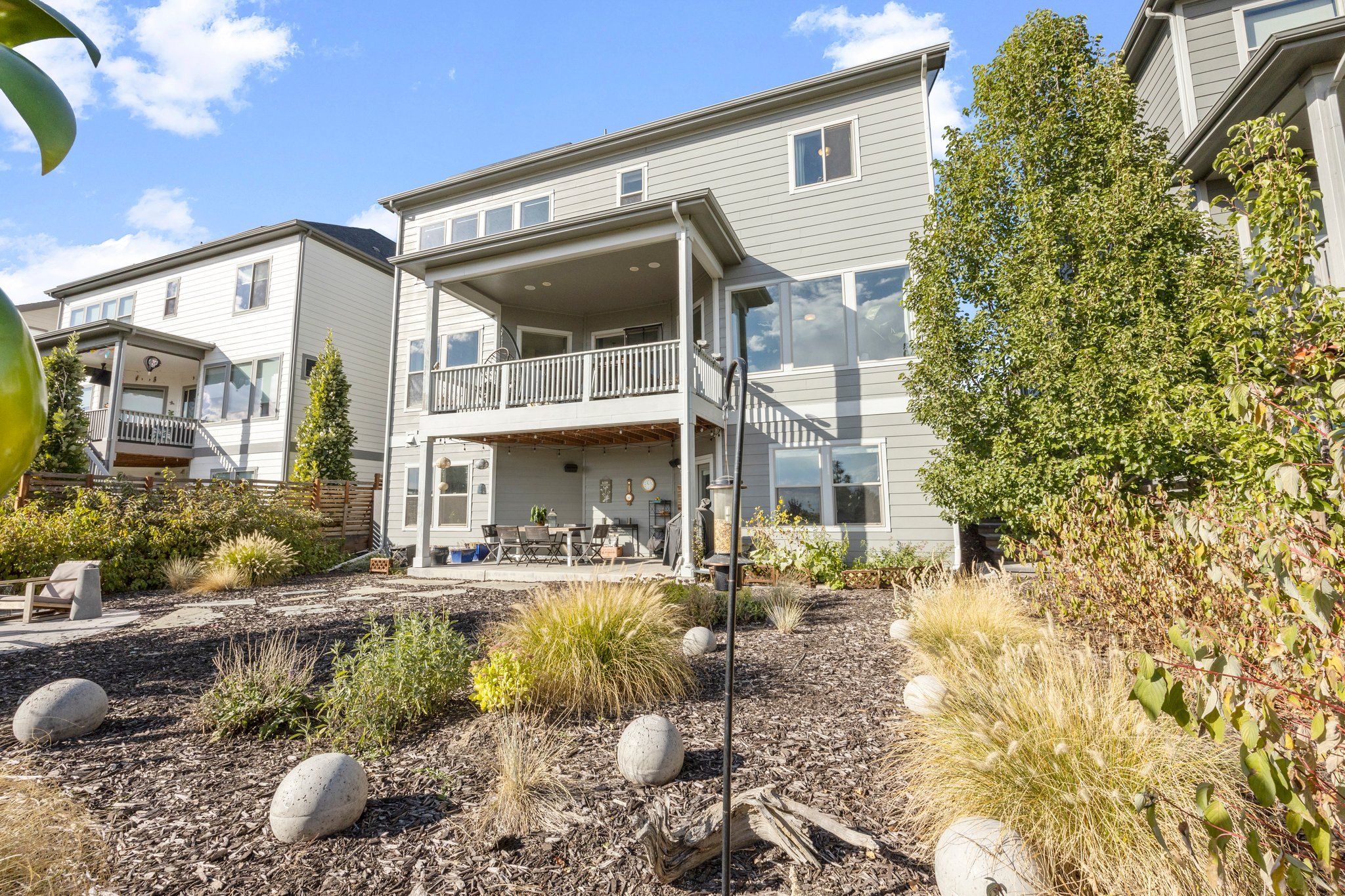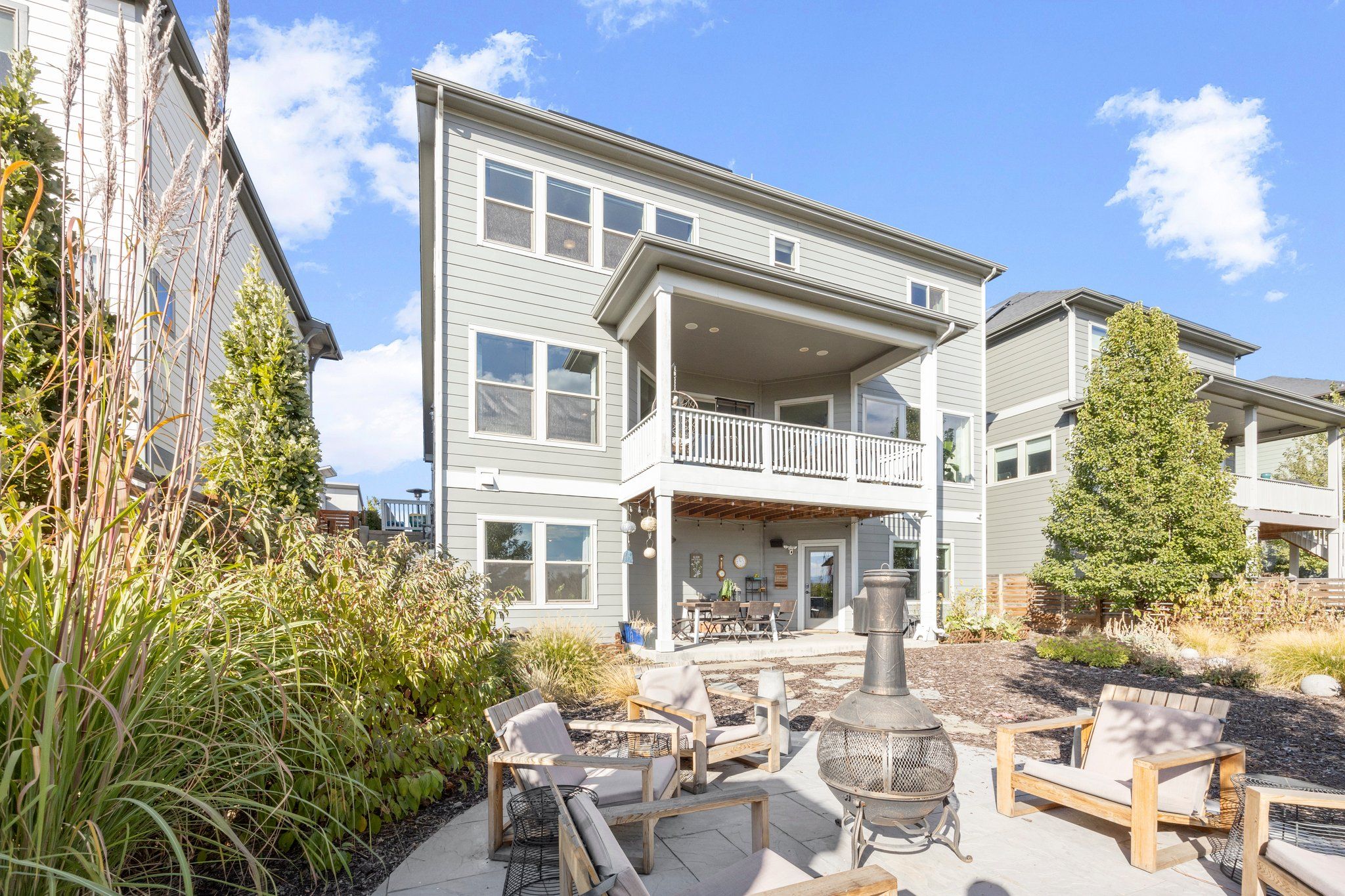 The gourmet kitchen features a large quartz island, stainless steel appliances, pantry, and wine/coffee bar. Upstairs, a spa-like Master Retreat with a large walk-in closet and en-suite bath affords additional privacy A light and bright loft separates the Master from two additional bedrooms and a convenient upstairs laundry with built in storage. The fully finished walk-out basement boasts high ceilings and lots of windows continuing the spacious, open feel with an additional bed, bath, and recreation space. A large yard with a greenbelt just beyond ensures additional privacy and unobstructed views.