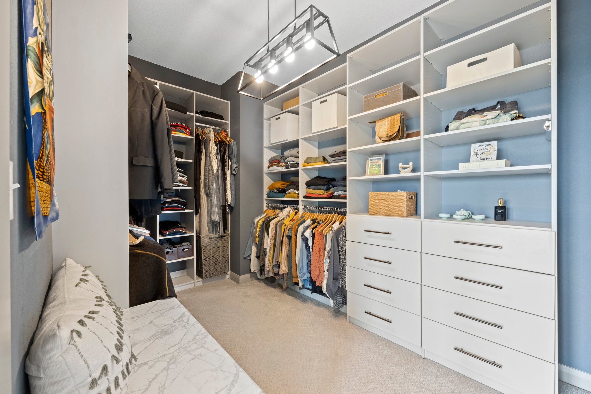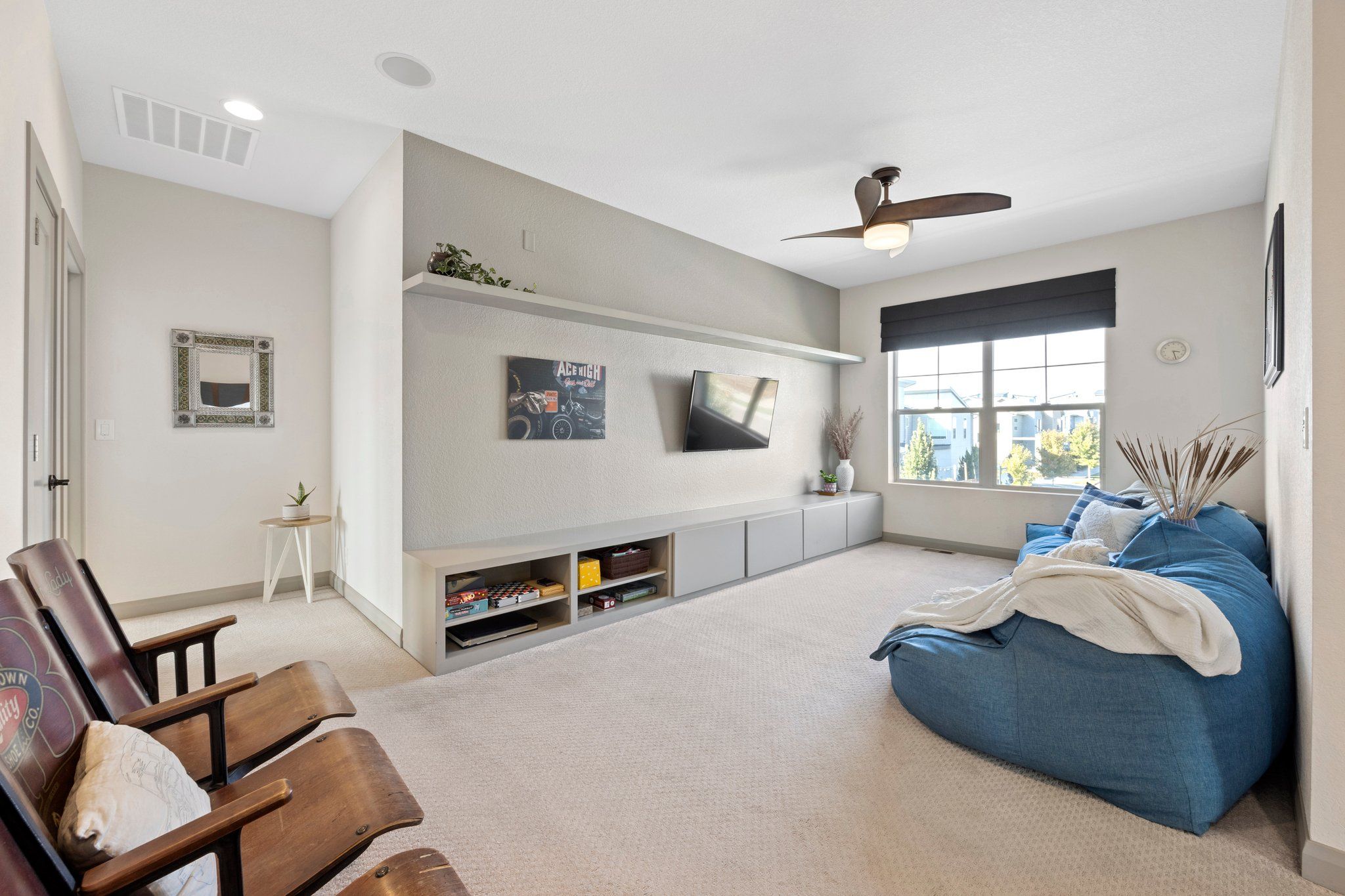 You’ve hit the jackpot with this contemporary Energy Star Certified Home! This home was the builder’s formal model home as you can imagine, grand finishes abound. Even the most discerning aesthetic appetites will be satisfied with a myriad of sumptuous feature walls, shiplap, built-ins, floor to ceiling tile, custom lighting, and drapery. The current owners have added over $50,000 worth of upgrades including solar panels, smart irrigation, Closet Factory closet system in the primary bedroom, a state-of-the-art sound system and alarm system (with cameras), plus professional landscaping and hardscaping including concrete stairs, French drain, garden beds, and patio pavers.