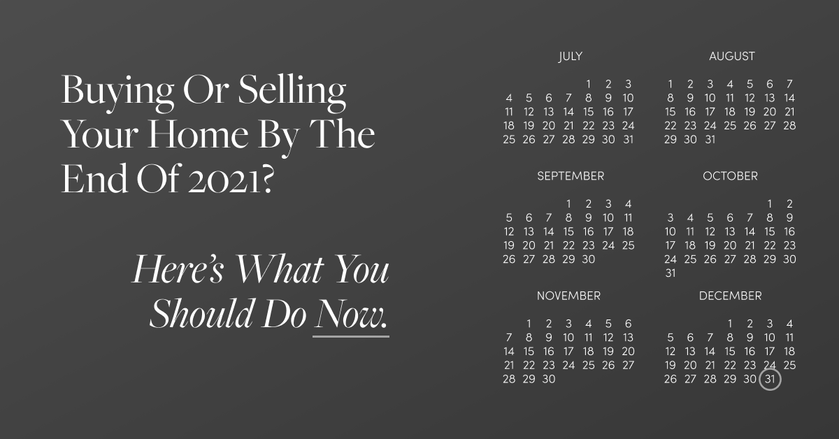 Here’s the month-by-month breakdown of what you can expect if you’re buying or selling by the end of the year.