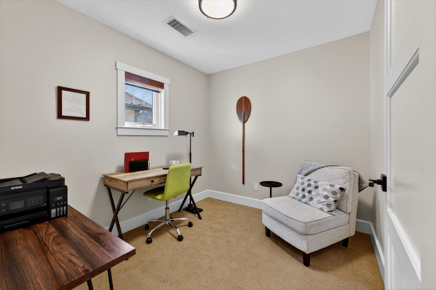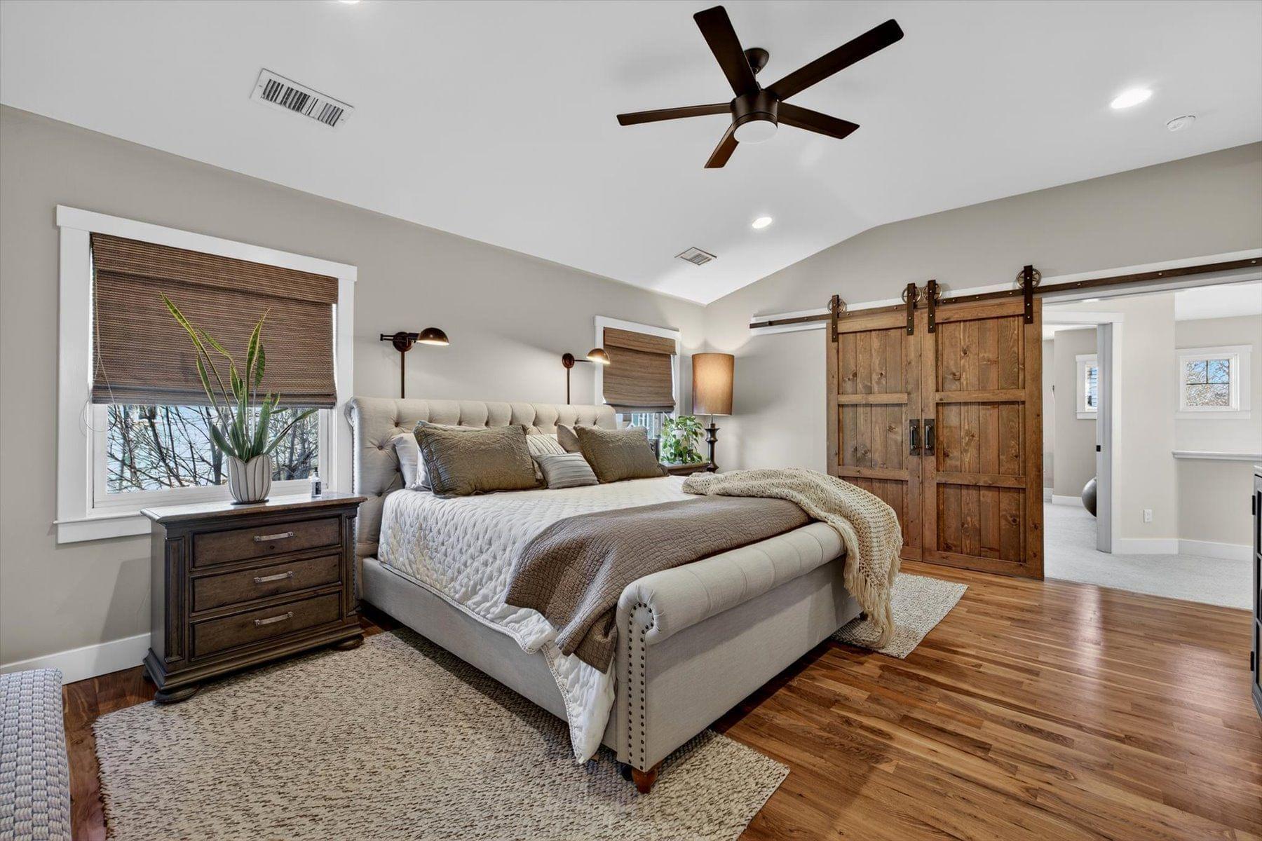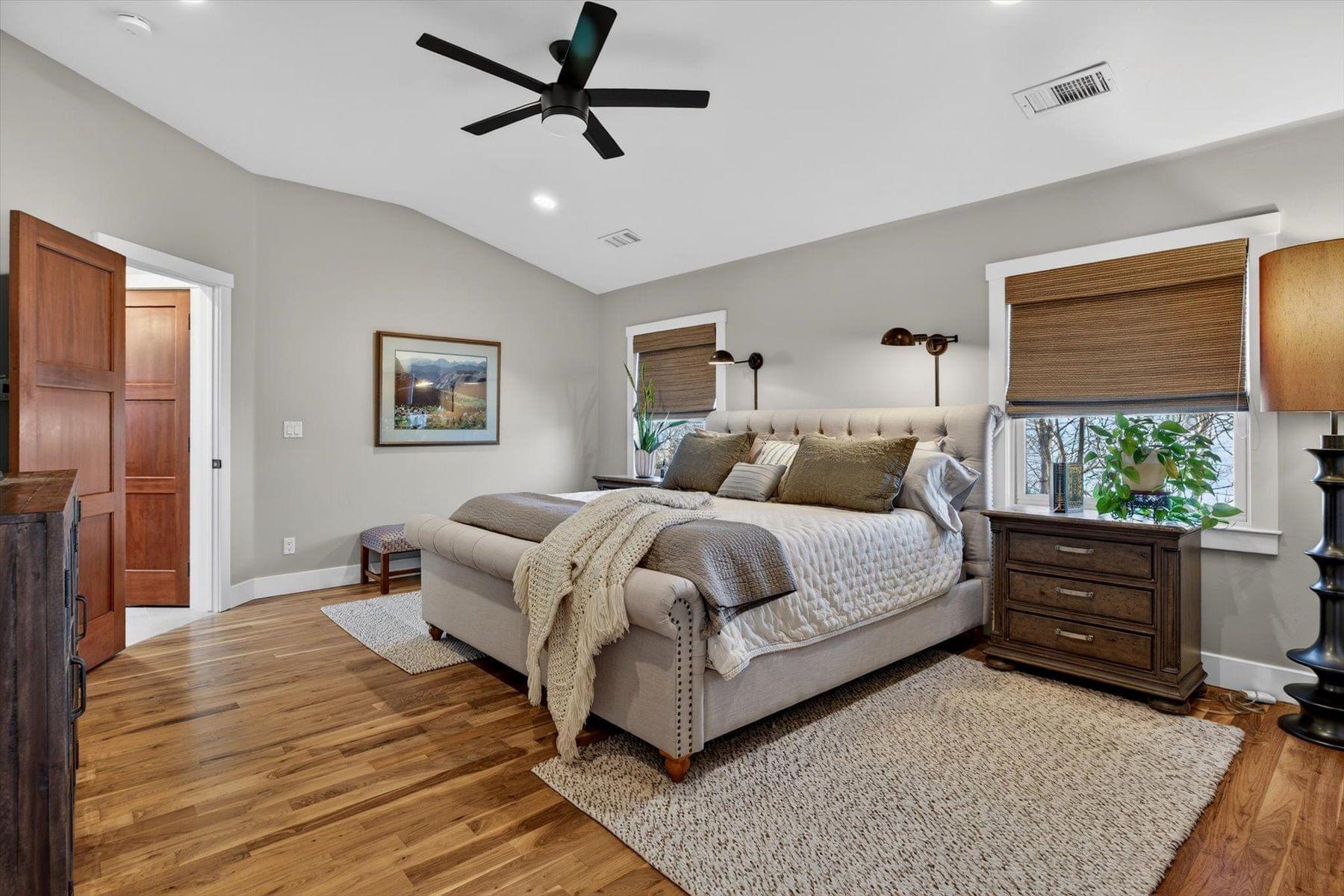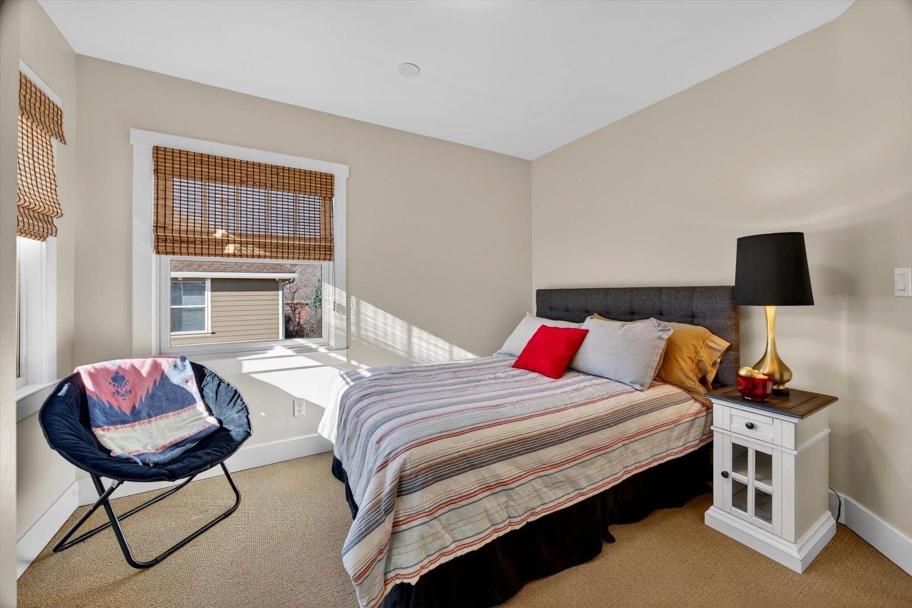Upstairs, the reimagined primary suite is a true retreat. The bedroom boasts hardwood floors, Roman shades, and an en suite bath. The spa-inspired bath beckons with a quartz double vanity, Carrara marble tiling throughout, a walk-in shower, and an indulgent soaking tub. The generously sized walk-in closet offers a secret access to the carriage house. Two additional bedrooms, a whimsical full bath, an airy loft, and upper-level laundry meet the demands of daily life with ease.