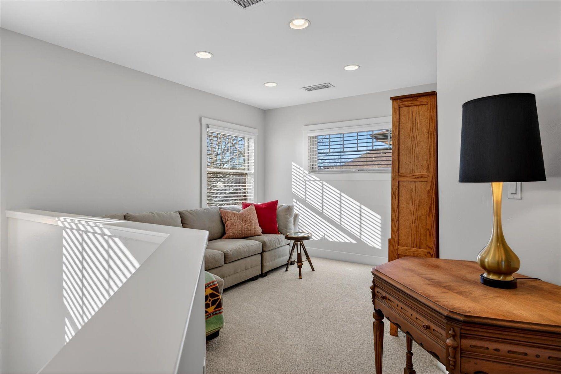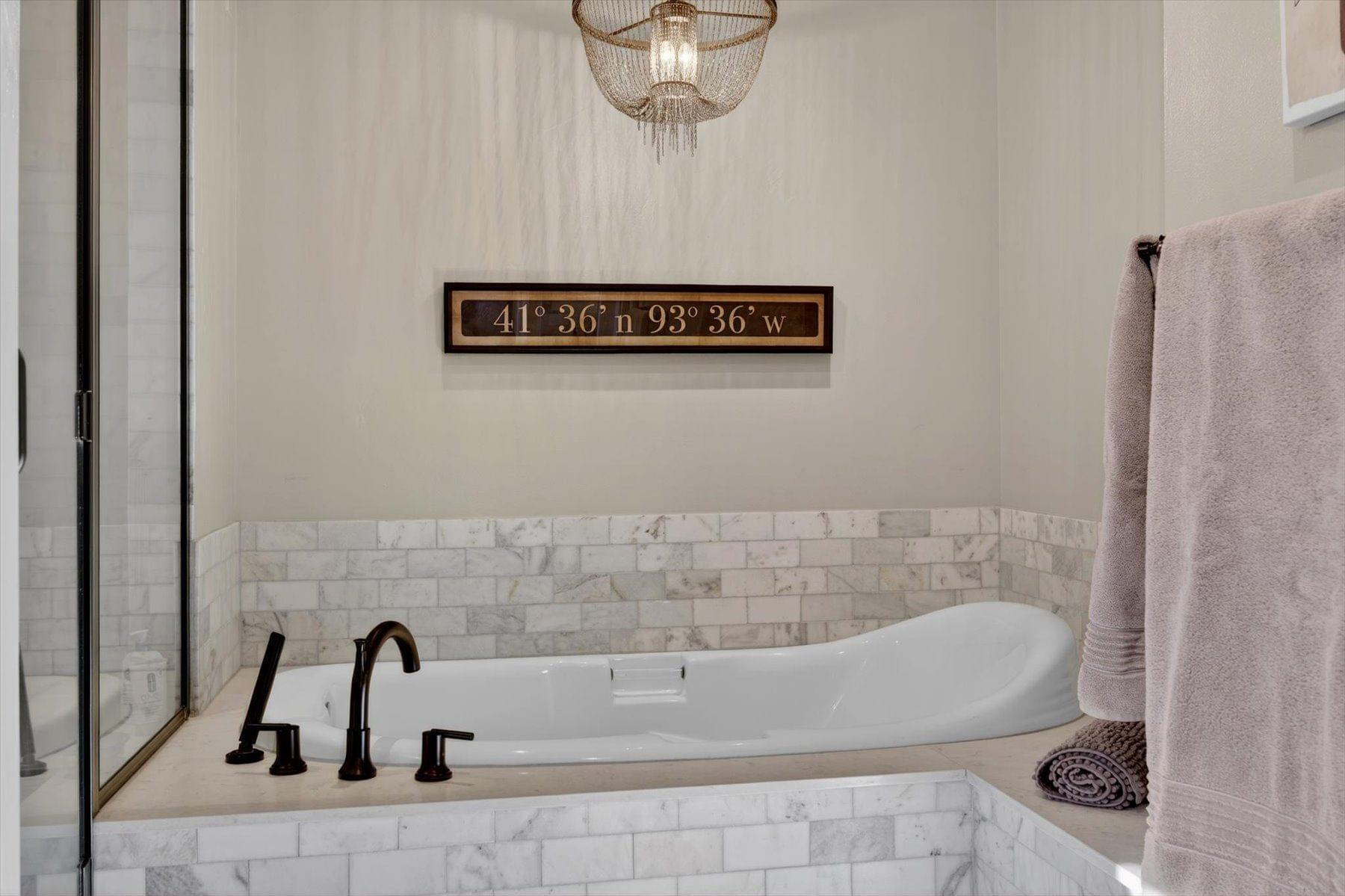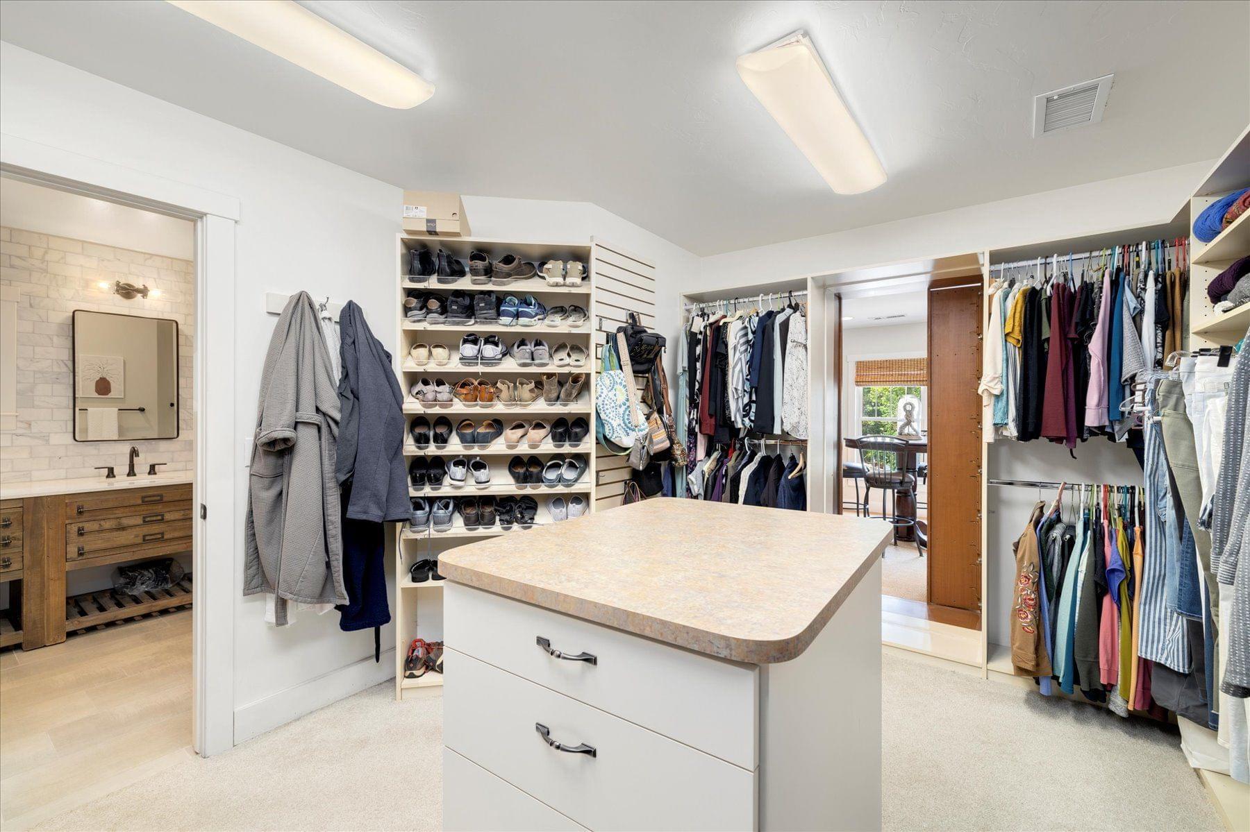 Upstairs, the reimagined primary suite is a true retreat. The bedroom boasts hardwood floors, Roman shades, and an en suite bath. The spa-inspired bath beckons with a quartz double vanity, Carrara marble tiling throughout, a walk-in shower, and an indulgent soaking tub. The generously sized walk-in closet offers a secret access to the carriage house. Two additional bedrooms, a whimsical full bath, an airy loft, and upper-level laundry meet the demands of daily life with ease.