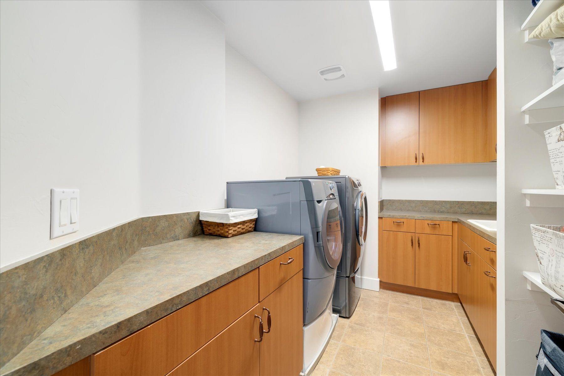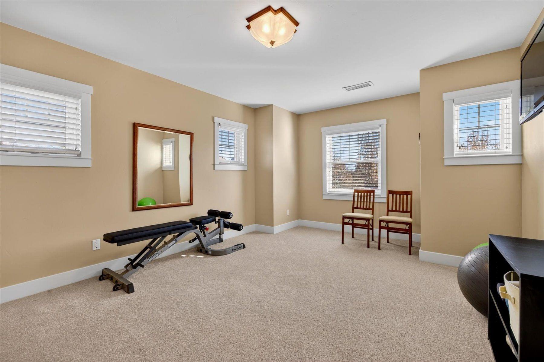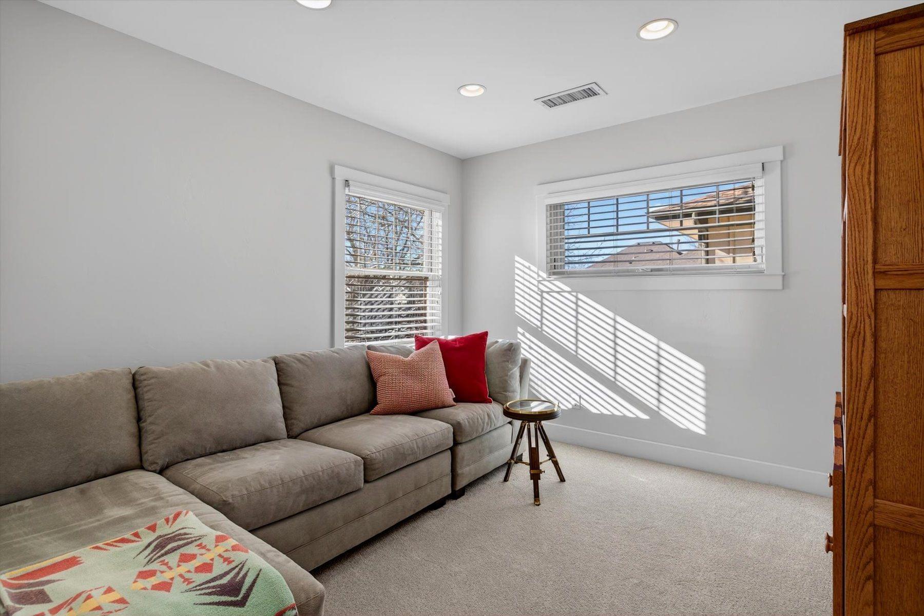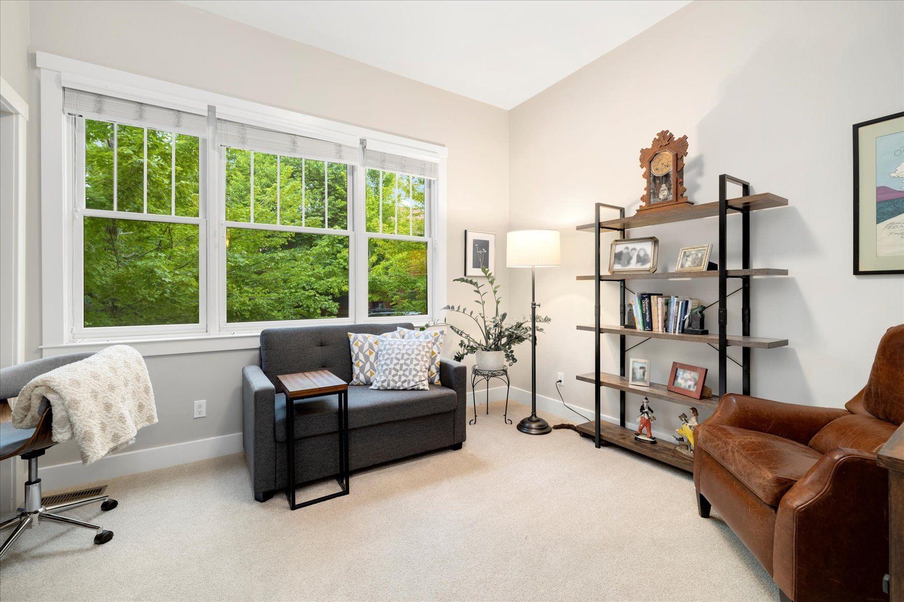 Upstairs, the reimagined primary suite is a true retreat. The bedroom boasts hardwood floors, Roman shades, and an en suite bath. The spa-inspired bath beckons with a quartz double vanity, Carrara marble tiling throughout, a walk-in shower, and an indulgent soaking tub. The generously sized walk-in closet offers a secret access to the carriage house. Two additional bedrooms, a whimsical full bath, an airy loft, and upper-level laundry meet the demands of daily life with ease.