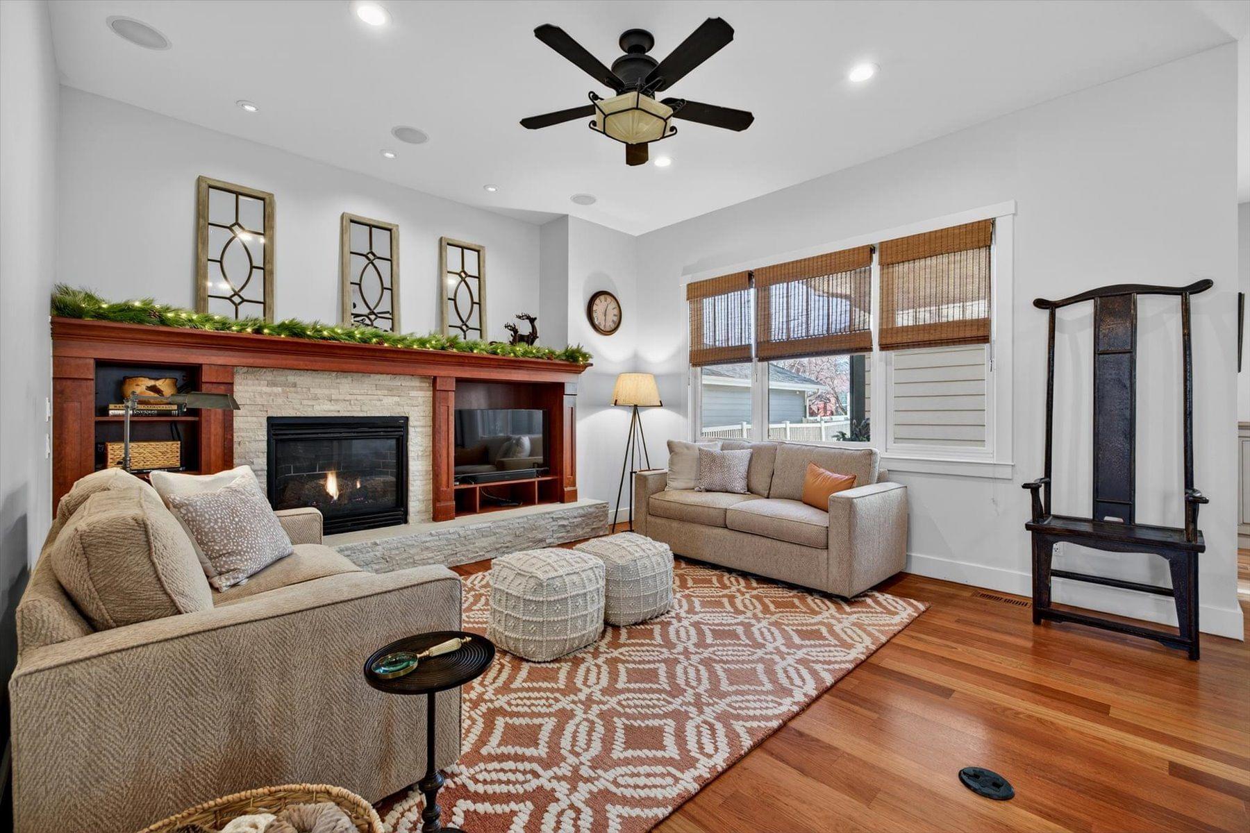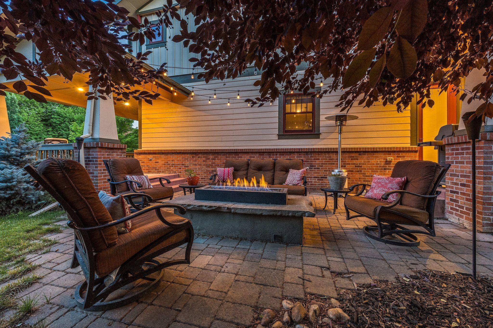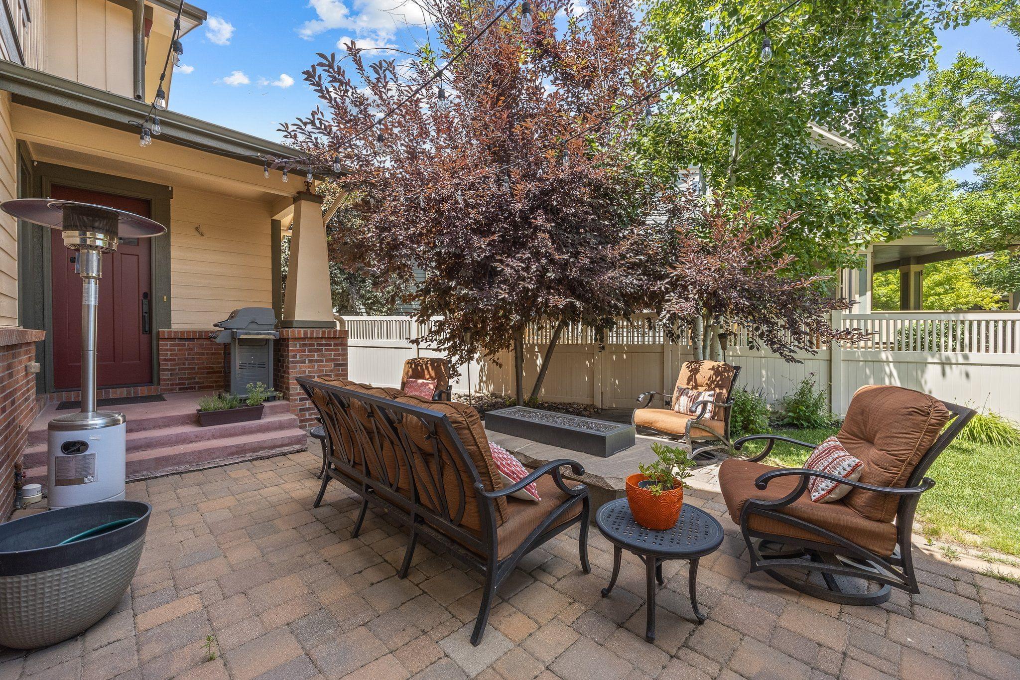 A charming wraparound front porch sets the tone for gracious living, while a newly installed cedar fence (2025) encloses a private backyard sanctuary. Enjoy golden-hour gatherings around the built-in fire pit, entertain on the refreshed paver patio, or let your pup roam freely in the discreetly integrated dog run.
