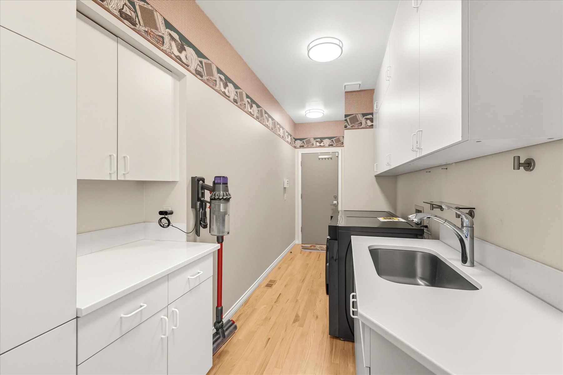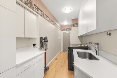 At the heart of the home is a dual-chef kitchen: two fully appointed work zones with high-end custom cabinetry, Wolf and Monogram appliances, dual sinks and dishwashers, double ovens and warming drawers—all wrapped in expansive Caesarstone quartz. A top-tier reverse-osmosis system completes the suite.