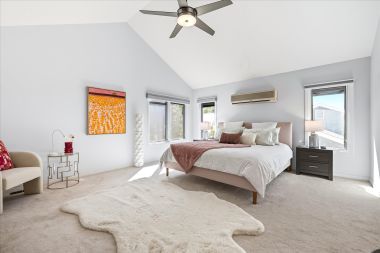 The three-car garage, plus a tandem fourth bay with integrated shelving, enjoys ample space for everyone’s hobbies. The backyard with mature trees and updated landscaping is a private place to unwind. Enjoy mountain views and a tranquil, tree-lined block just one short block to High Plains Elementary—within the coveted Cherry Creek School District.