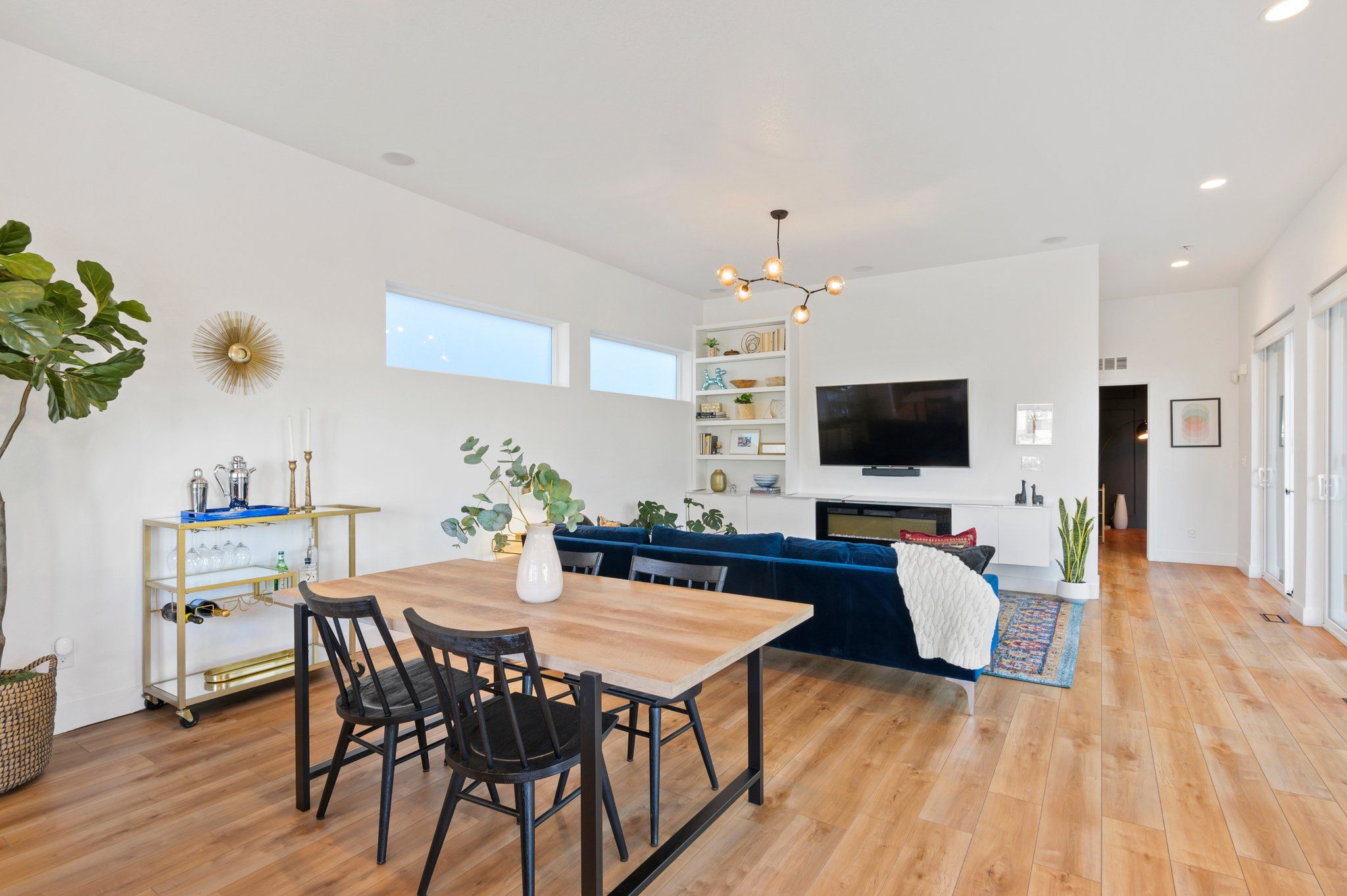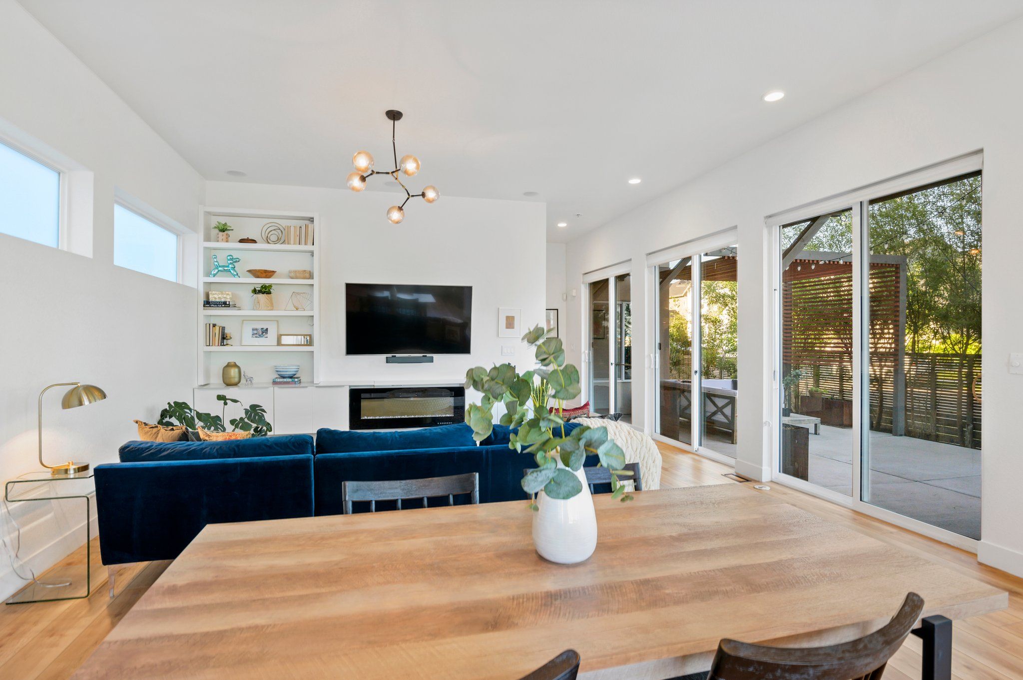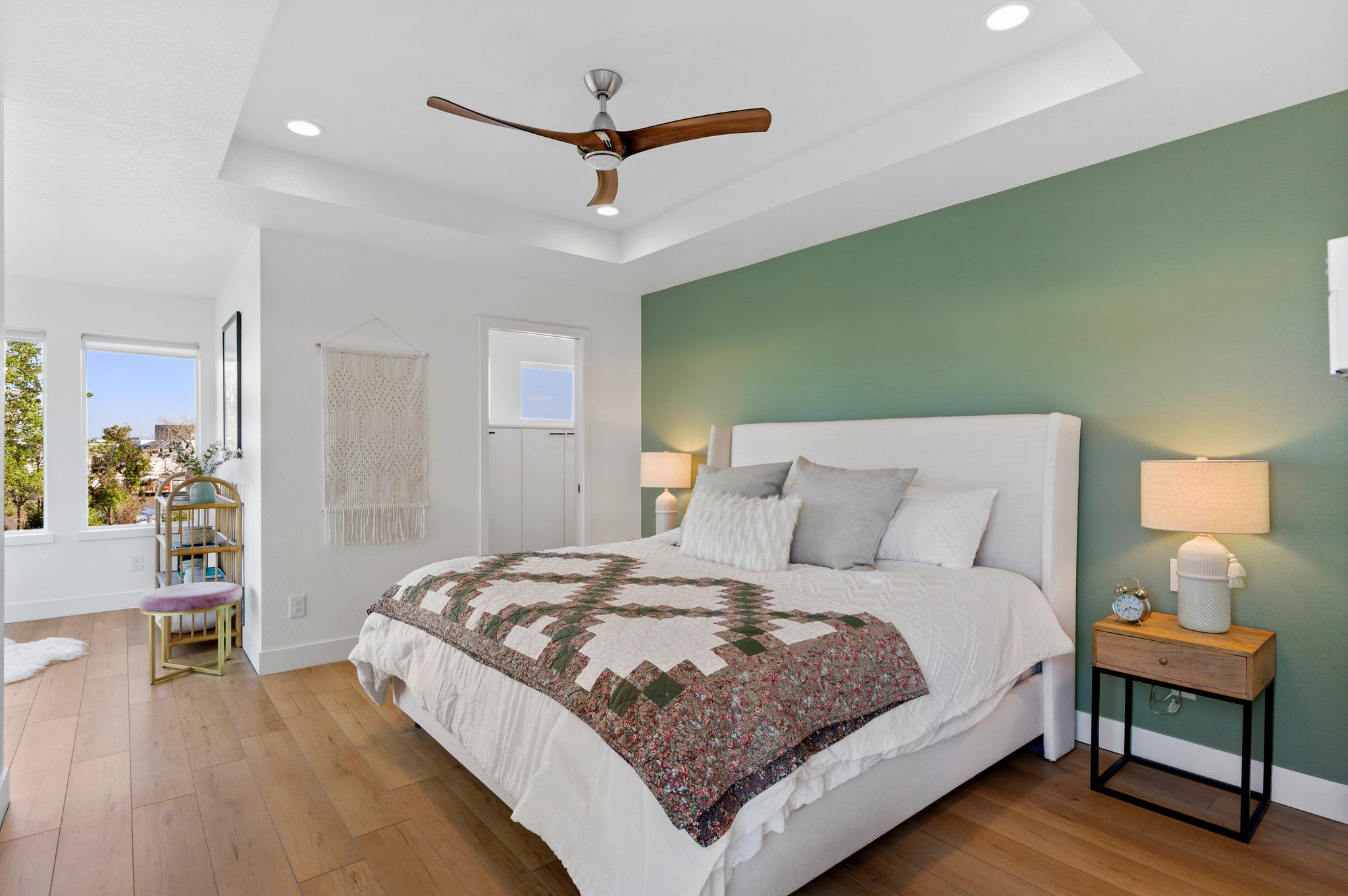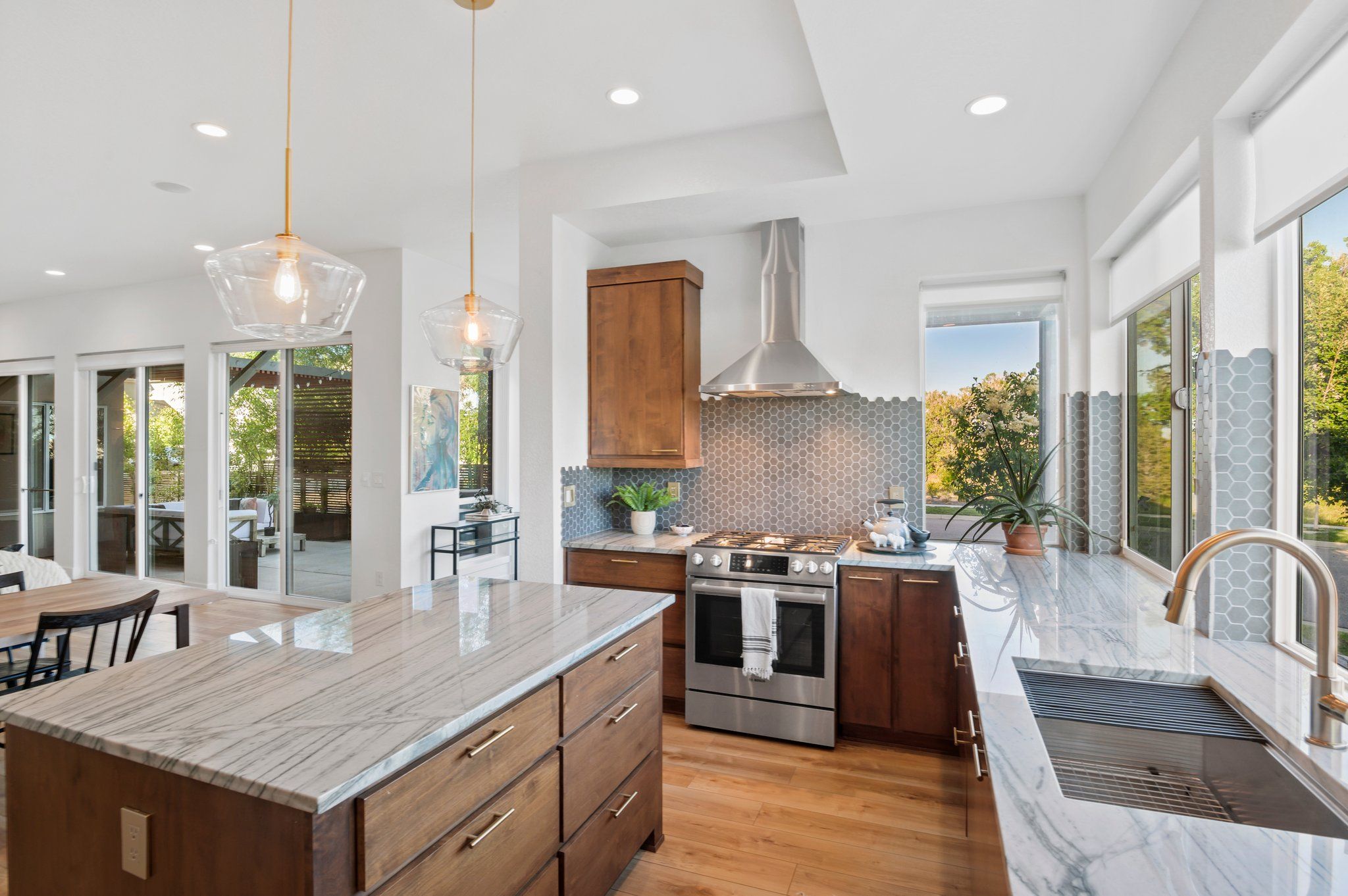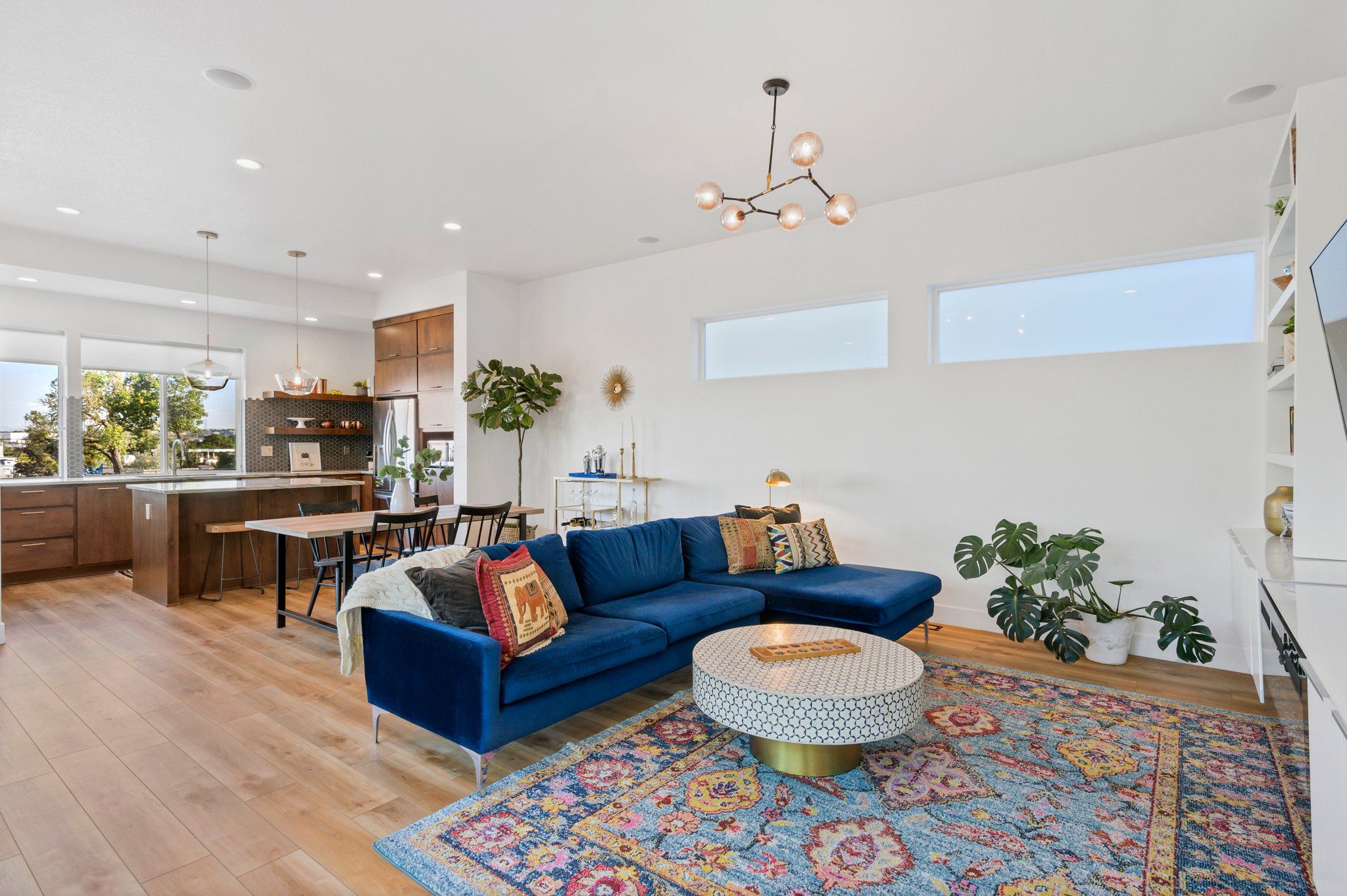 On a secluded southern facing corner fronting to open space and the mountain fed, Clear Creek stream, sits a modern Bohemian masterpiece. Step inside and away from the ordinary. The open, award-winning floor plan beckons with natural light streaming through a myriad of windows, and luxe wood flooring underfoot. Enjoy an impeccable level of finish with new paint, and custom trim, moulding, lighting, and wall tile throughout.