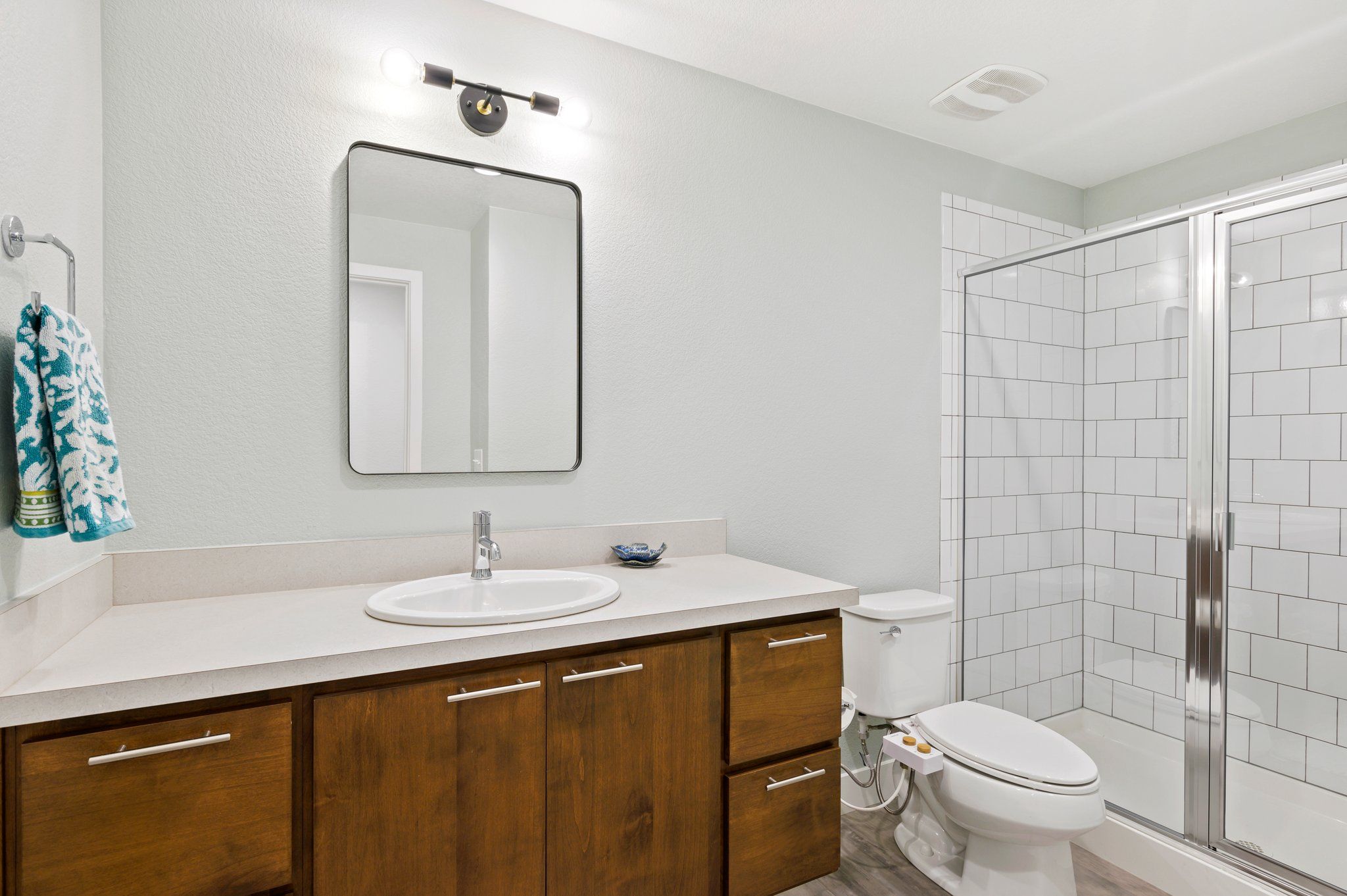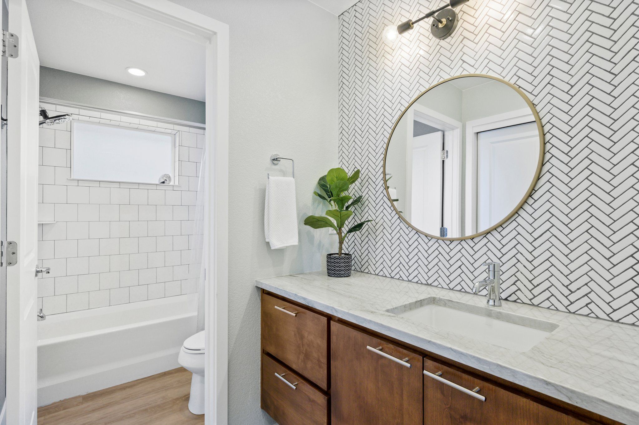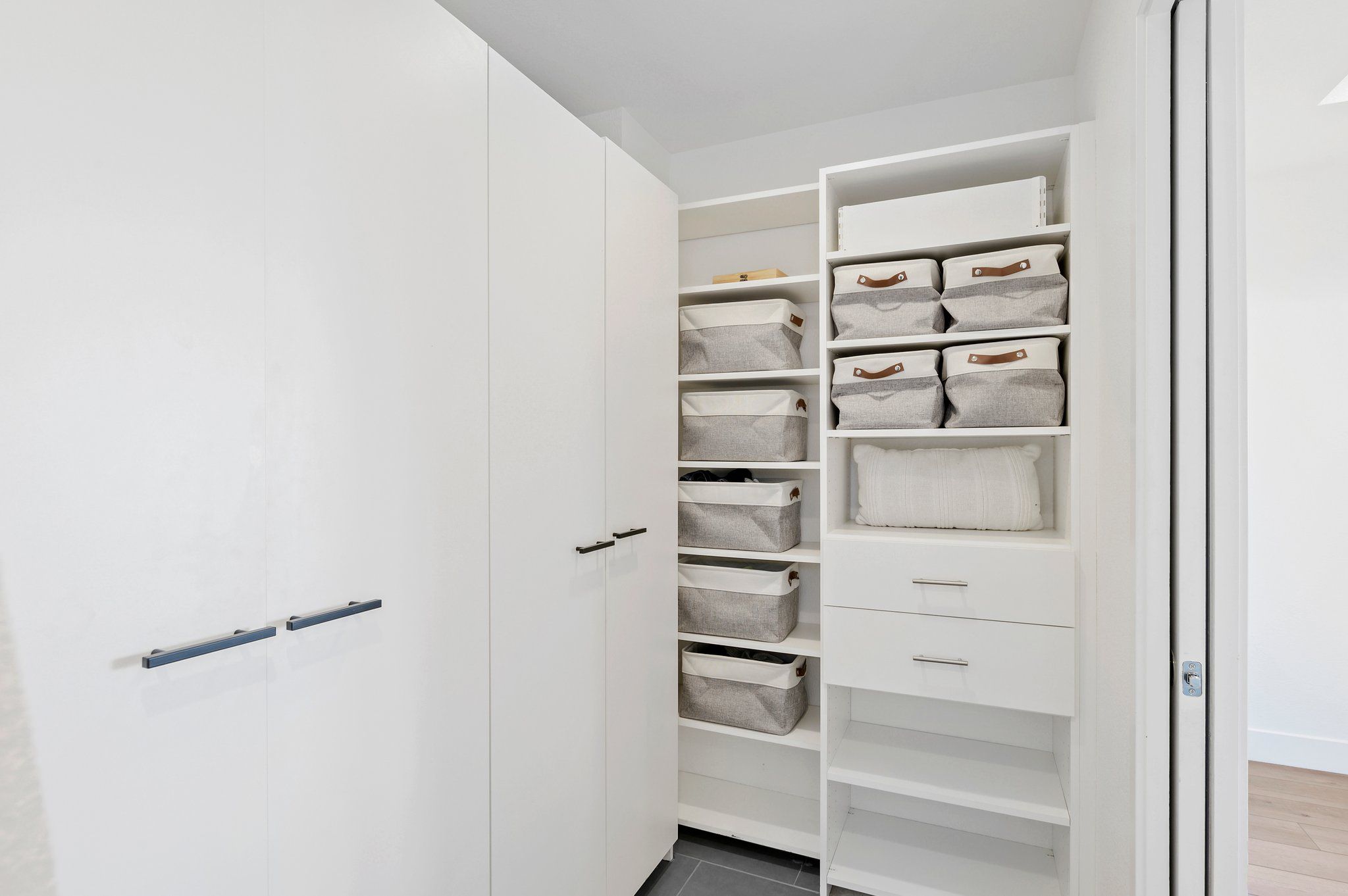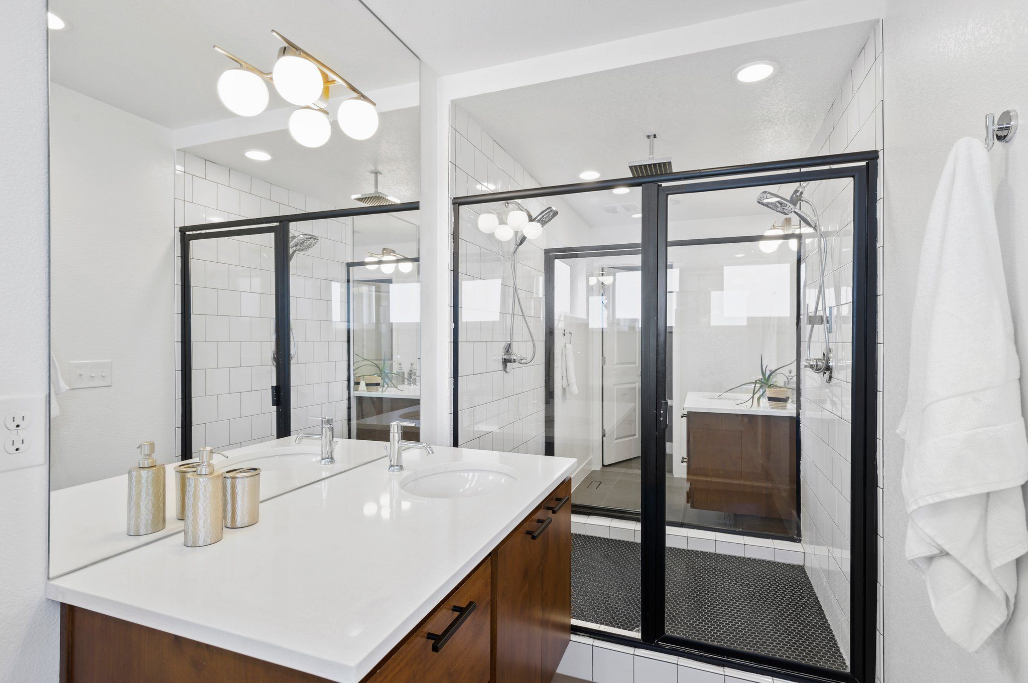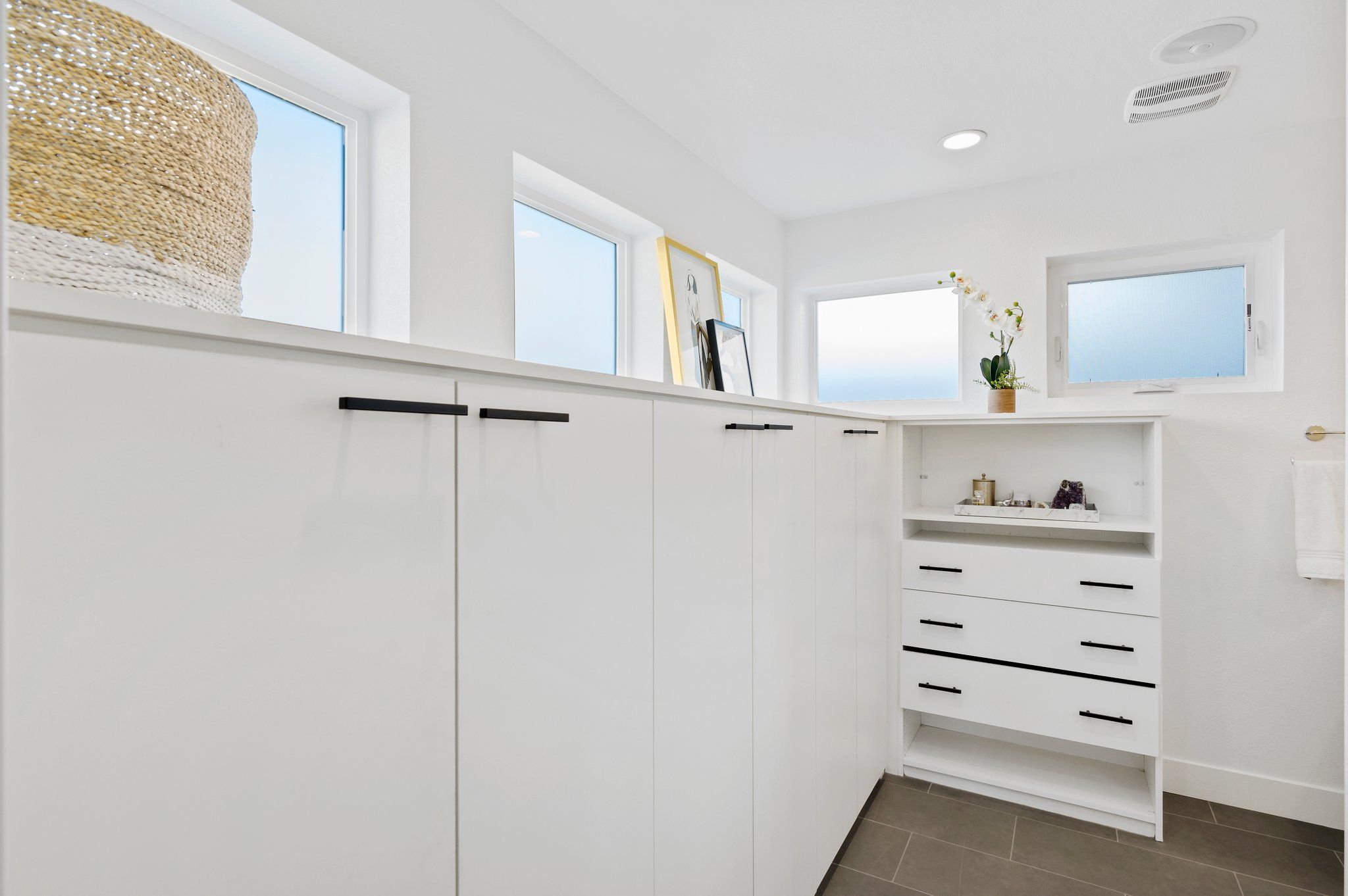 Upstairs, the primary suite boasts a serene ambiance. The sunny conservatory features views of Downtown Denver to the South. A delicate balance of intimacy and privacy is reached in the spa like ensuite bath revealed only by passing through pocket doors. Inside, dual vanities, dual water closets, and dual storage solutions meet in the middle with the Euro-style rain shower. This is your private oasis. The second ensuite bedroom is just down the hall adjacent to the convenient upper-level laundry.