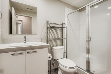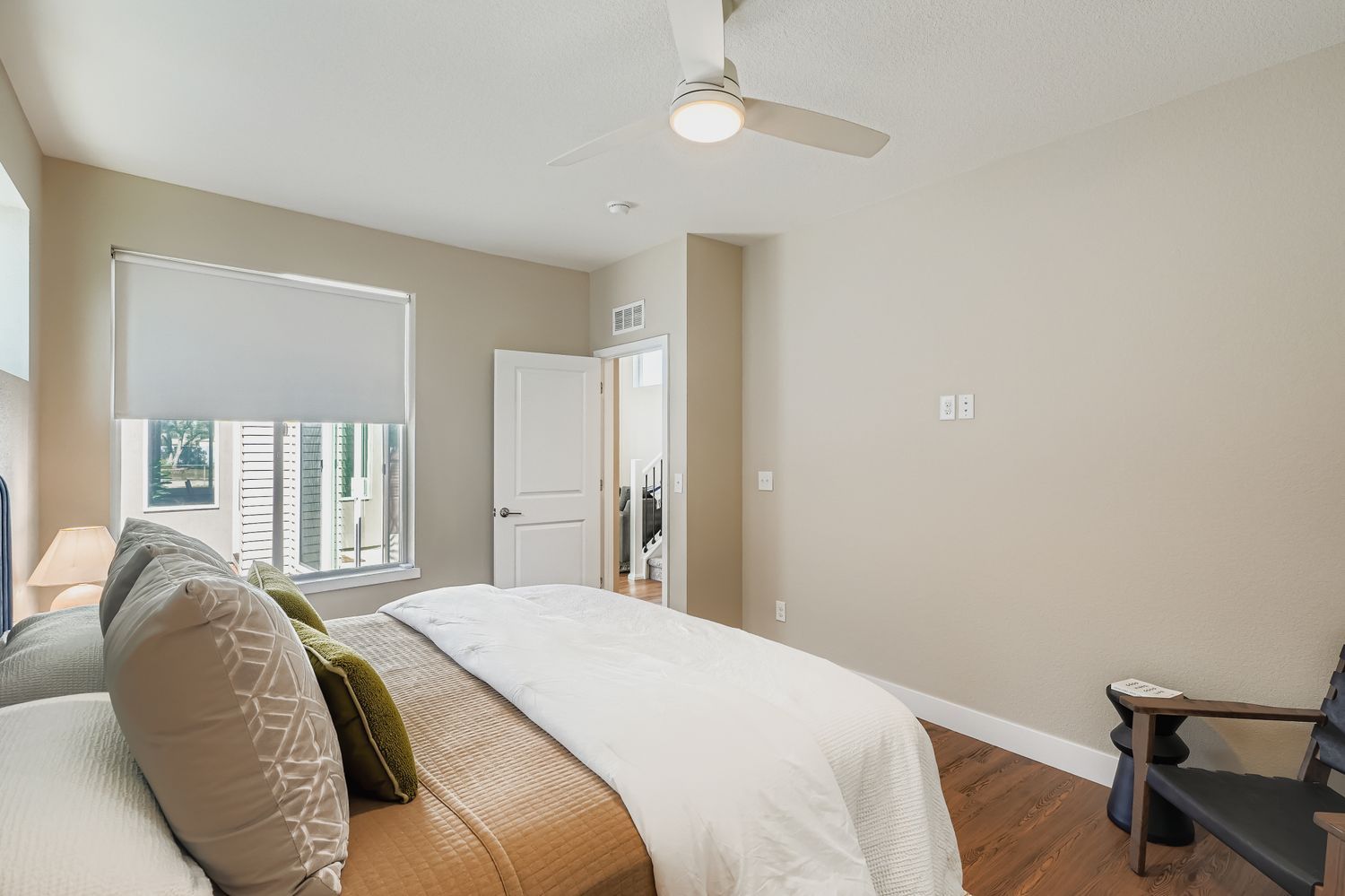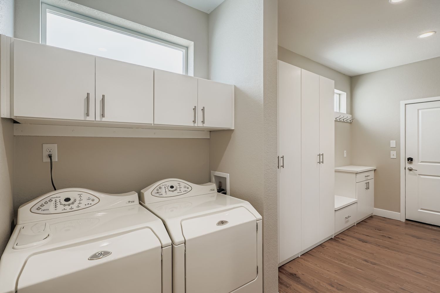 The main level primary suite offers a serene retreat with a spacious en suite bath, dual vanities, a walk-in shower, and a walk-in closet designed for organization. Also on the main floor: a stylish mudroom, laundry area with extra storage, durable vinyl flooring throughout, and direct access to the intimate side yard through double sliding patio doors.