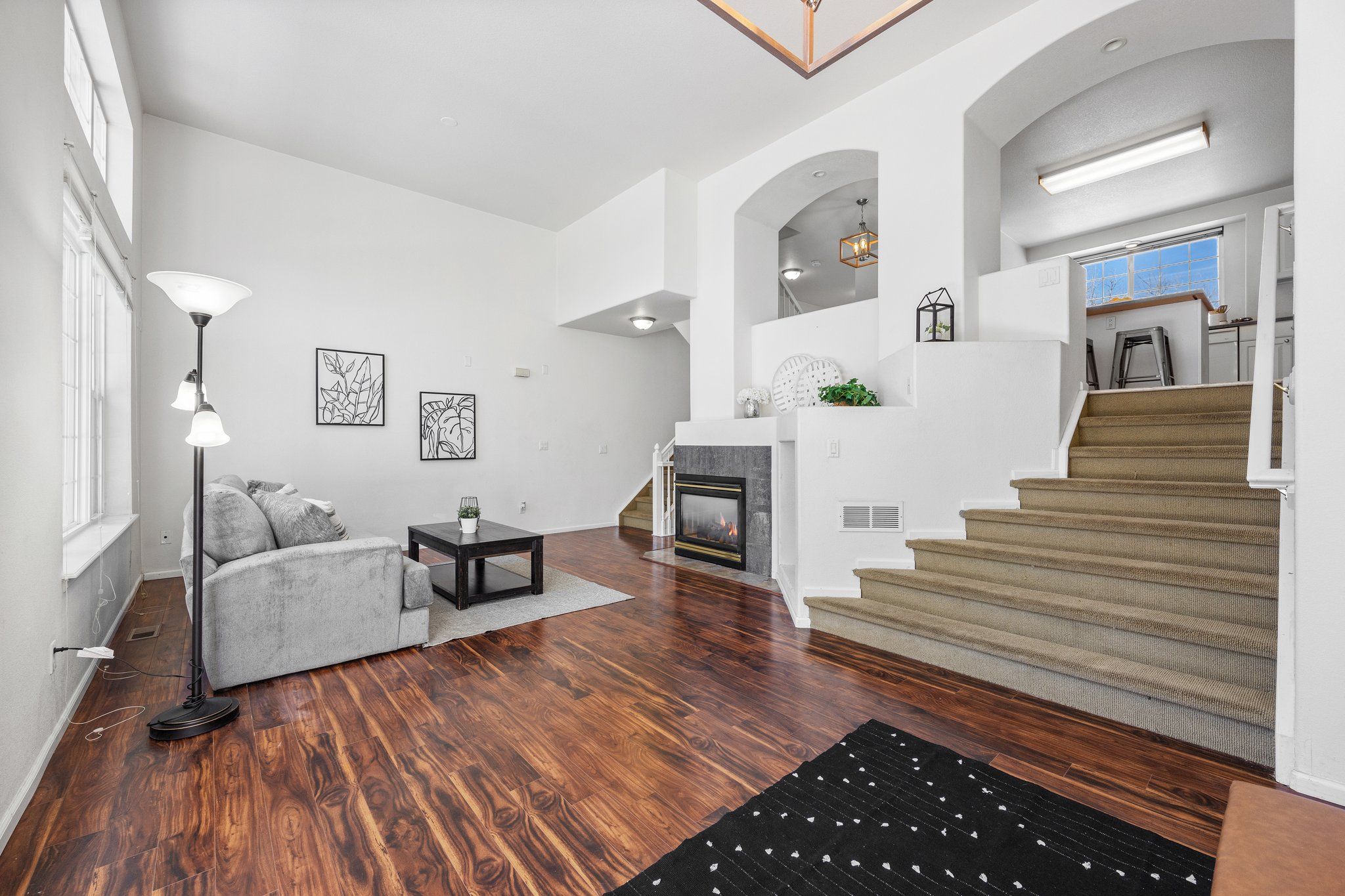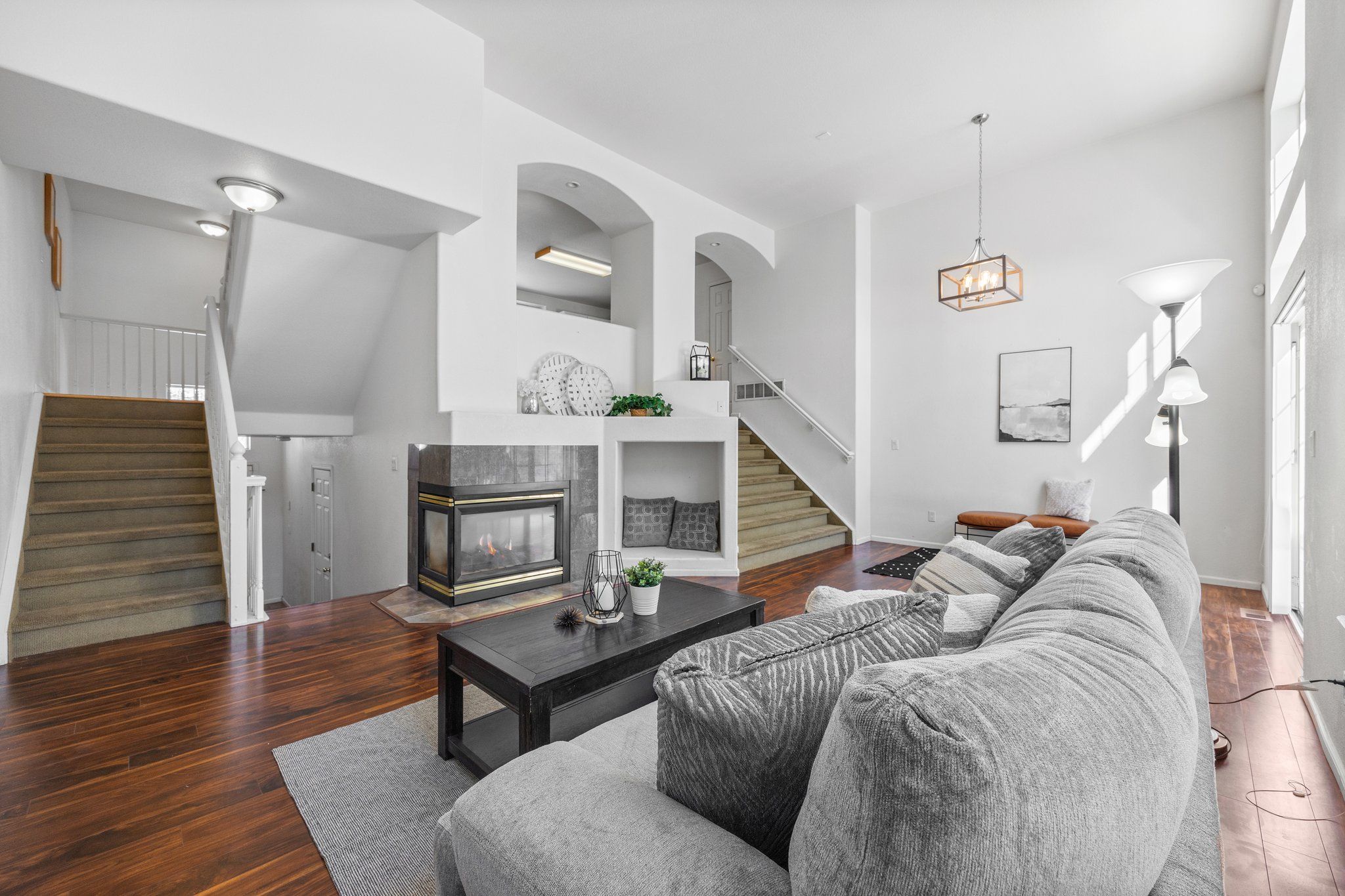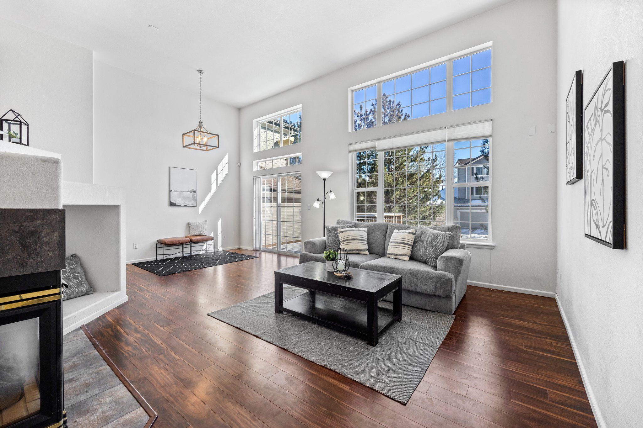 Come experience the ultimate living in the desirable Villas at Skymark with this stunning townhome. Natural light streams into the living room, featuring grand floor-to-ceiling windows and an airy, open floor plan leading to a sliding glass door that opens up to a serene backyard Trex deck and outdoor space.