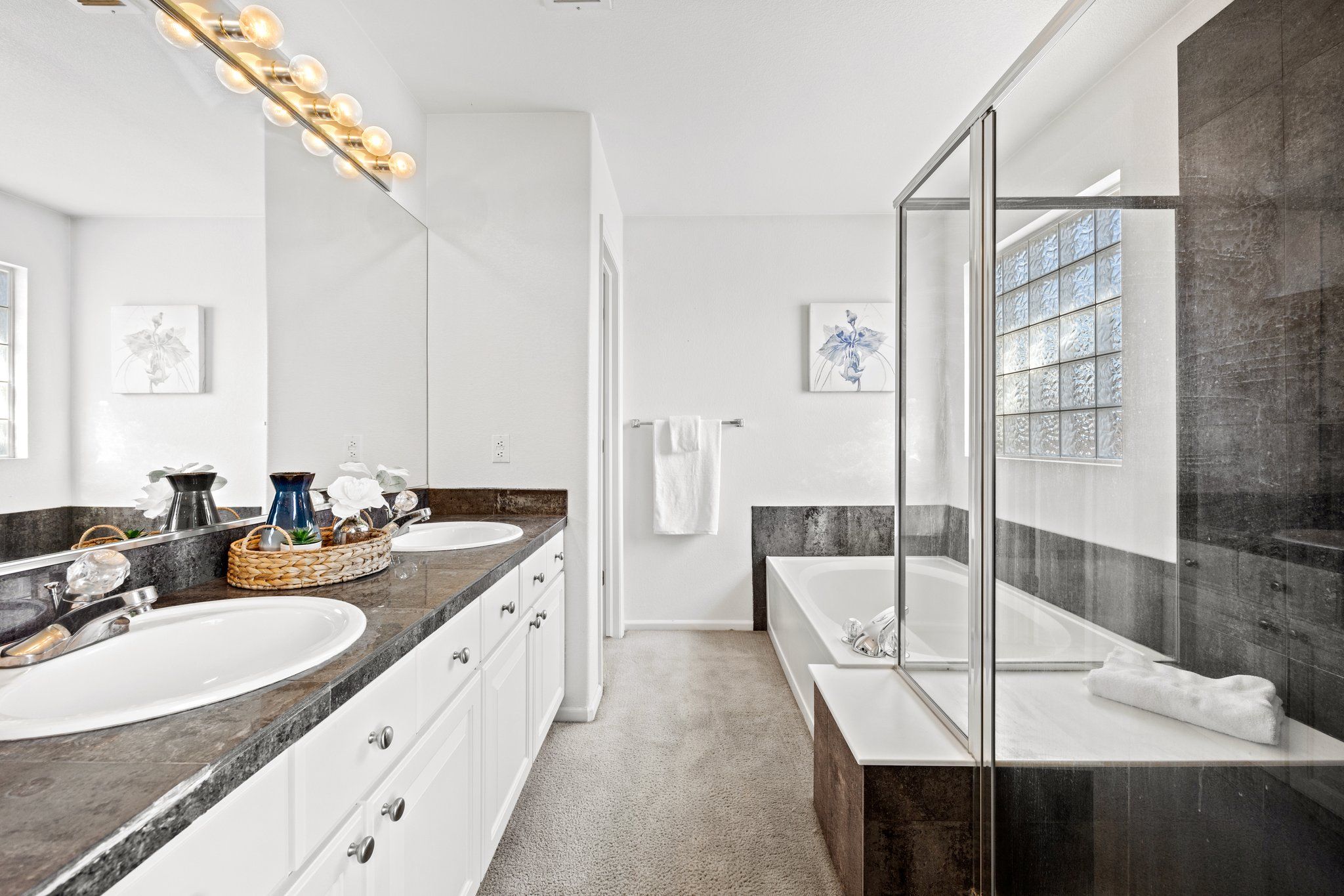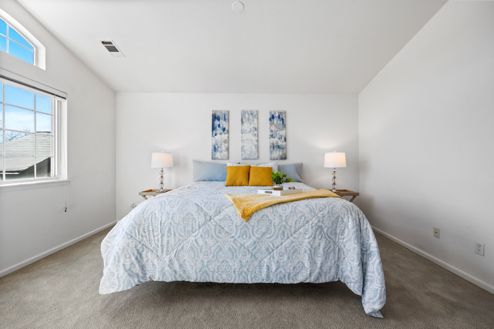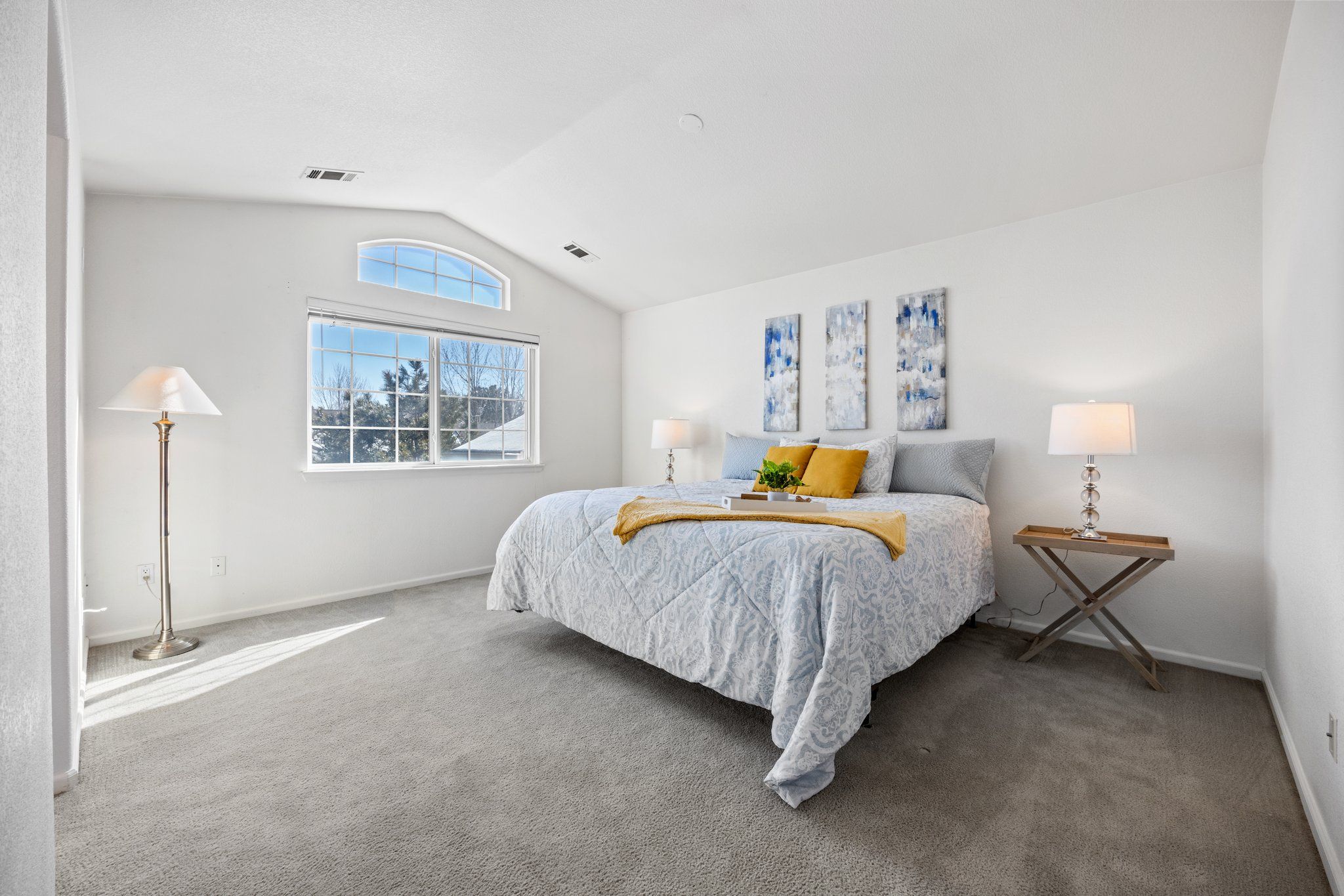 Come experience the ultimate living in the desirable Villas at Skymark with this stunning townhome. Natural light streams into the living room, featuring grand floor-to-ceiling windows and an airy, open floor plan leading to a sliding glass door that opens up to a serene backyard Trex deck and outdoor space.