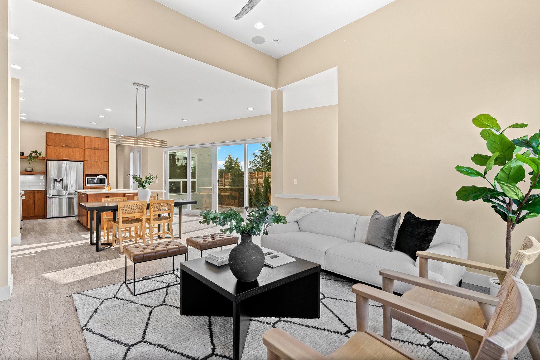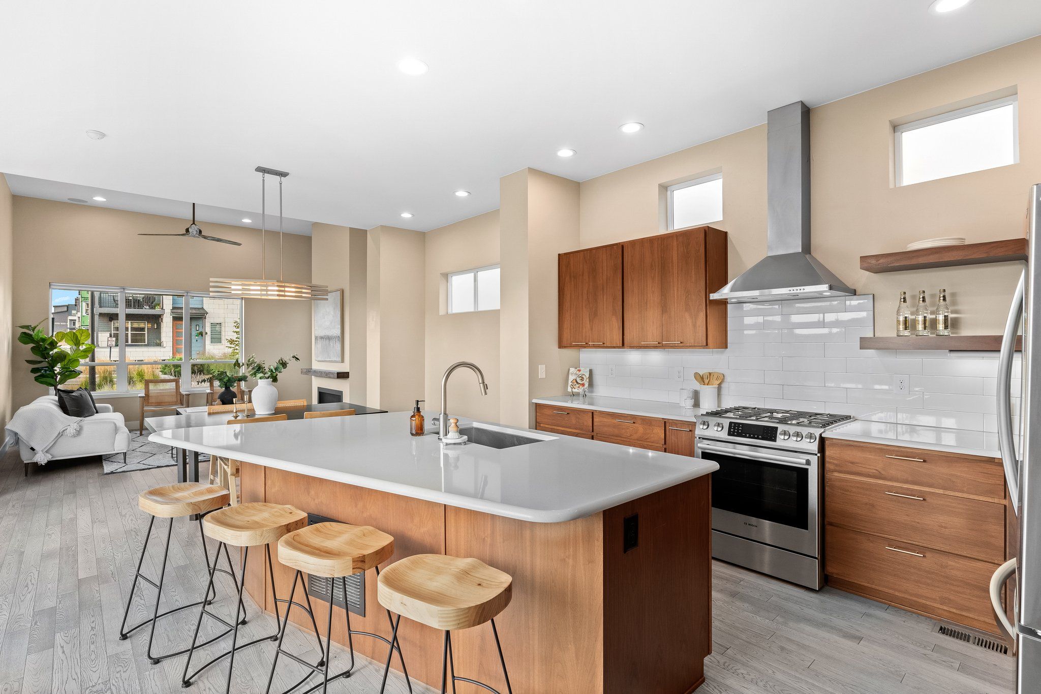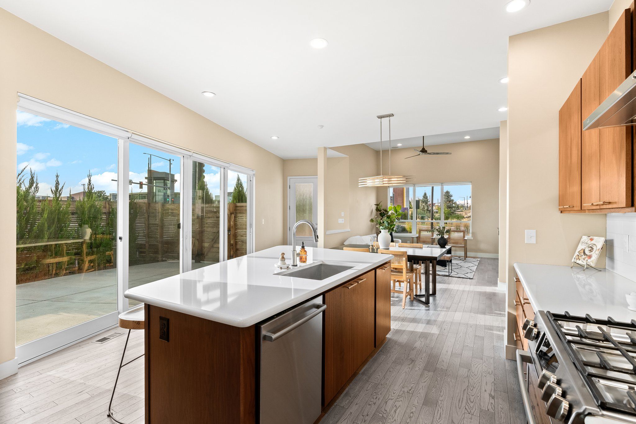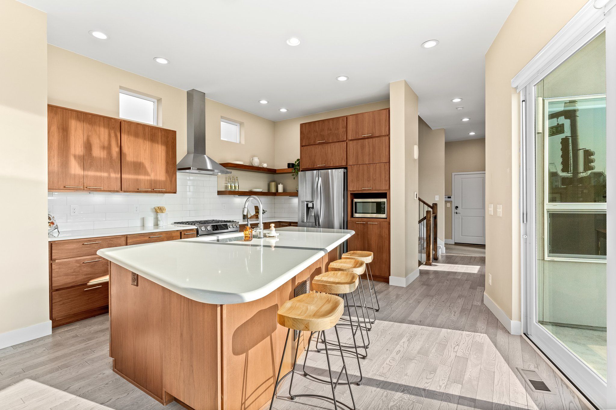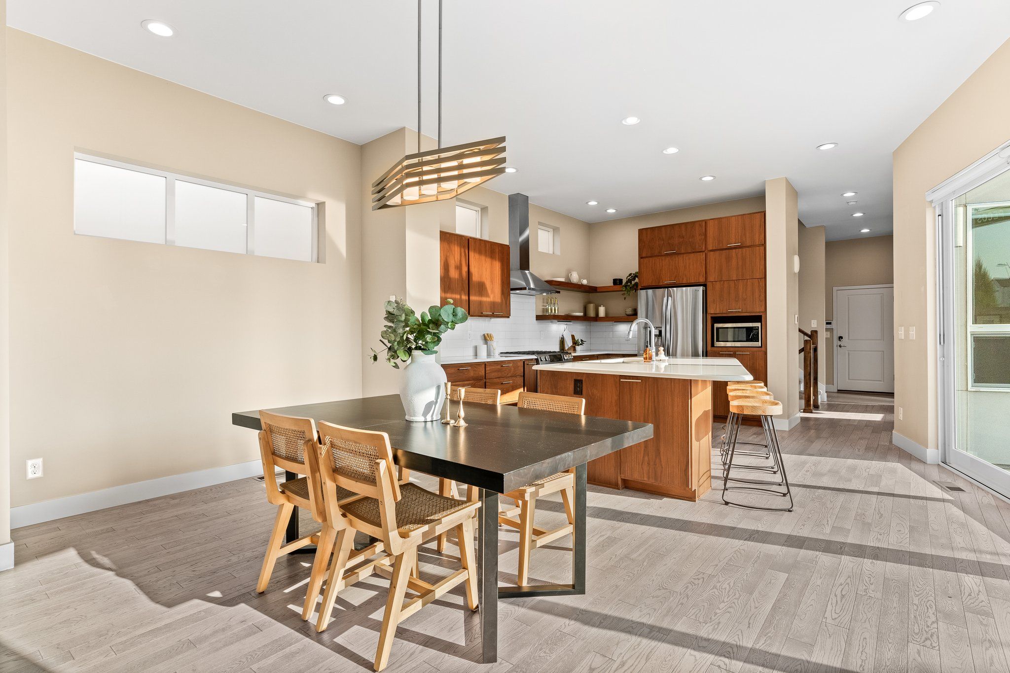 Step into a bright entry way to be welcomed with wall of glass doors to back patio and a cozy fireplace. This open concept floor plan begs to host holidays and is meant for entertaining! The kitchen is appointed with luxury detailing throughout, including Bosch appliances, large quartz island, custom tile backsplash and showcase shelving.