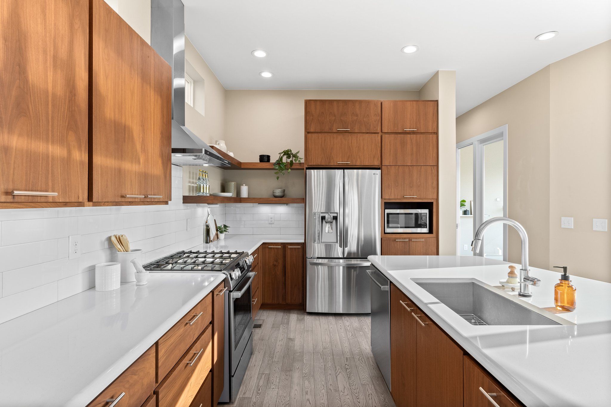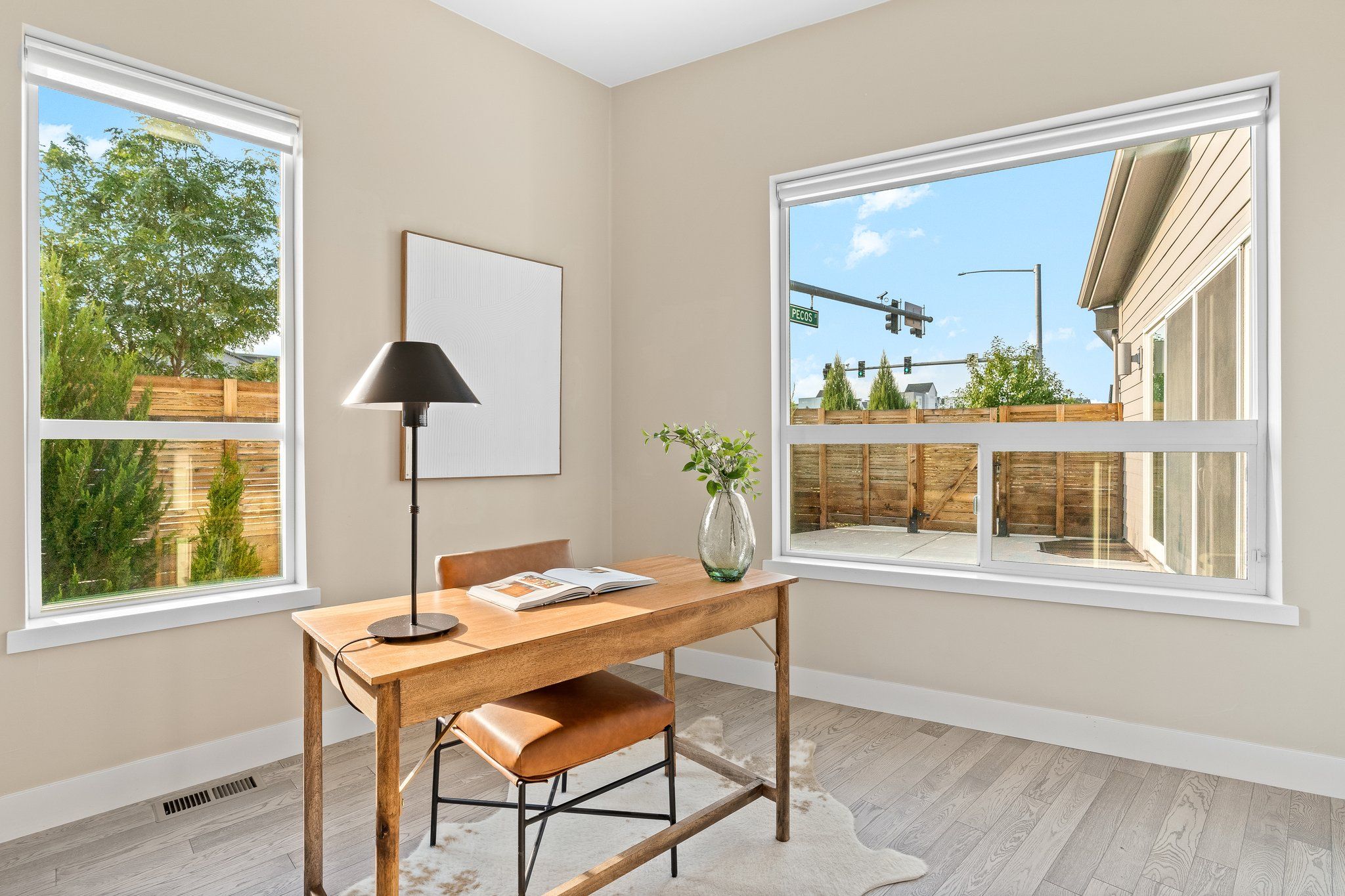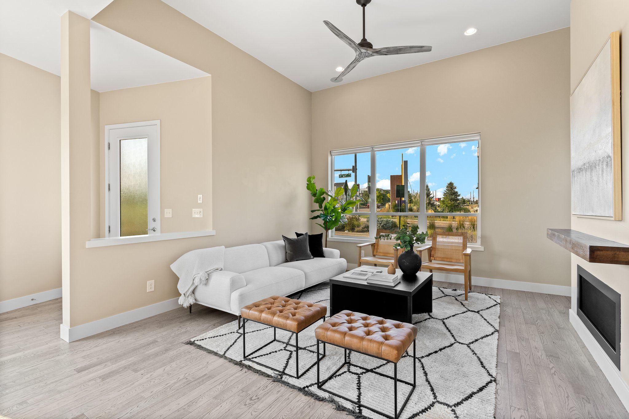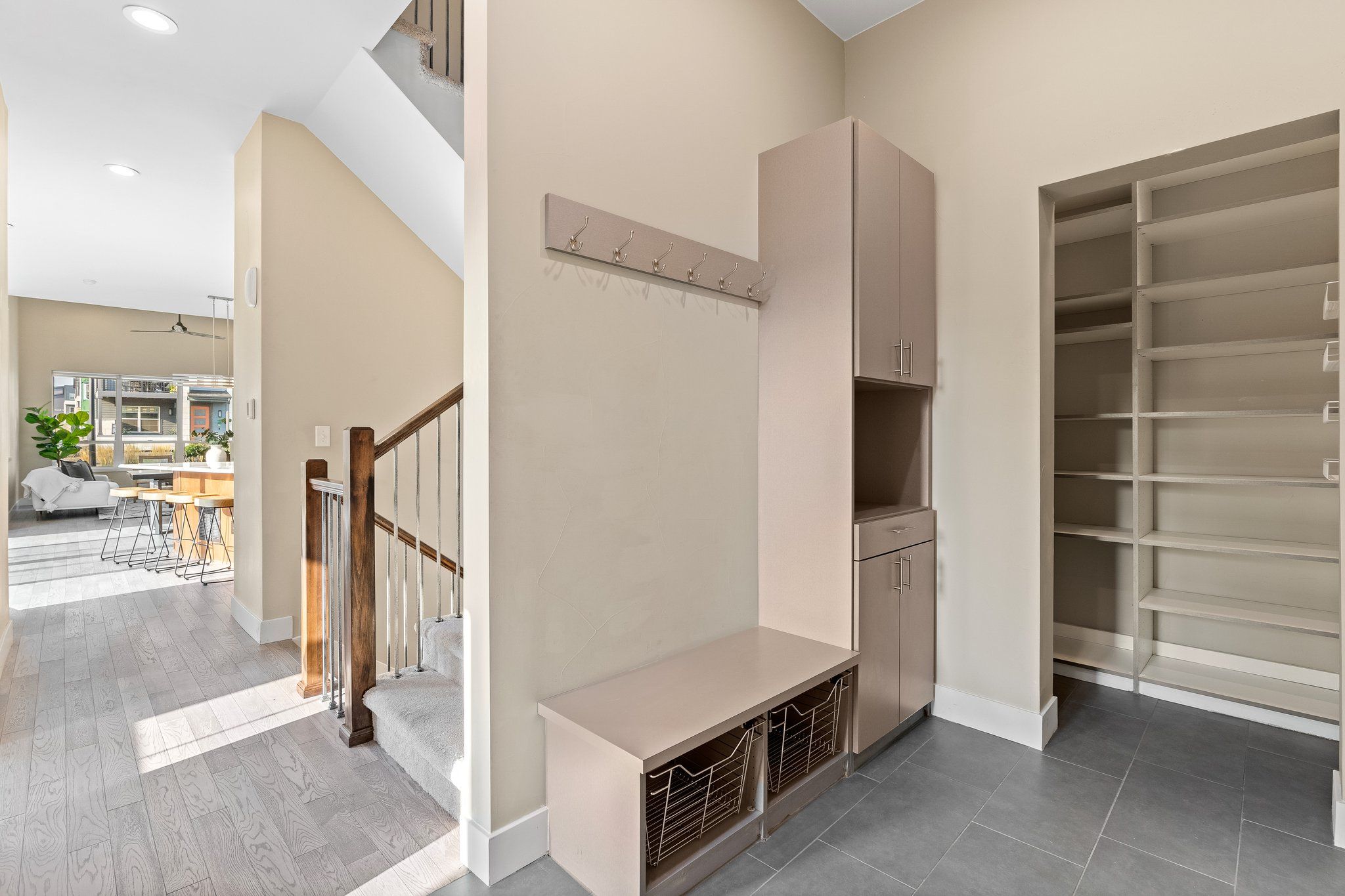 Step into a bright entry way to be welcomed with wall of glass doors to back patio and a cozy fireplace. This open concept floor plan begs to host holidays and is meant for entertaining! The kitchen is appointed with luxury detailing throughout, including Bosch appliances, large quartz island, custom tile backsplash and showcase shelving.