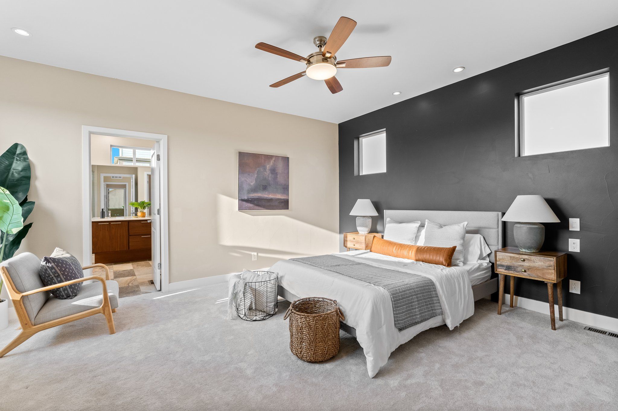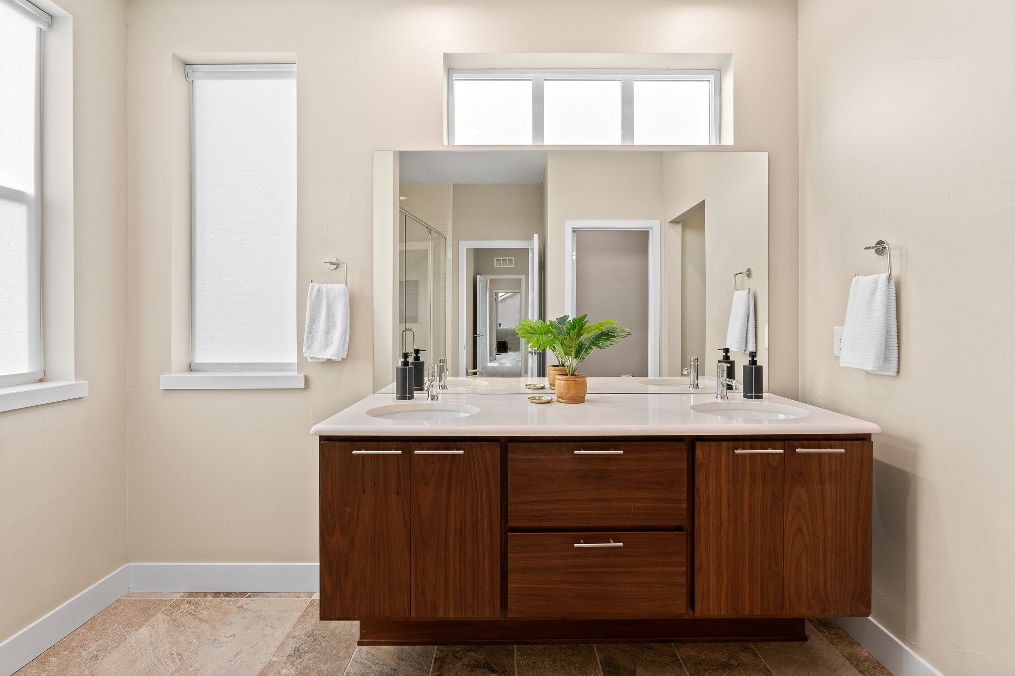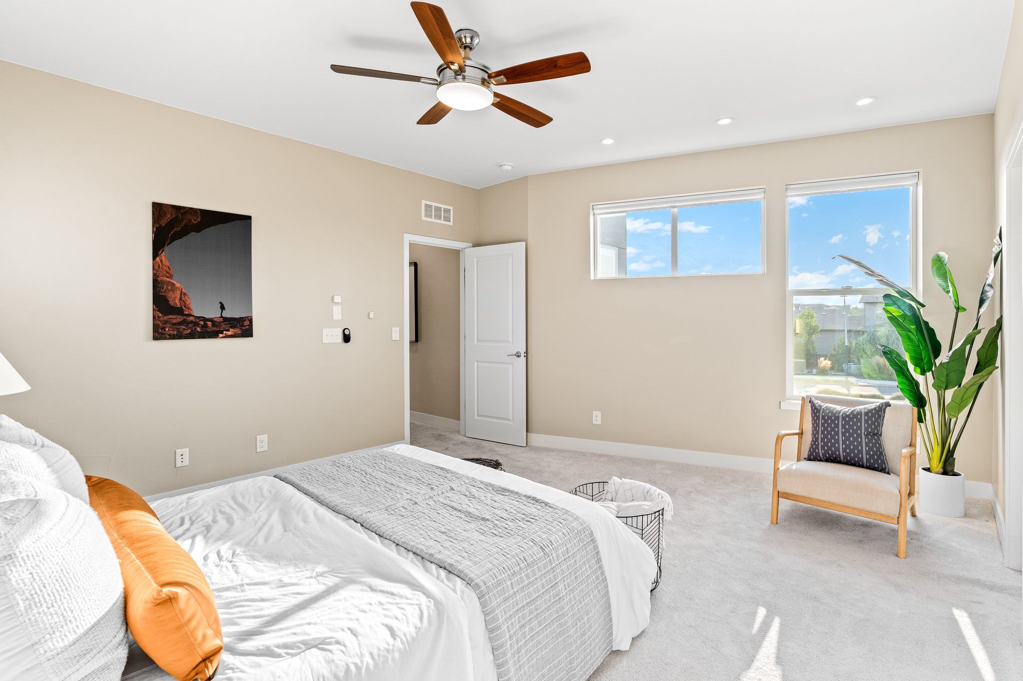 The large primary retreat is the ideal space for relaxation. The day fades away in the spacious bedroom and en-suite bath. Indulge in the spa shower with massaging stone tile flooring, dual rain shower heads, and seamless shower glass door. The double vanity, quartz surfaces, walk in closet and mountain views complete this sanctuary space.