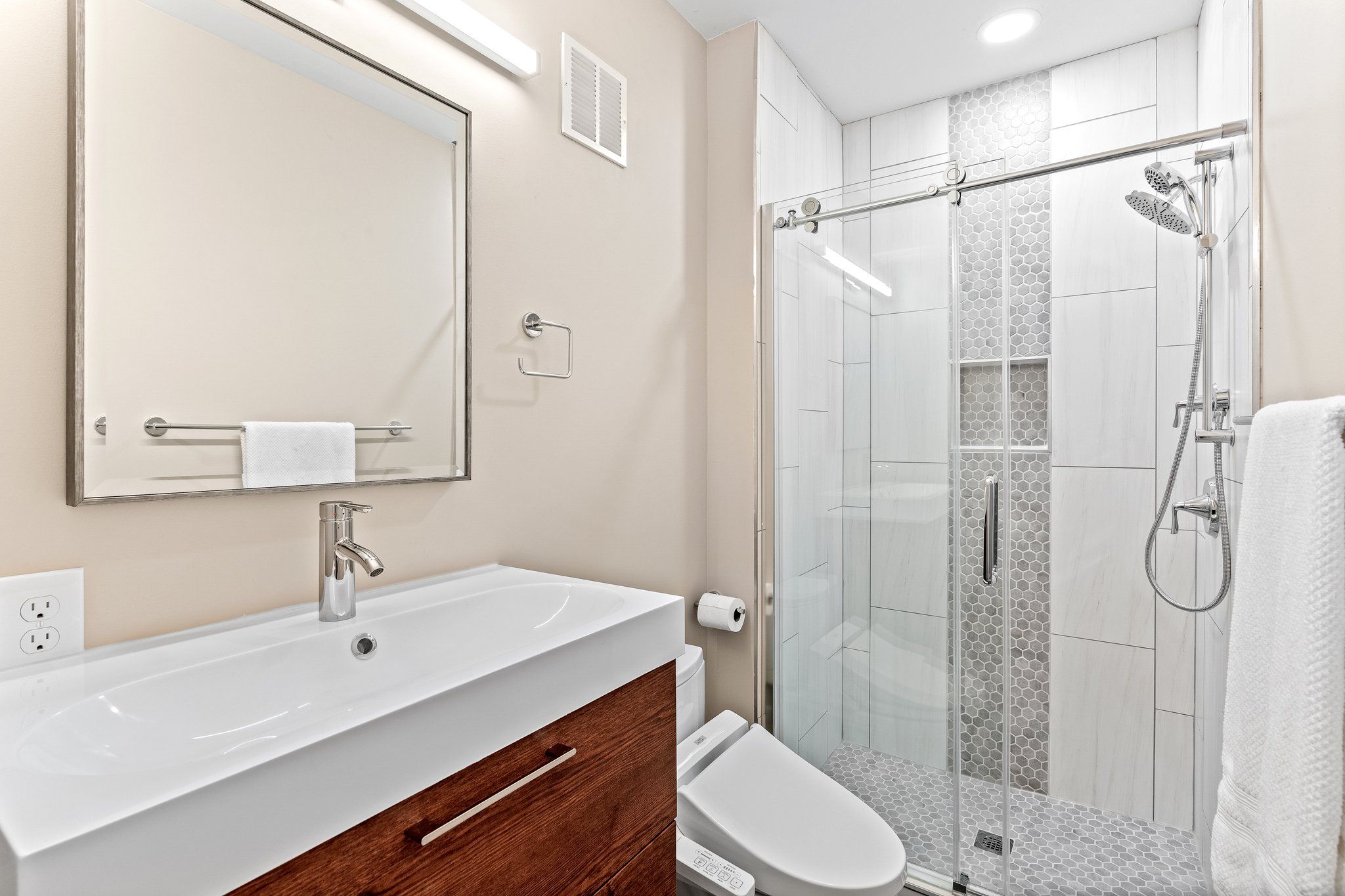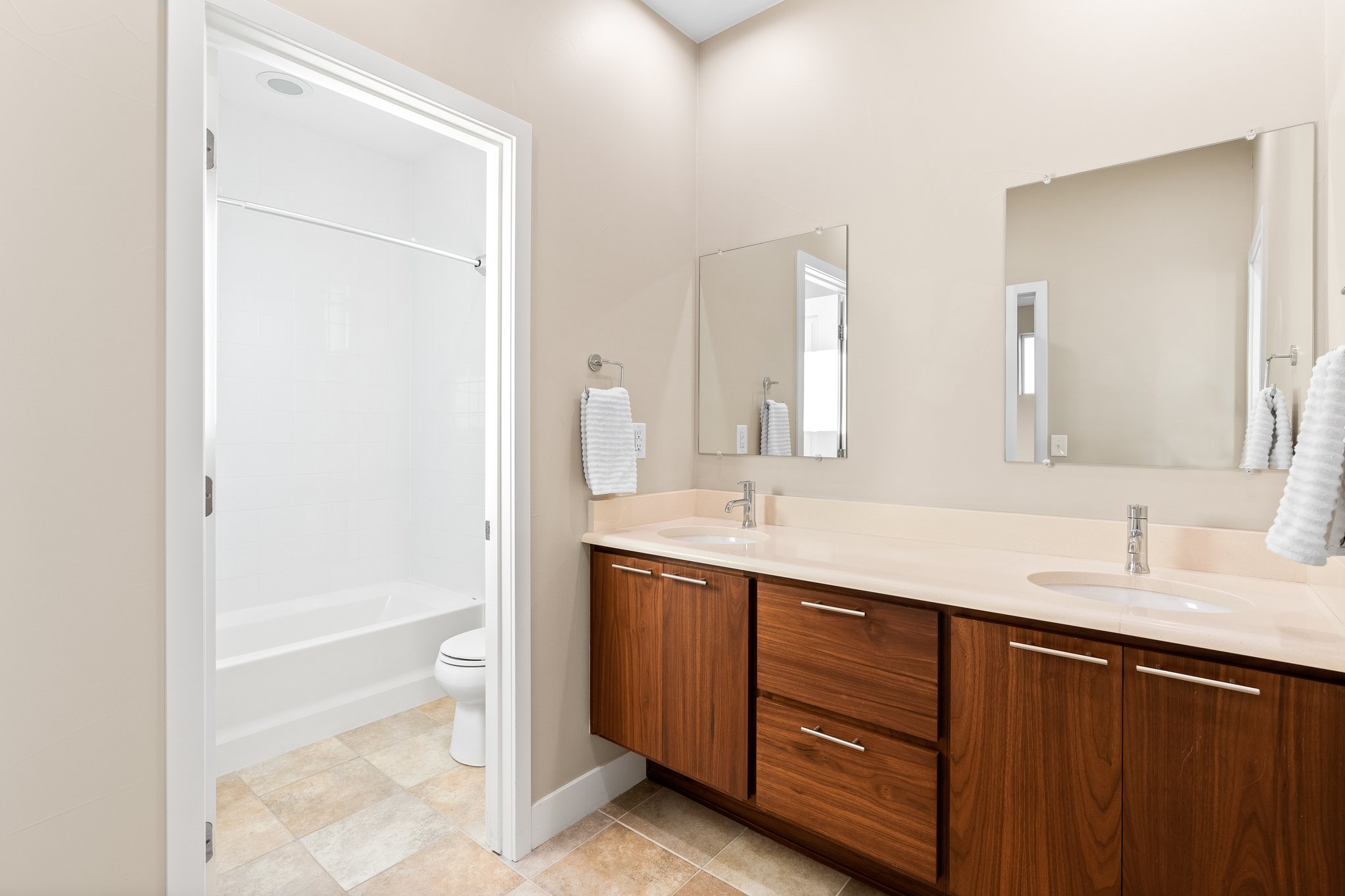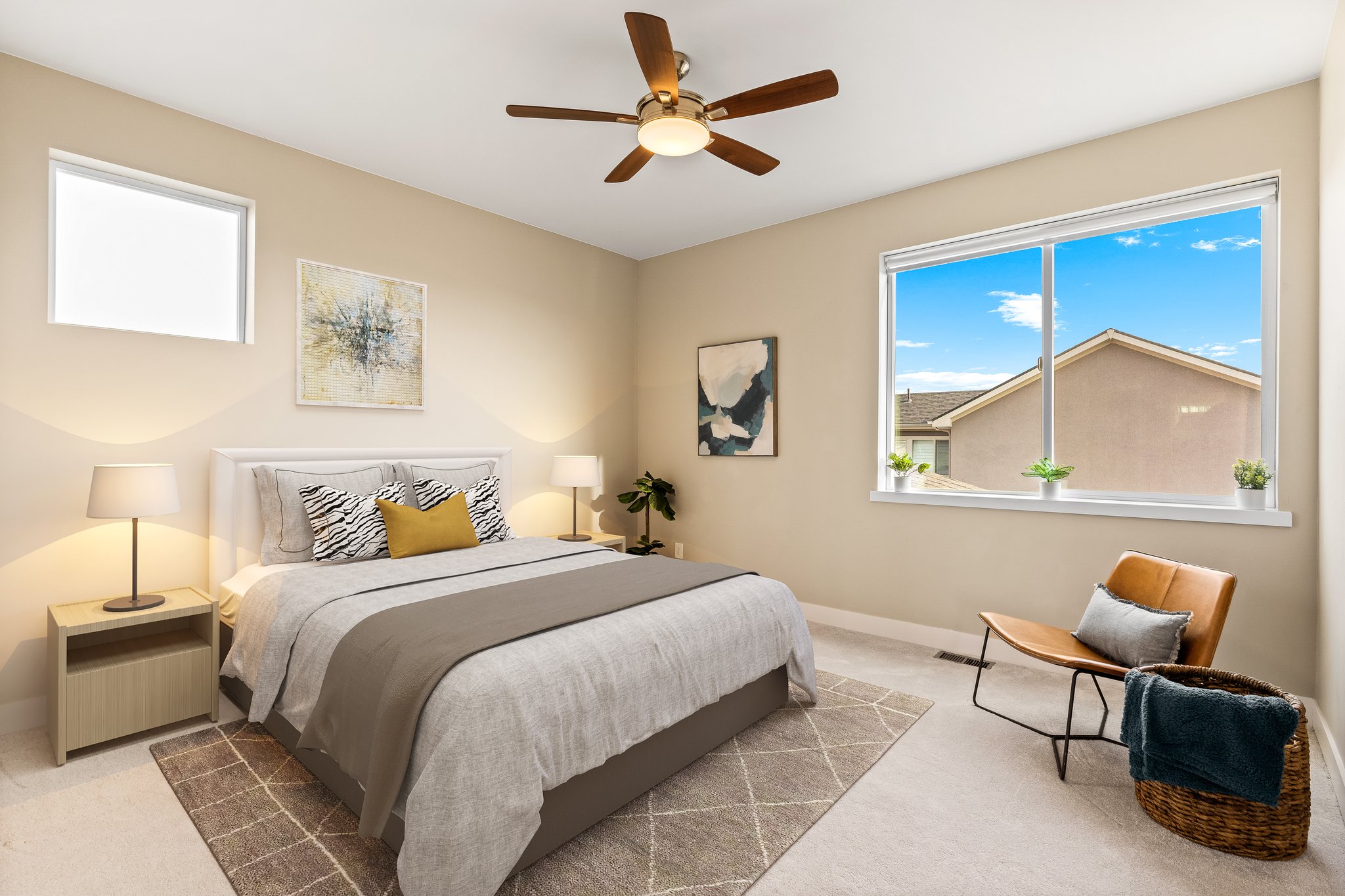 The large primary retreat is the ideal space for relaxation. The day fades away in the spacious bedroom and en-suite bath. Indulge in the spa shower with massaging stone tile flooring, dual rain shower heads, and seamless shower glass door. The double vanity, quartz surfaces, walk in closet and mountain views complete this sanctuary space.
