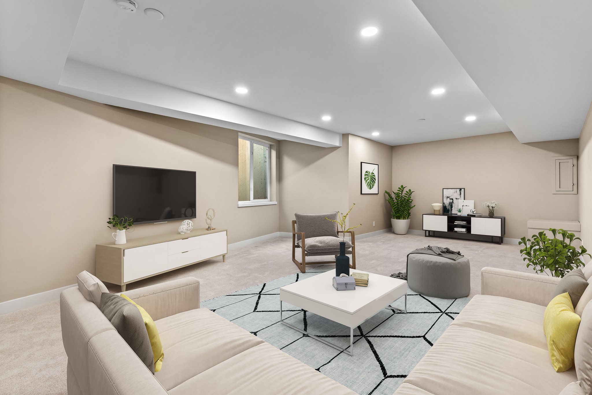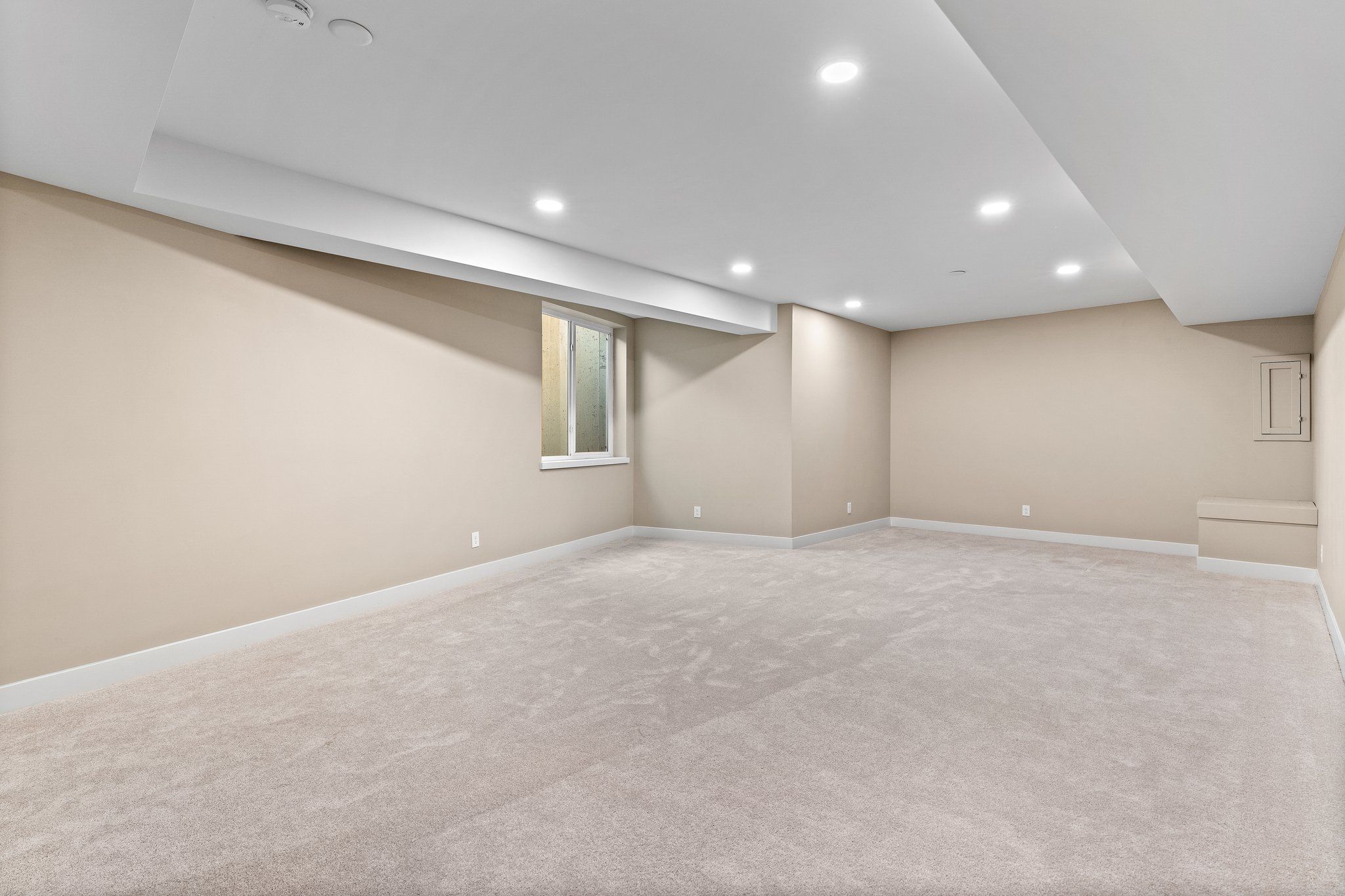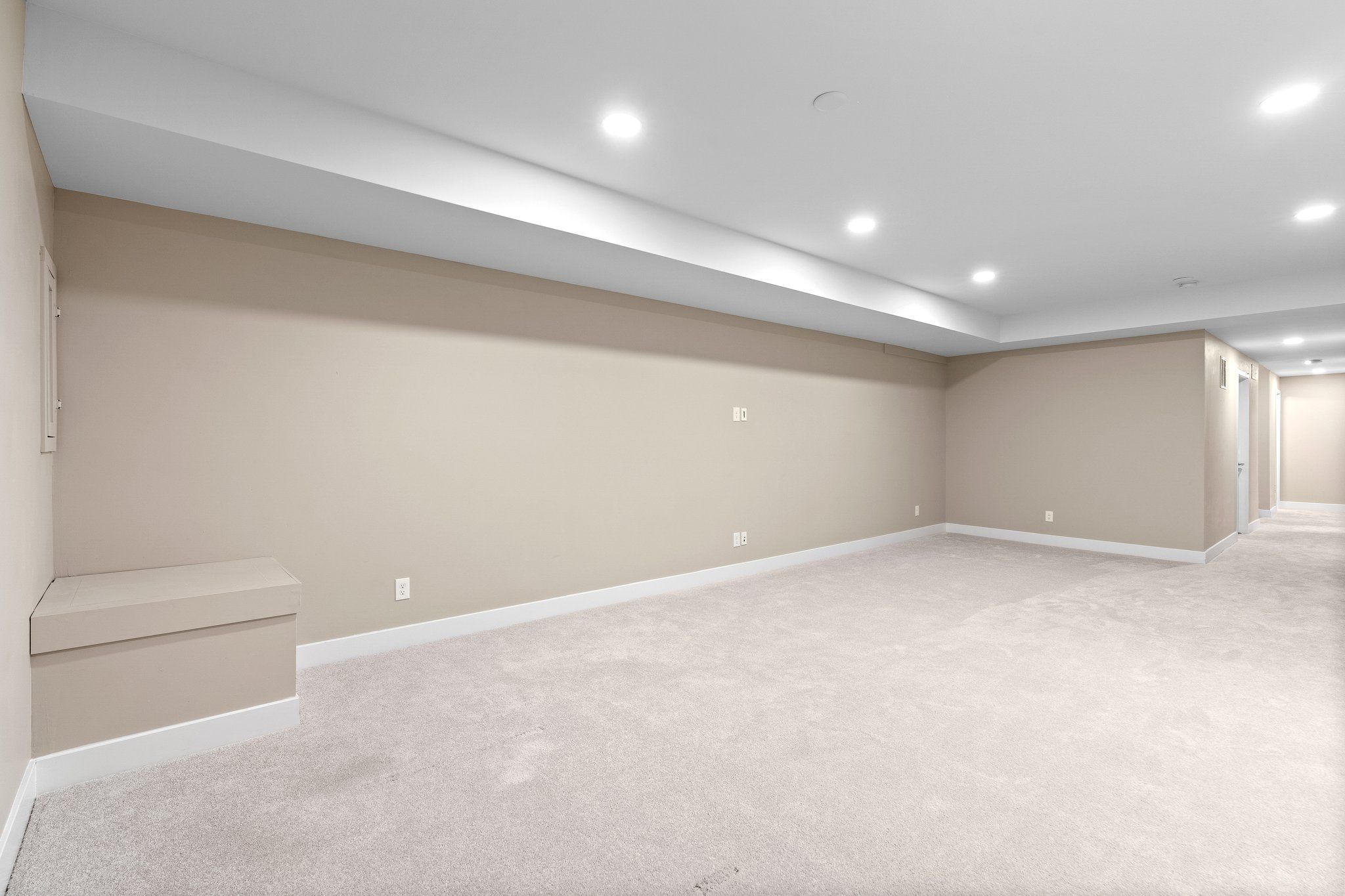 The fully finished basement is a blank canvas for the new homeowner. Playroom, home gym, or theater are a few options that make the shortlist of possibilities.