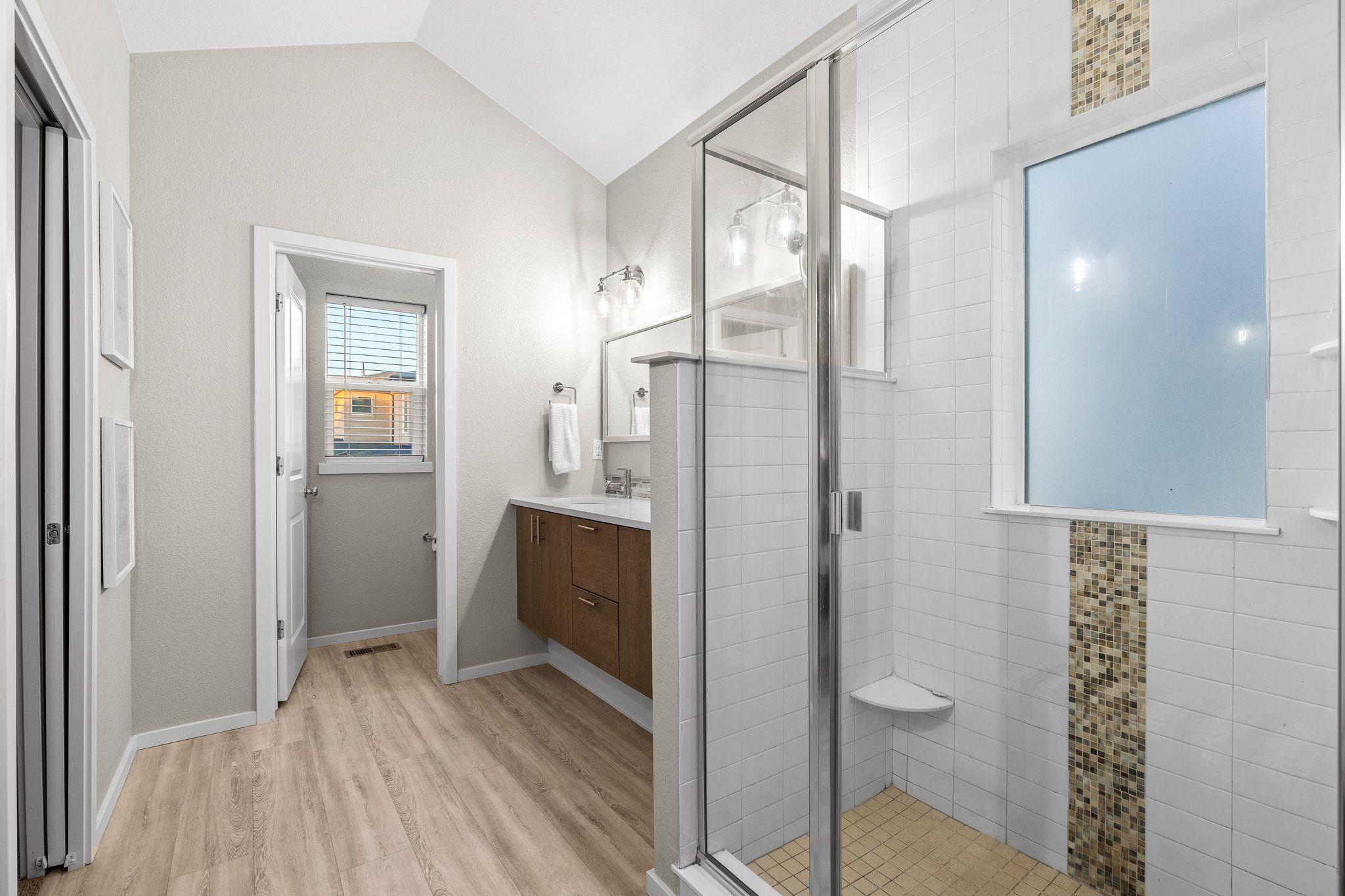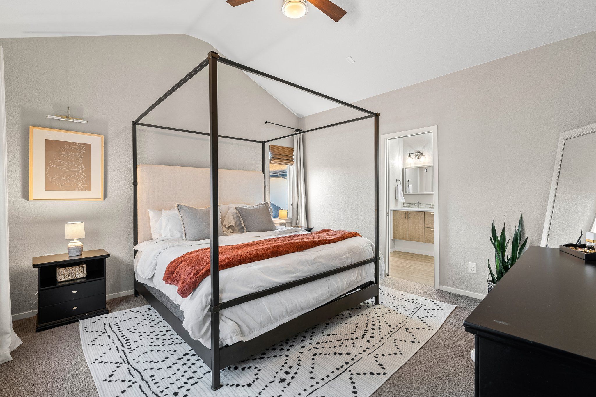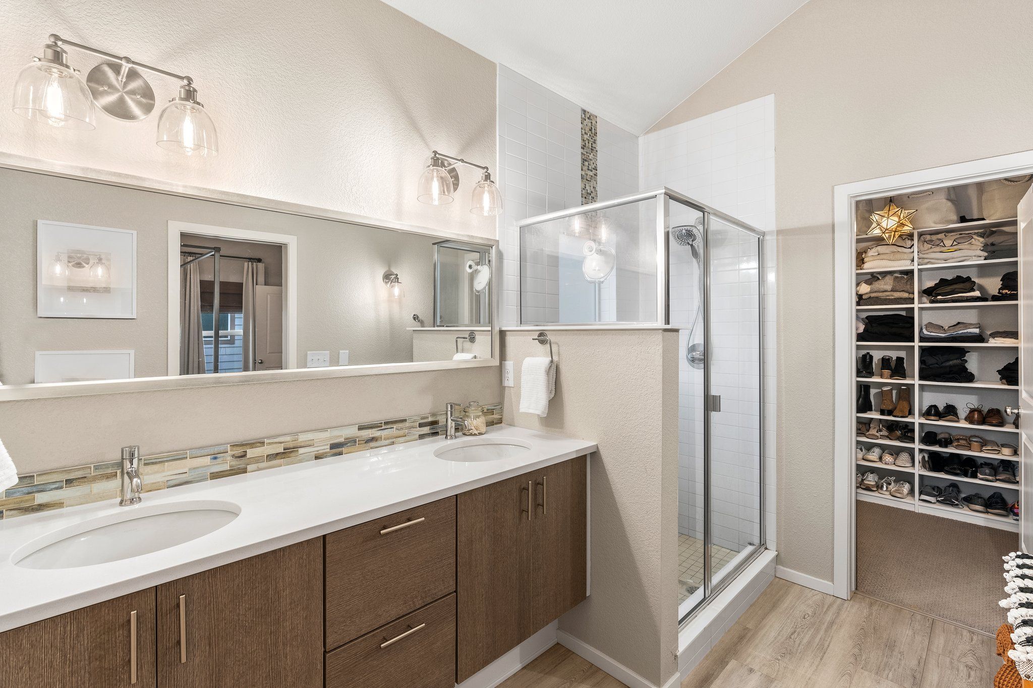 Looking for something a little quieter? Slip away to your own private primary suite retreat on the upper level and enjoy some well-deserved tranquility. The cares of the day fade away in your spacious en suite bath with dual vanities, quartz surfaces, and a stylish European inspired shower. You’ll have plenty of space for two wardrobes in the large walk-in closet.