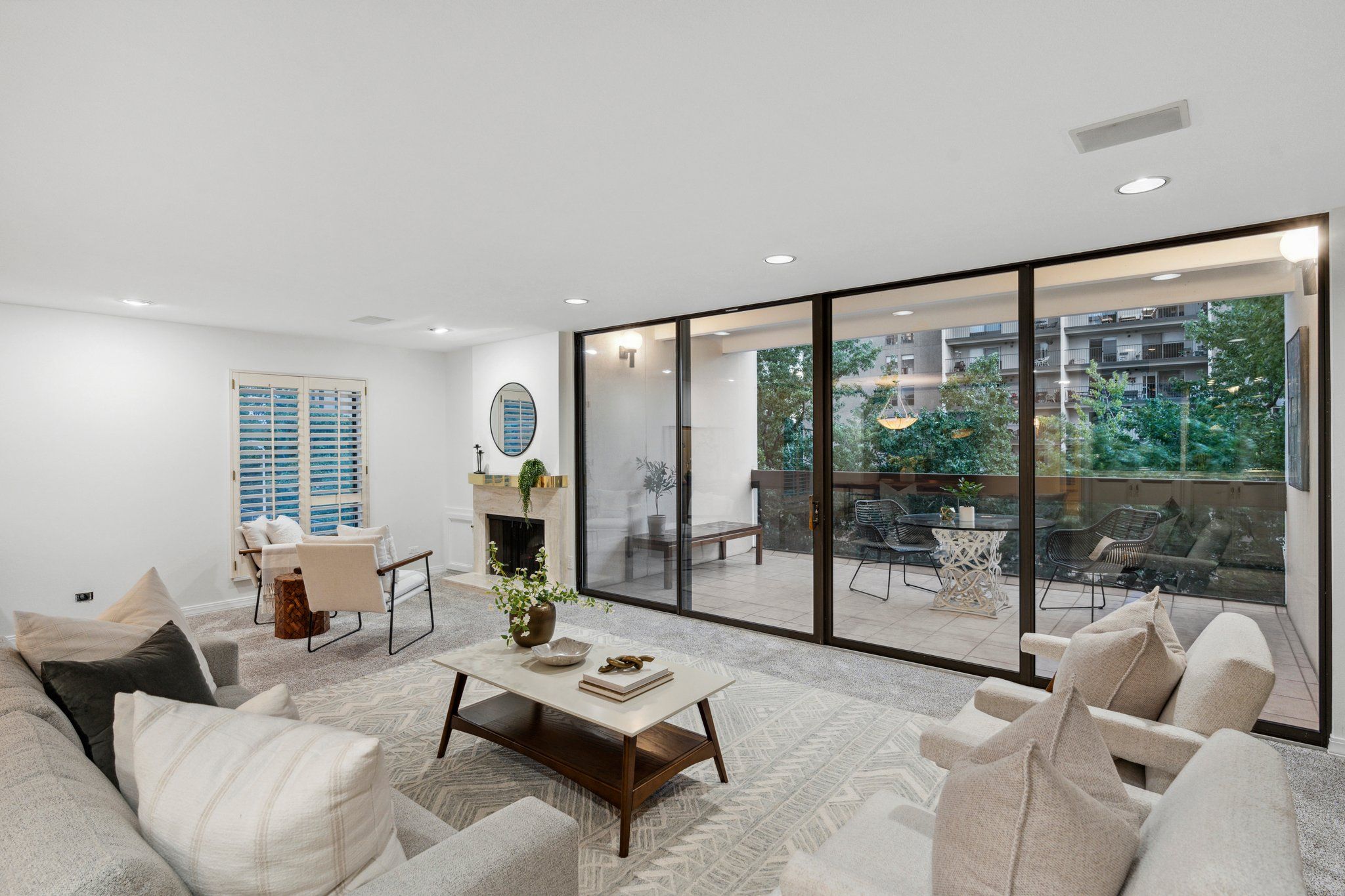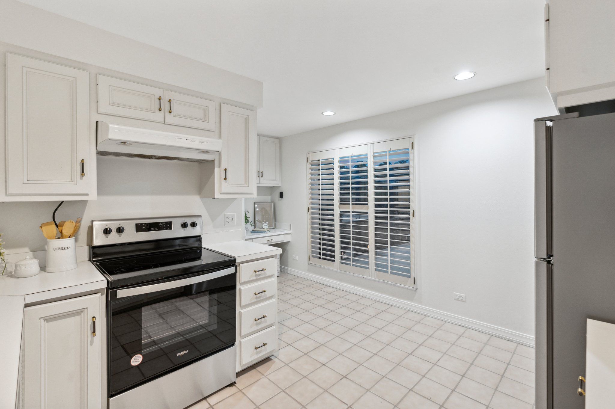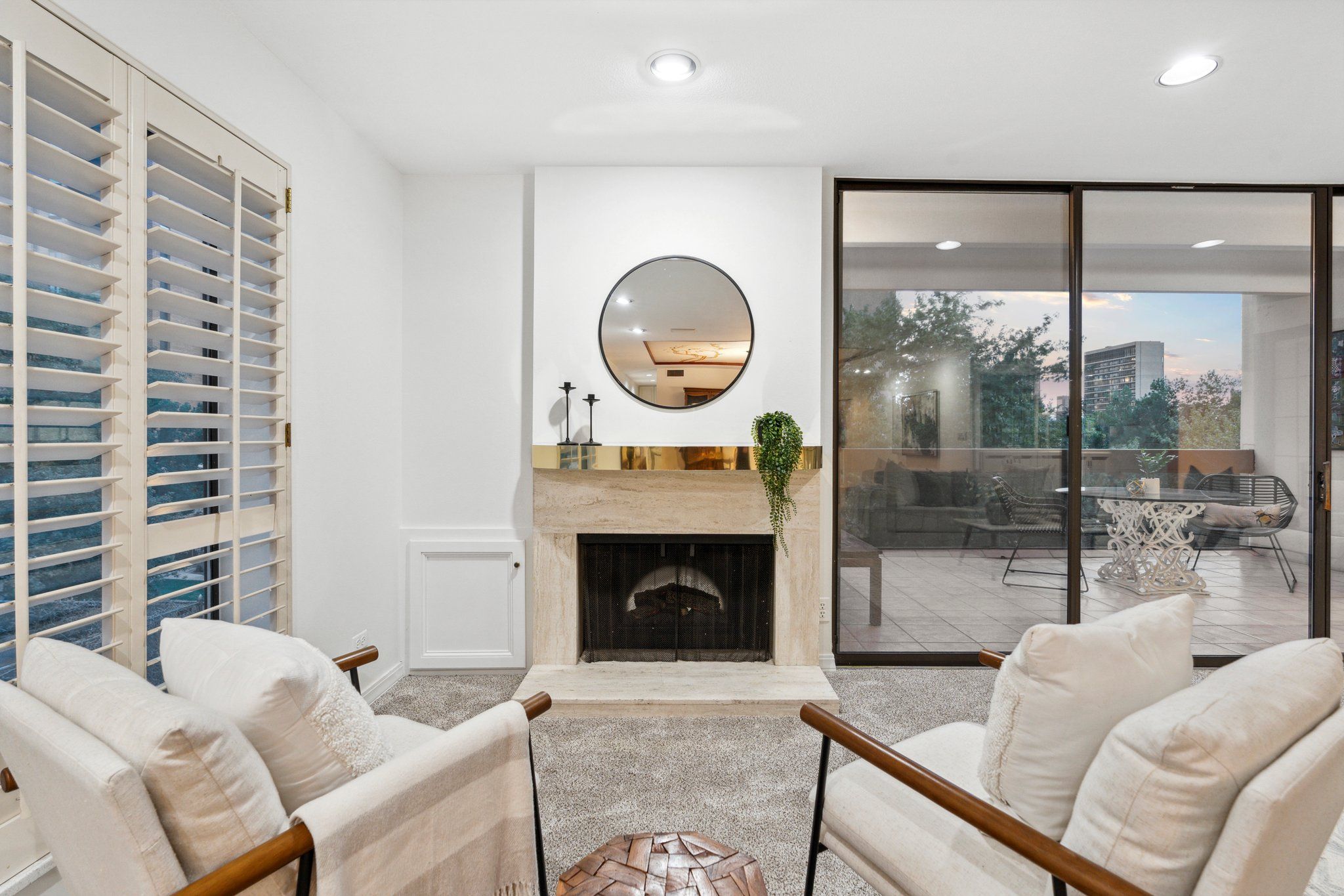 Gold and granite accents, with traditional shutters on the cased floor-to-ceiling windows, provide a sense of old-world glam. New stainless-steel appliances modernize the kitchen. Sliding glass doors lead to your private patio overlooking a canopy of trees. The primary suite features dual walk-in closets with built-in storage. Two additional bedrooms and an onsite laundry provide flexibility and functionality. Enjoy easy breezy climate control with the dual HVAC units.