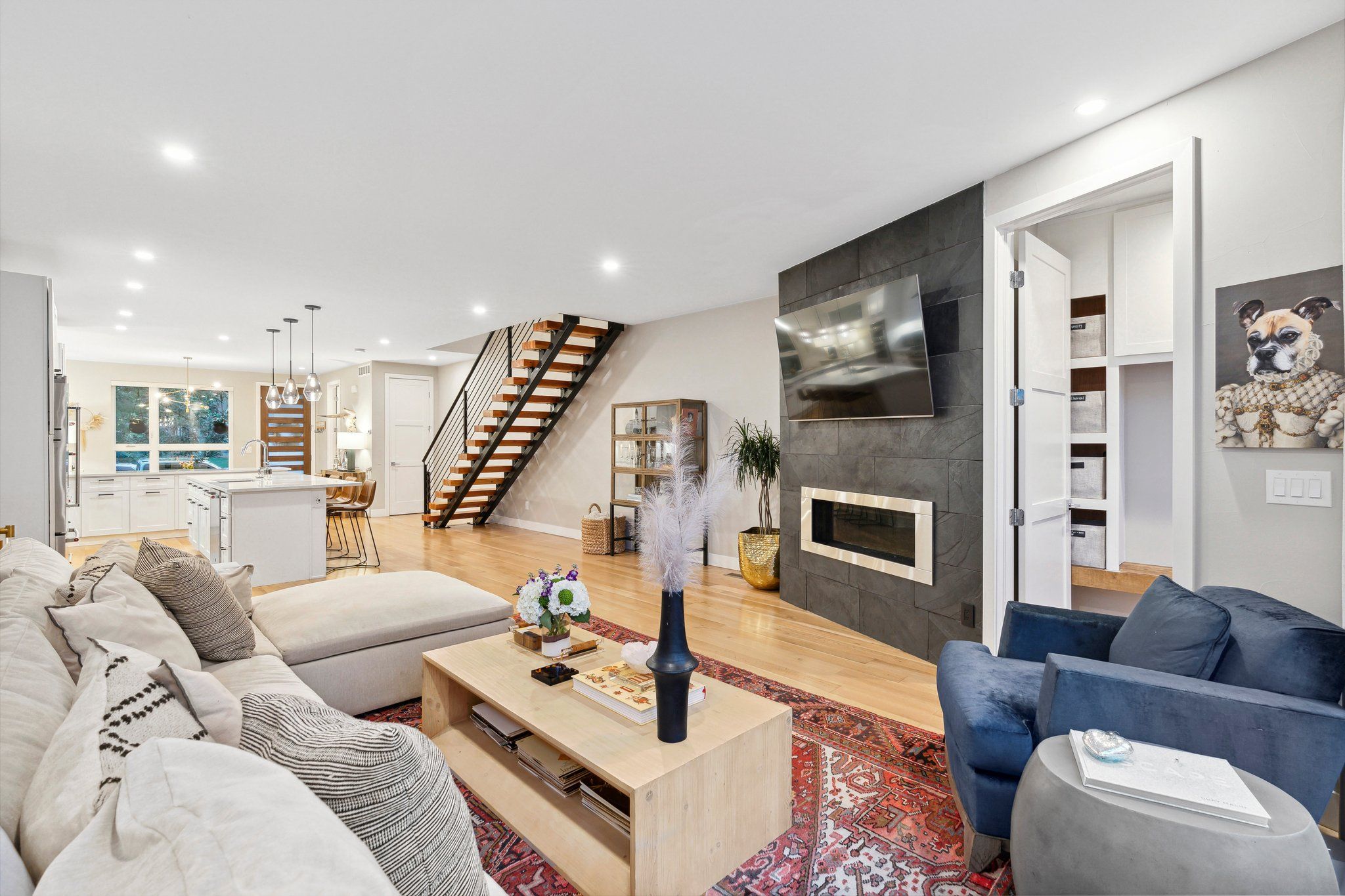 This exceptional three-story duplex nestled in the heart of Sloan’s Lake offers the perfect blend of modern elegance & urban convenience. With its impeccable design & spacious layout including FOUR outdoor patios, this home exudes effortless elegance. Upon entering, you’ll be greeted by an inviting atmosphere that showcases meticulous attention to detail. An open concept floor plan with blonde hardwood underfoot seamlessly connects the living, dining, & kitchen areas.