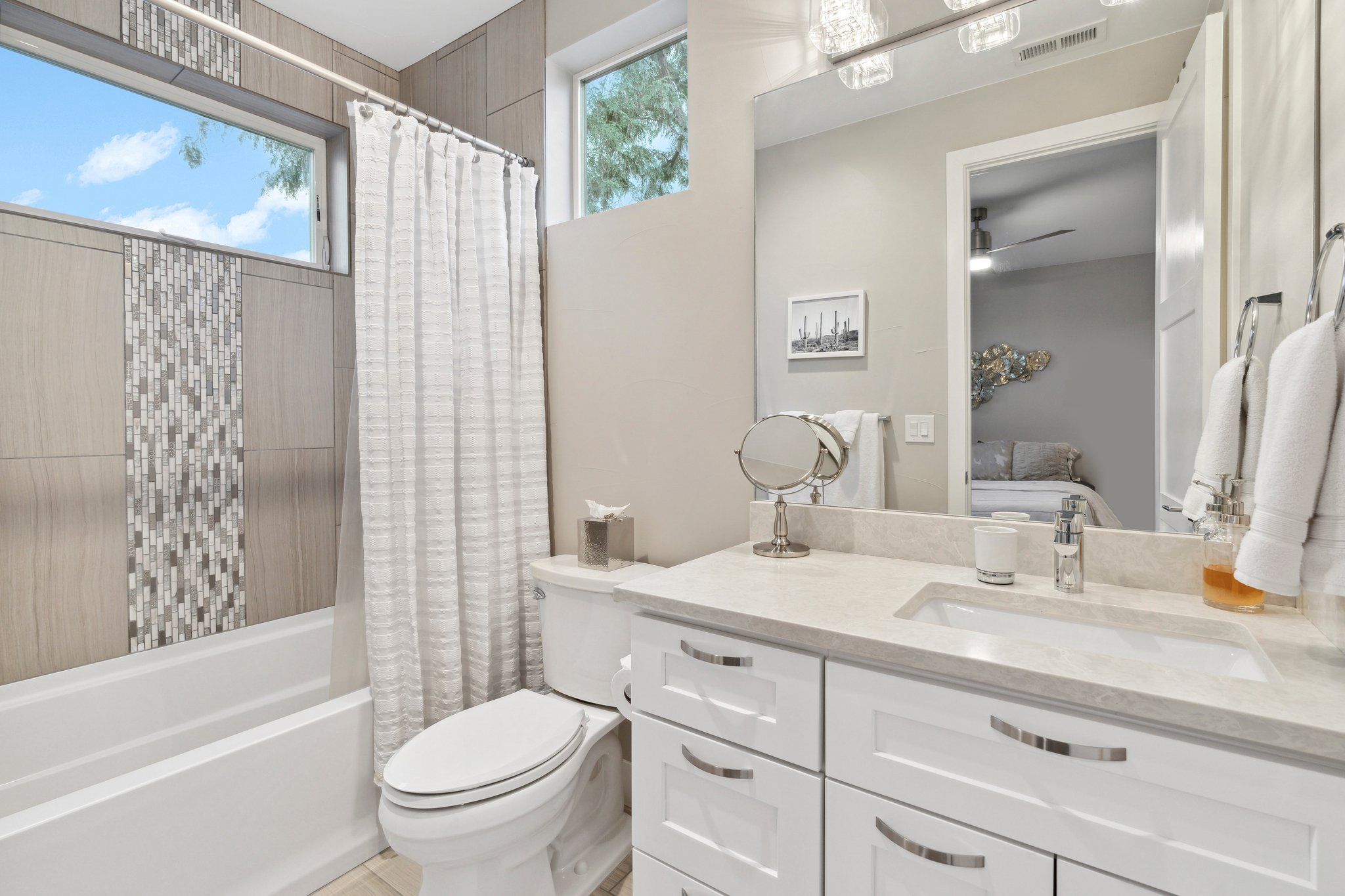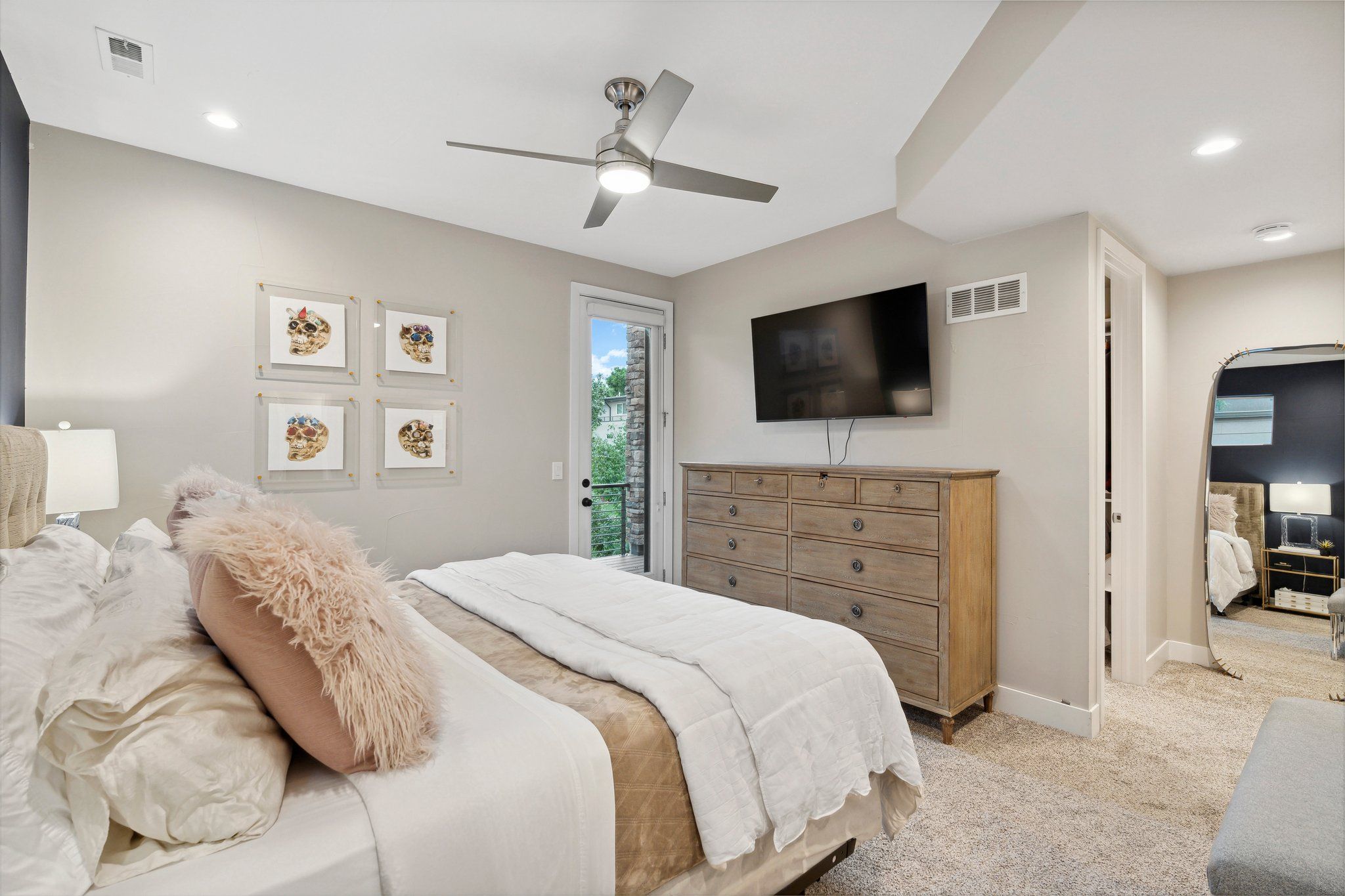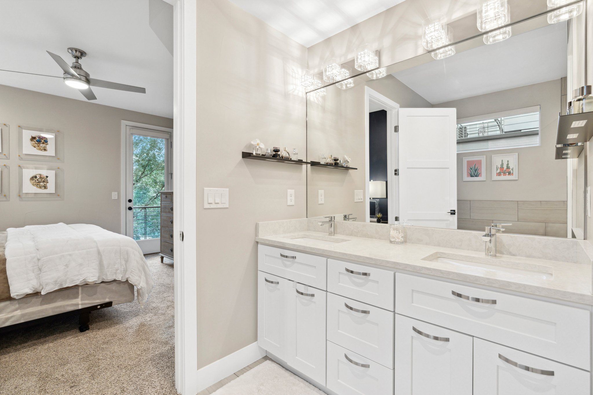 On the upper level, the primary suite is a true sanctuary with a west facing private balcony, walk-in closet, & a private en suite bath with spa-like features…transforming every bathing experience into a retreat.
