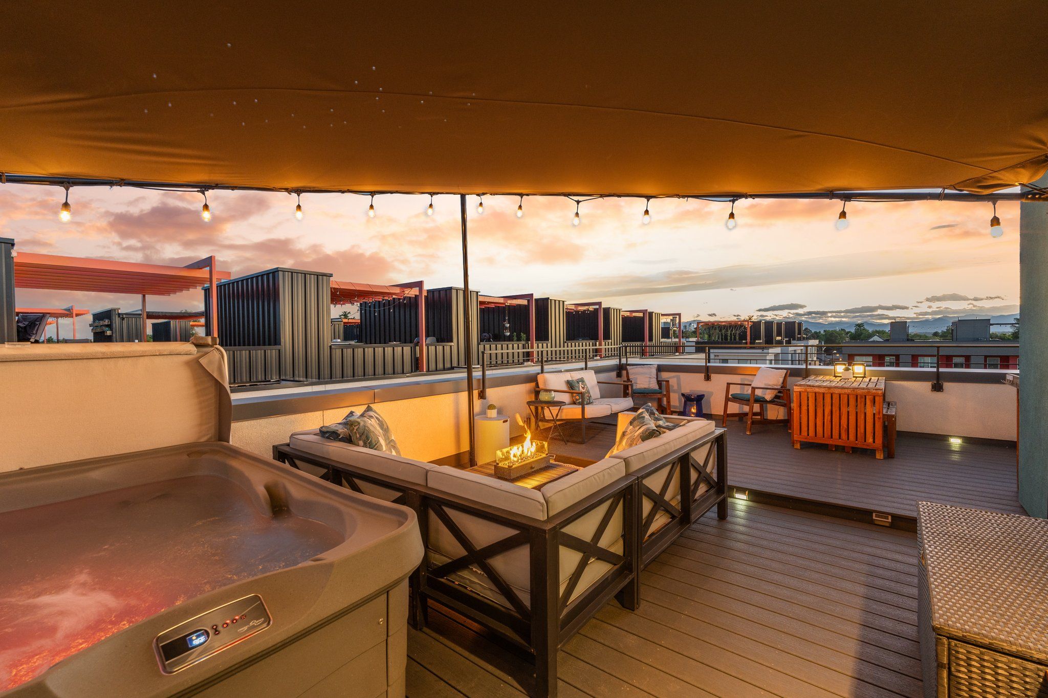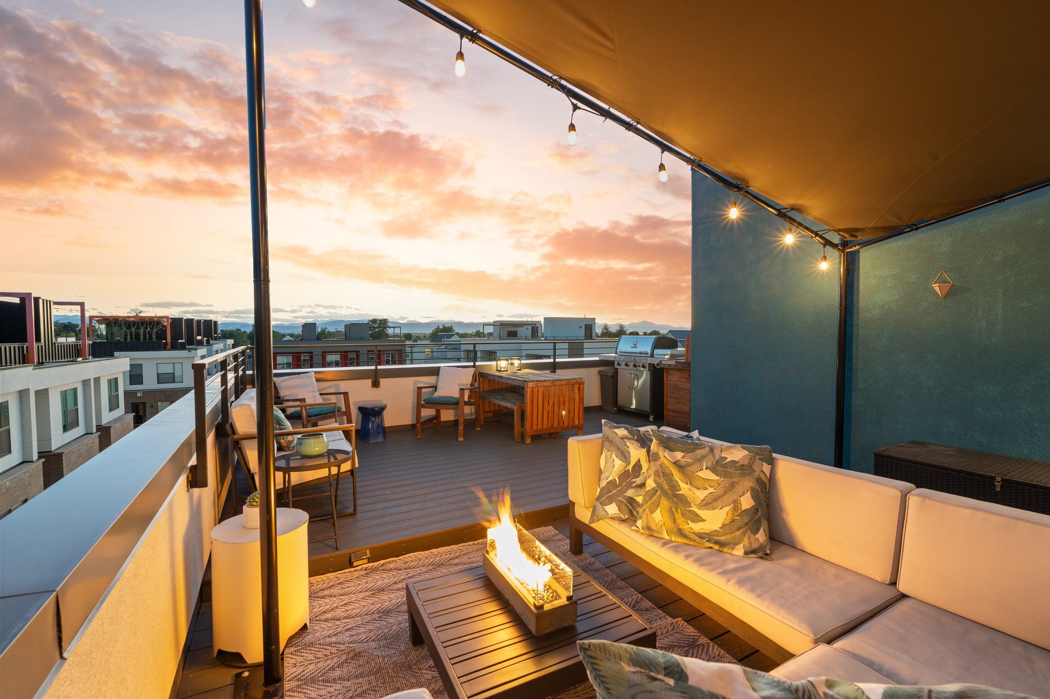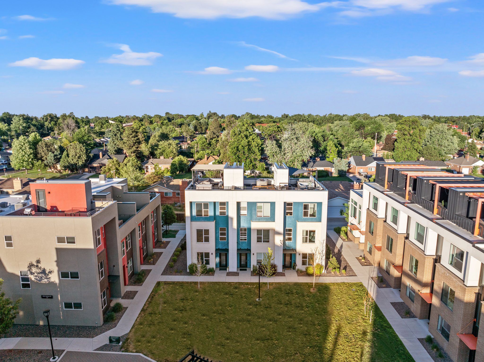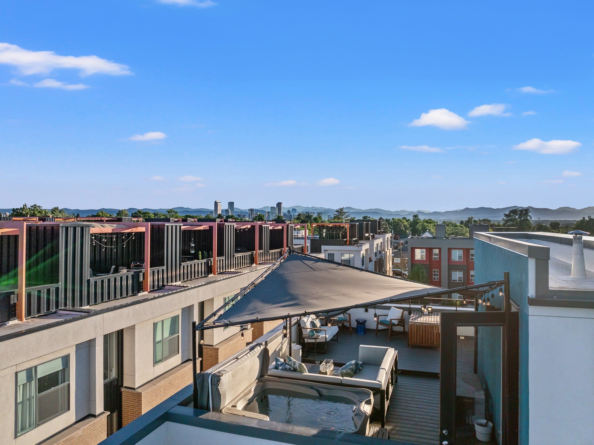 Welcome home to Skyland Village. Located near City Park, this contemporary townhome, built in 2019, offers an exquisite blend of comfort and functional living spaces. With 3 bedrooms and 4 bathrooms, this home is designed for modern city living. Entertain guests or escape to the private roof top deck. Enjoy stunning city and mountain views from the rooftop, complete with a hot tub, sunshade, and gas line for convenient outdoor cooking.