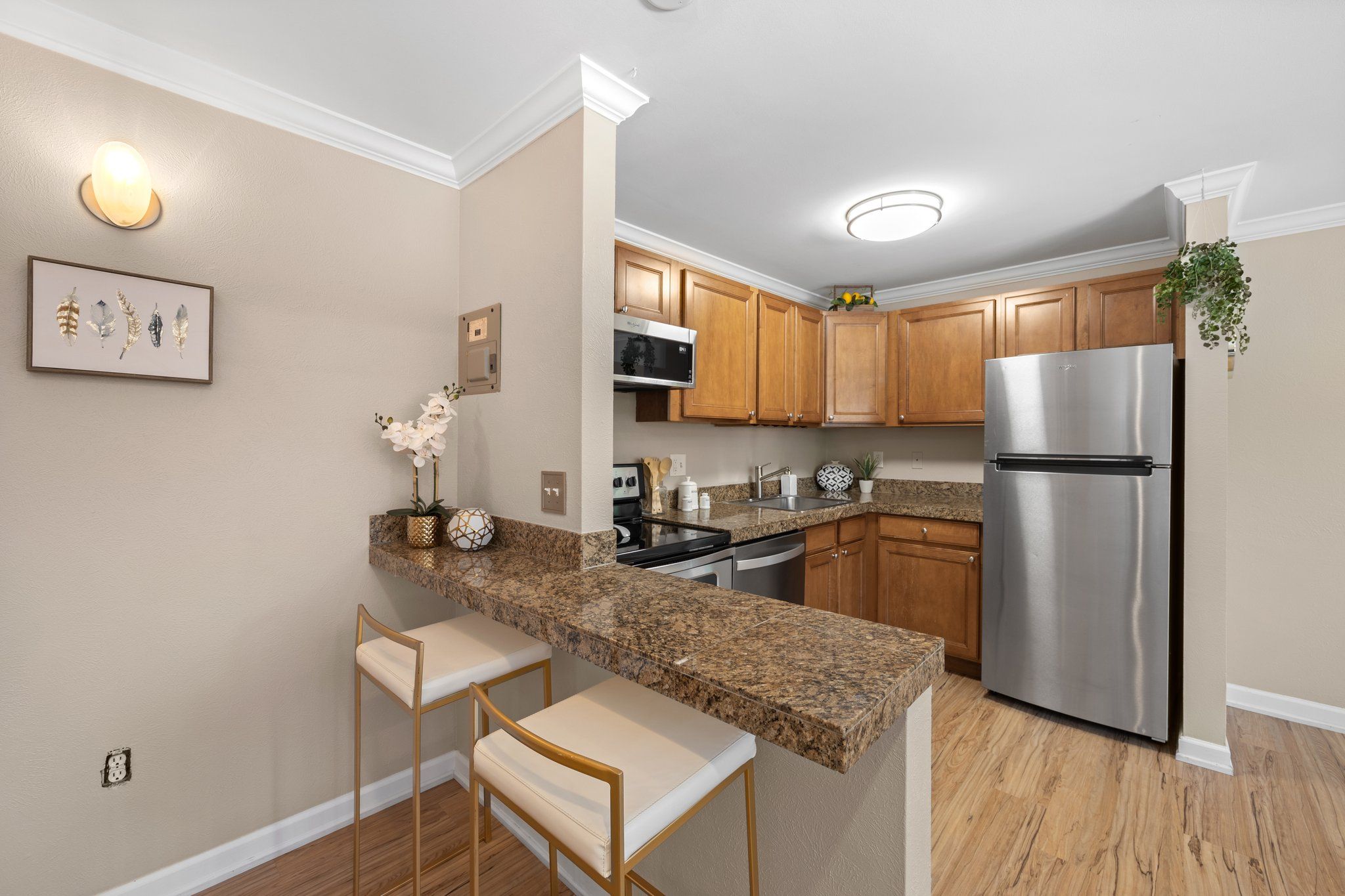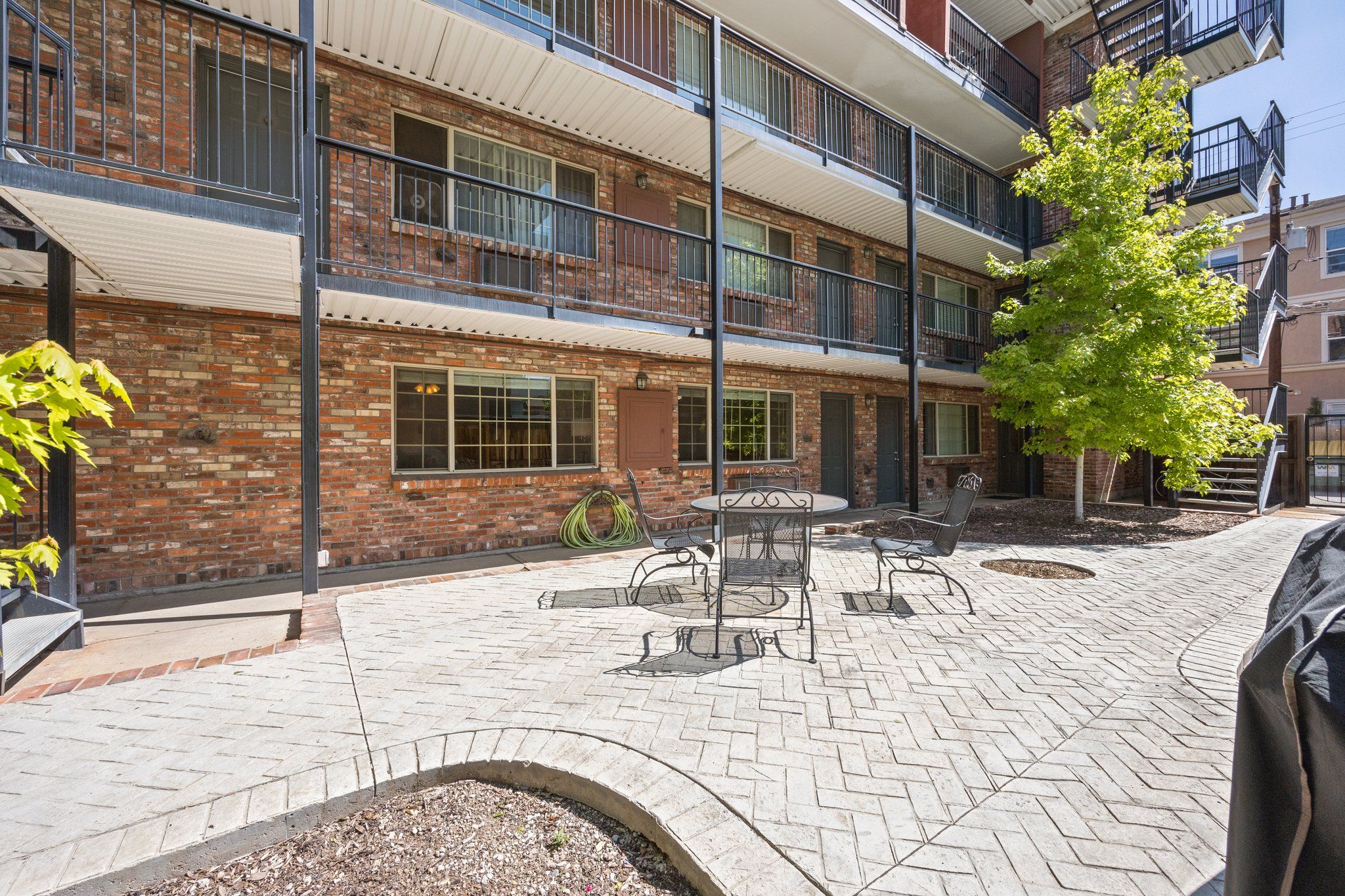 The courtyard in front of the unit boasts BBQ facilities and is another appealing feature, perfect additional location for entertaining friends and family. One standout feature of this unit is the private backyard patio, rare for a condo in this neighborhood, which adds a touch of tranquility to your daily routines. It's a great space to relax and unwind.