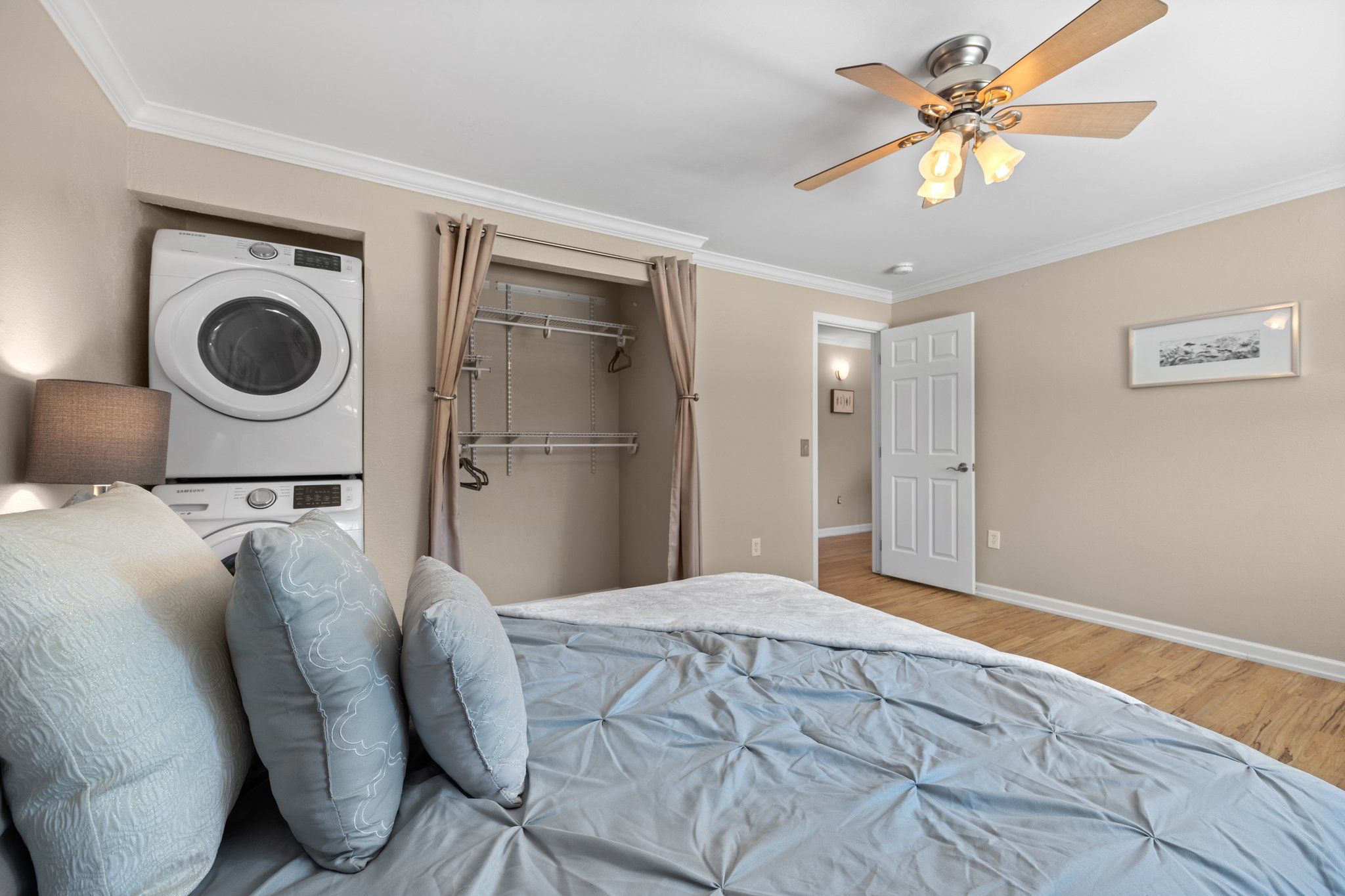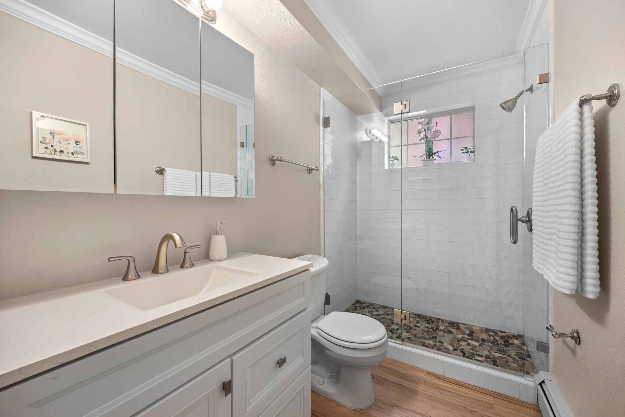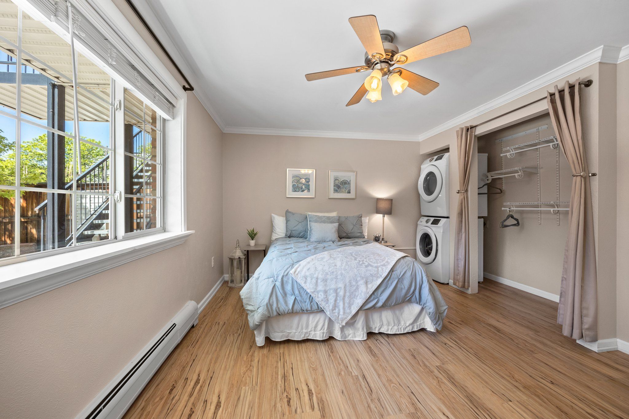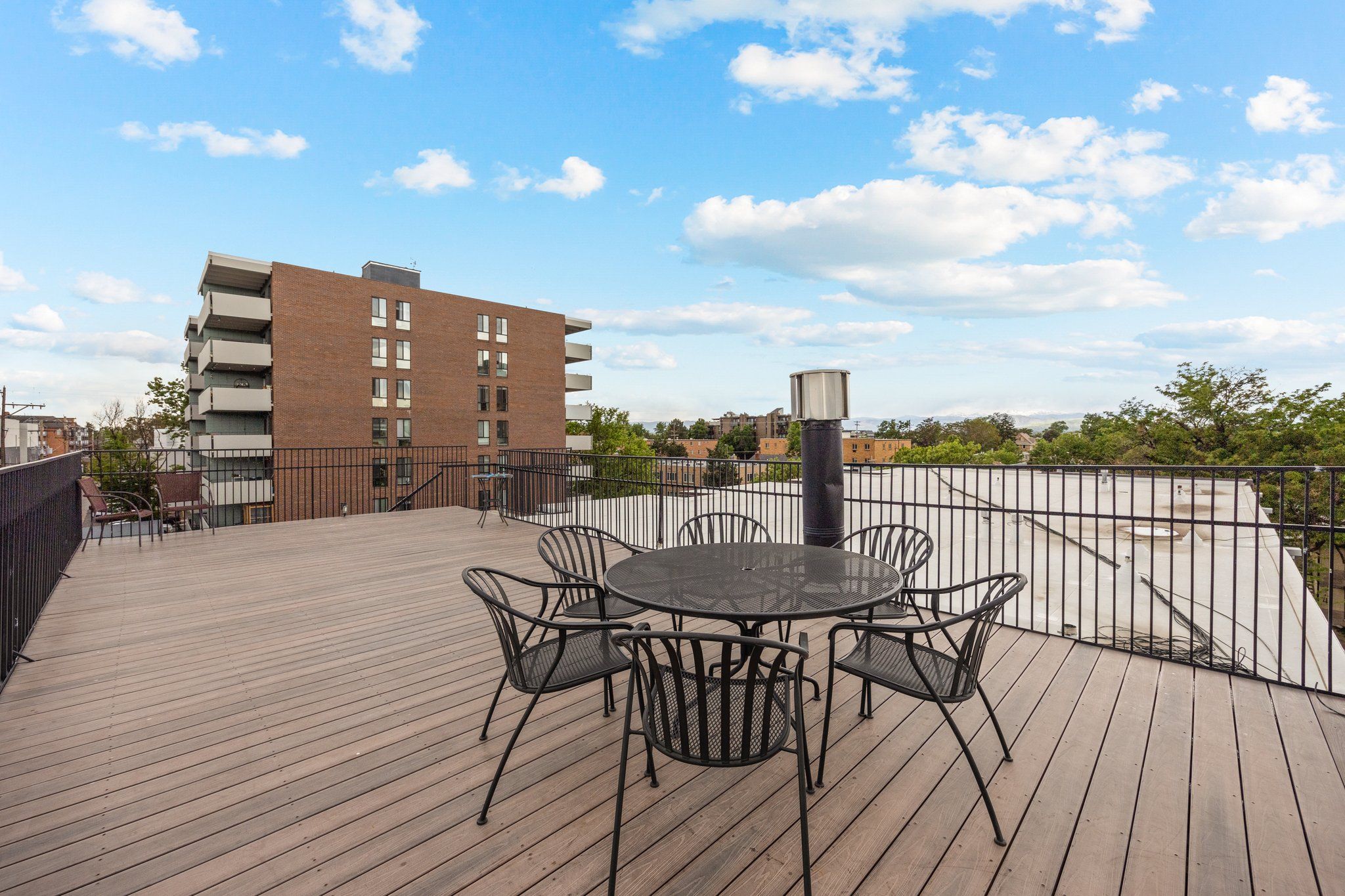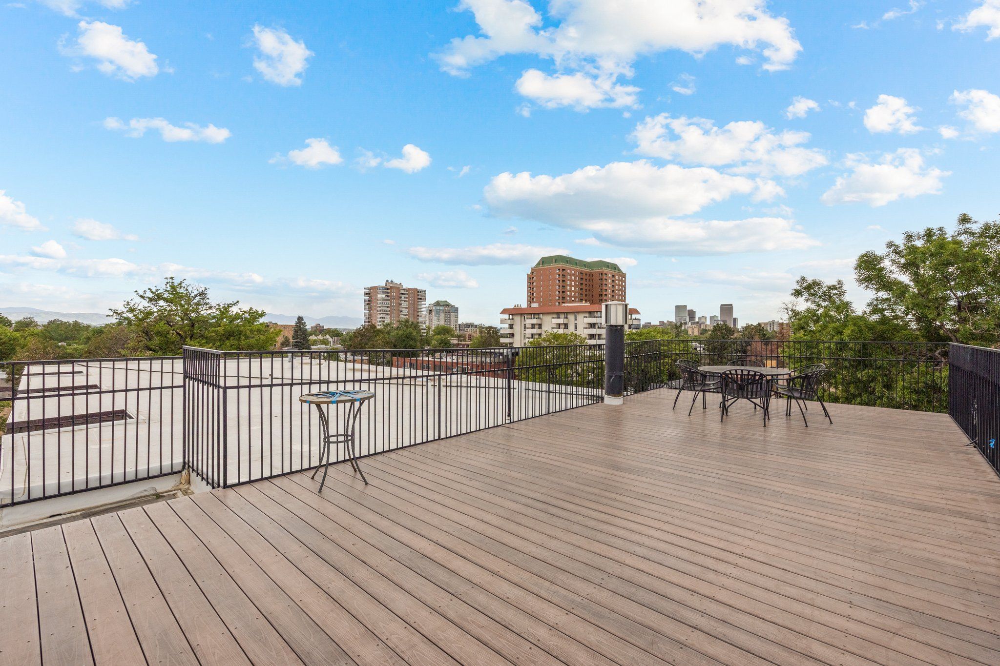 The stackable washer and dryer closet within the condo is a convenient feature, and having a laundry facility and storage closet nearby adds to the practicality of the unit. The bathroom has been recently remodeled with tile surround and spa like shower with seamless glass door and a new vanity. The shared rooftop space is delightful, providing a great place to socialize with friends while enjoying the view of the city.