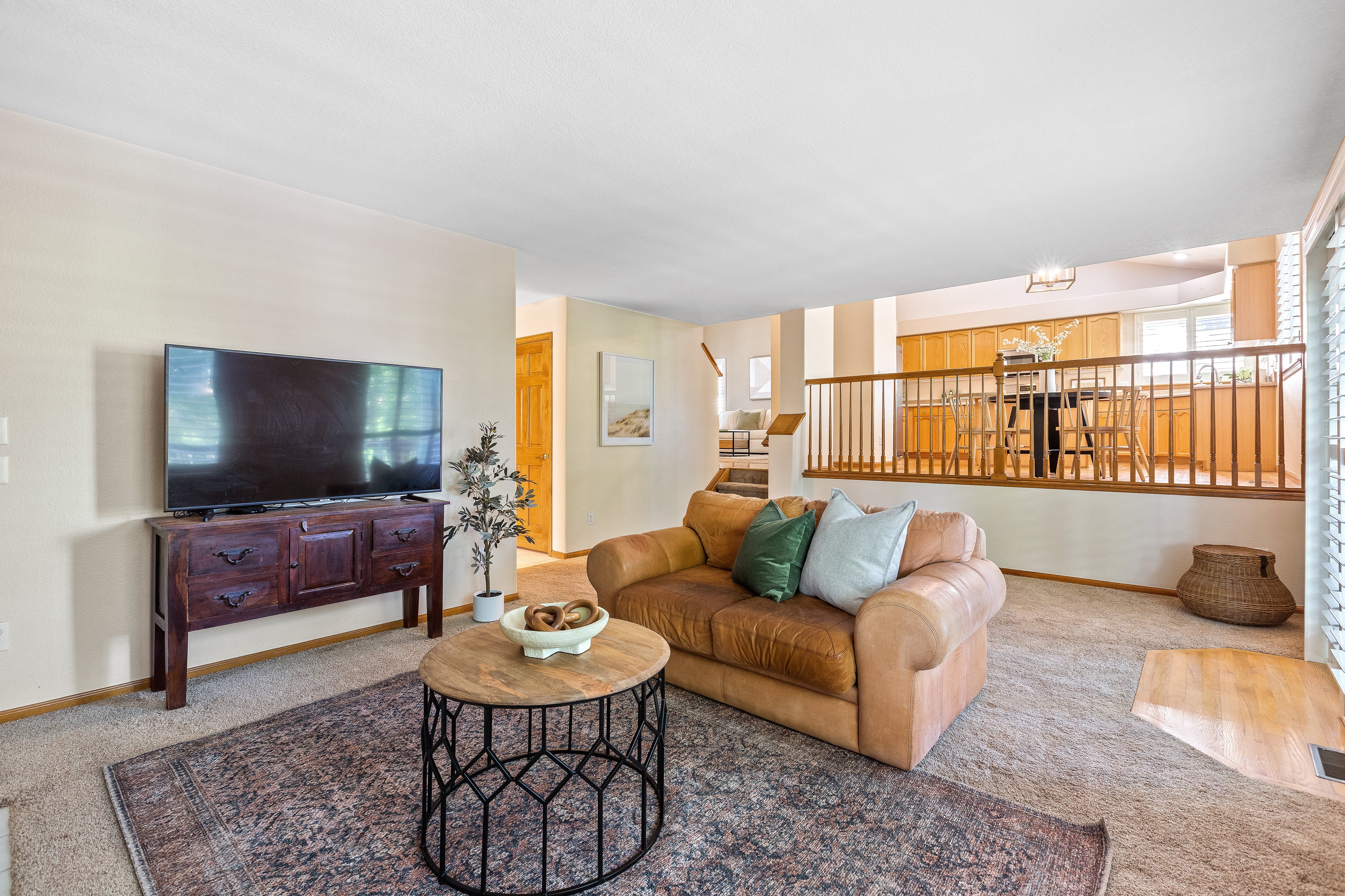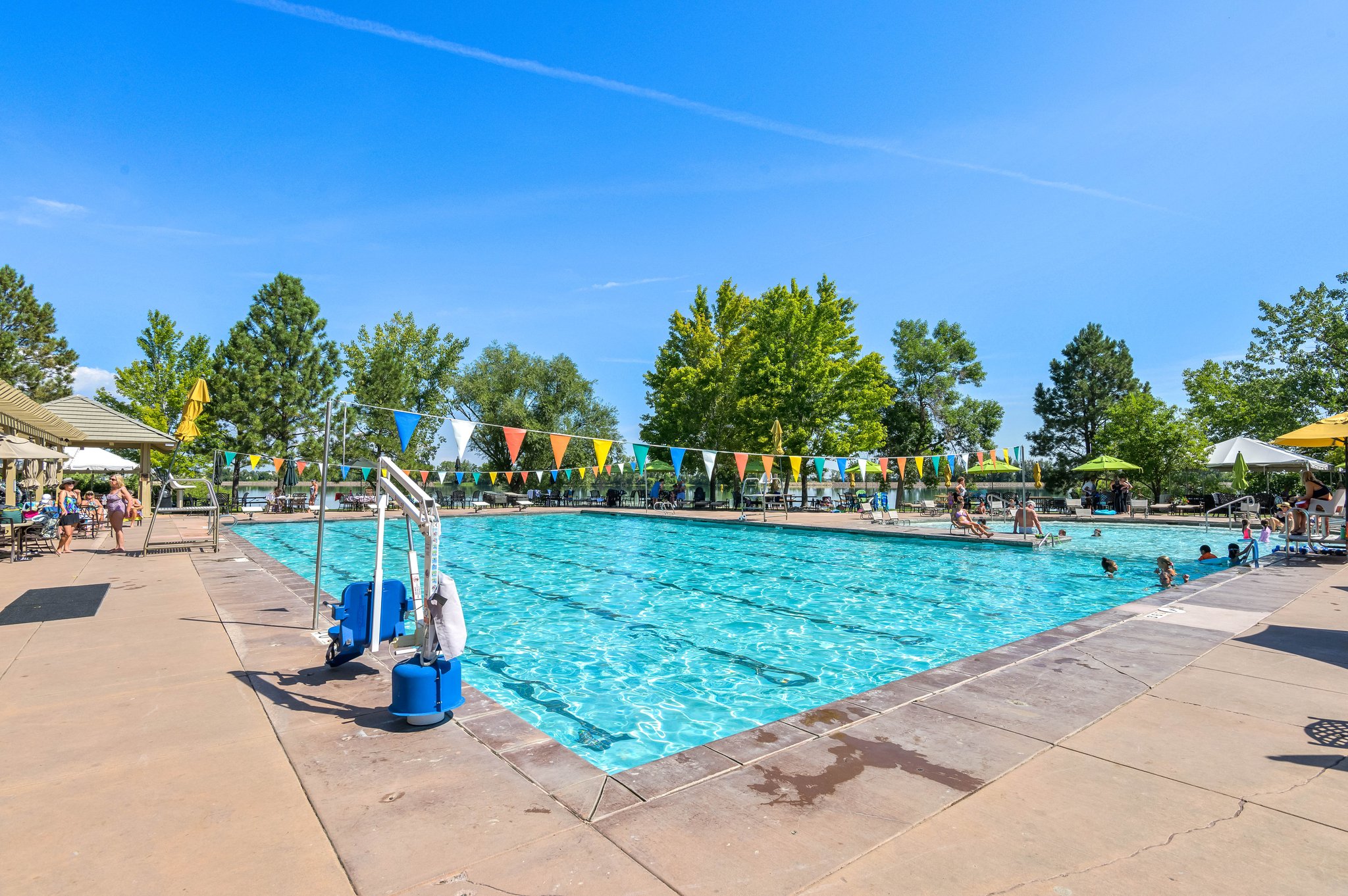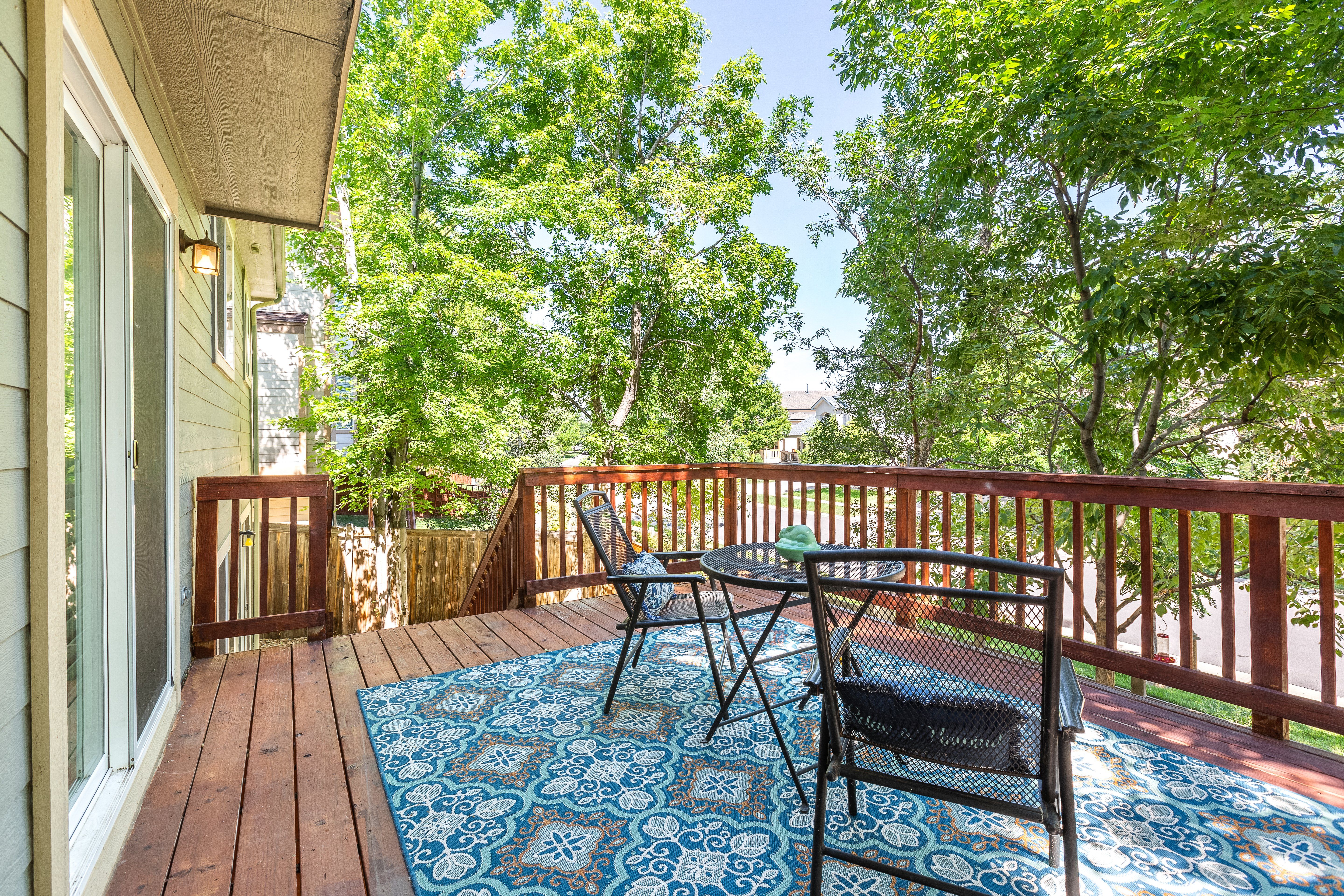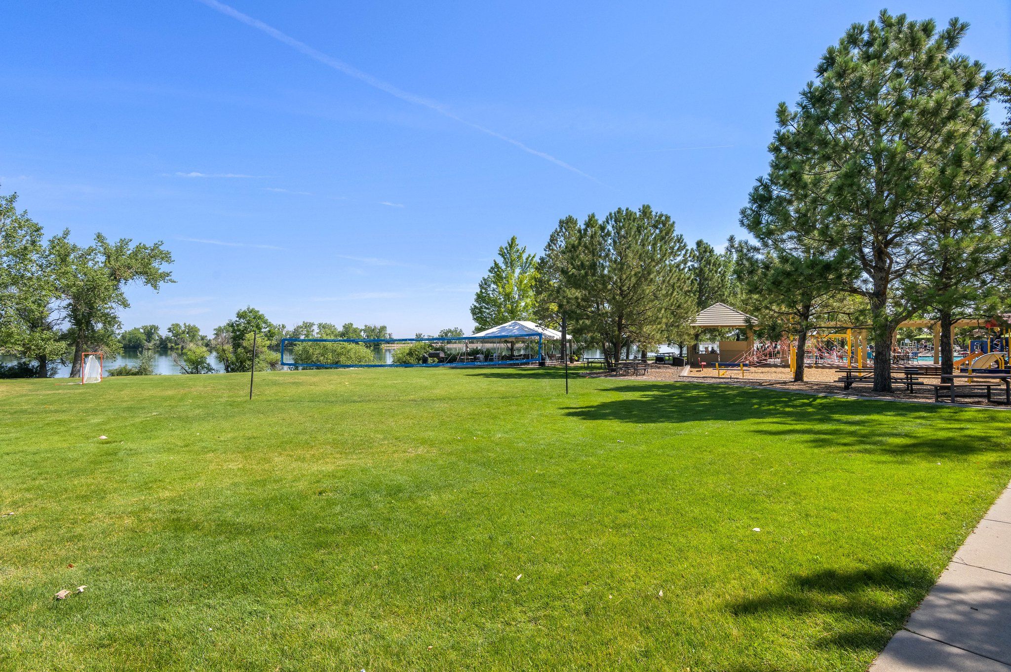 If you are looking for the Colorado lifestyle, look no further! Walk on the trails, paddleboard at the lake, swim at the pool and more at the community of Grant Ranch. A welcoming entryway transitions to the front living room feature vaulted ceilings and custom plantation shutters. The open concept kitchen and dining space boast stainless steel appliances, quartz countertops and a brand new chandelier. The kitchen is open to an additional living room/den with a cozy electric fireplace, built-in shelving, and double doors to the deck overlooking the backyard.