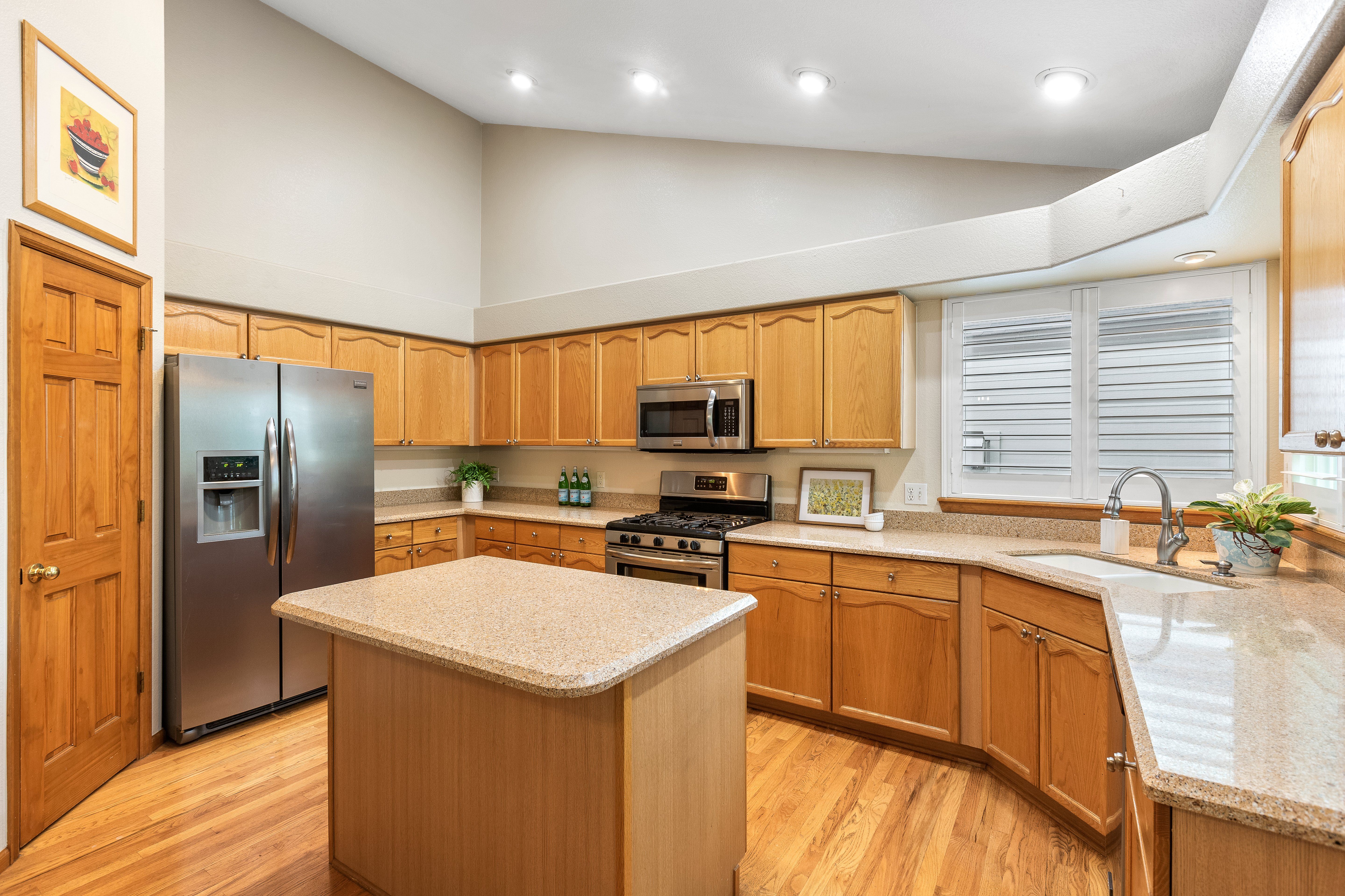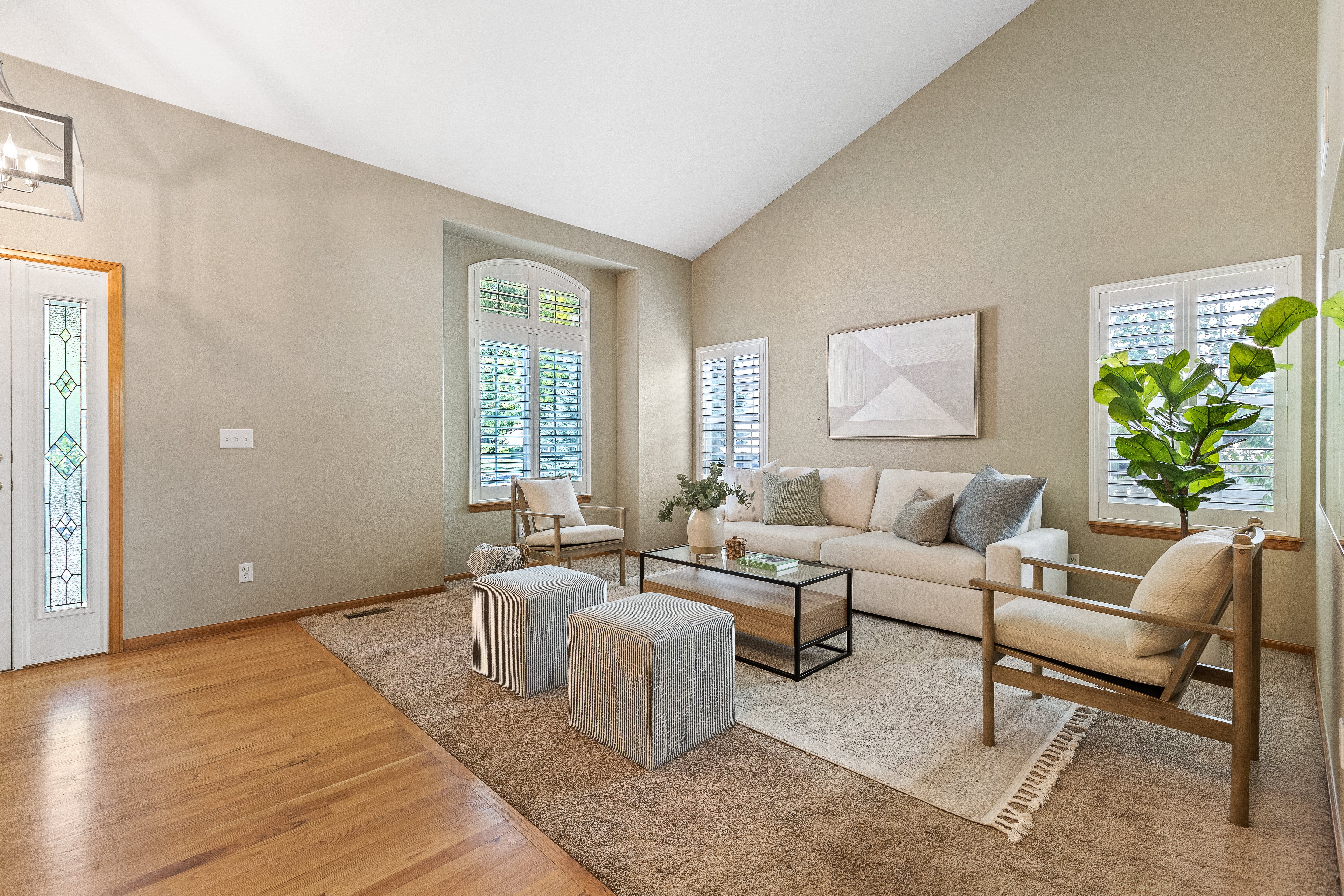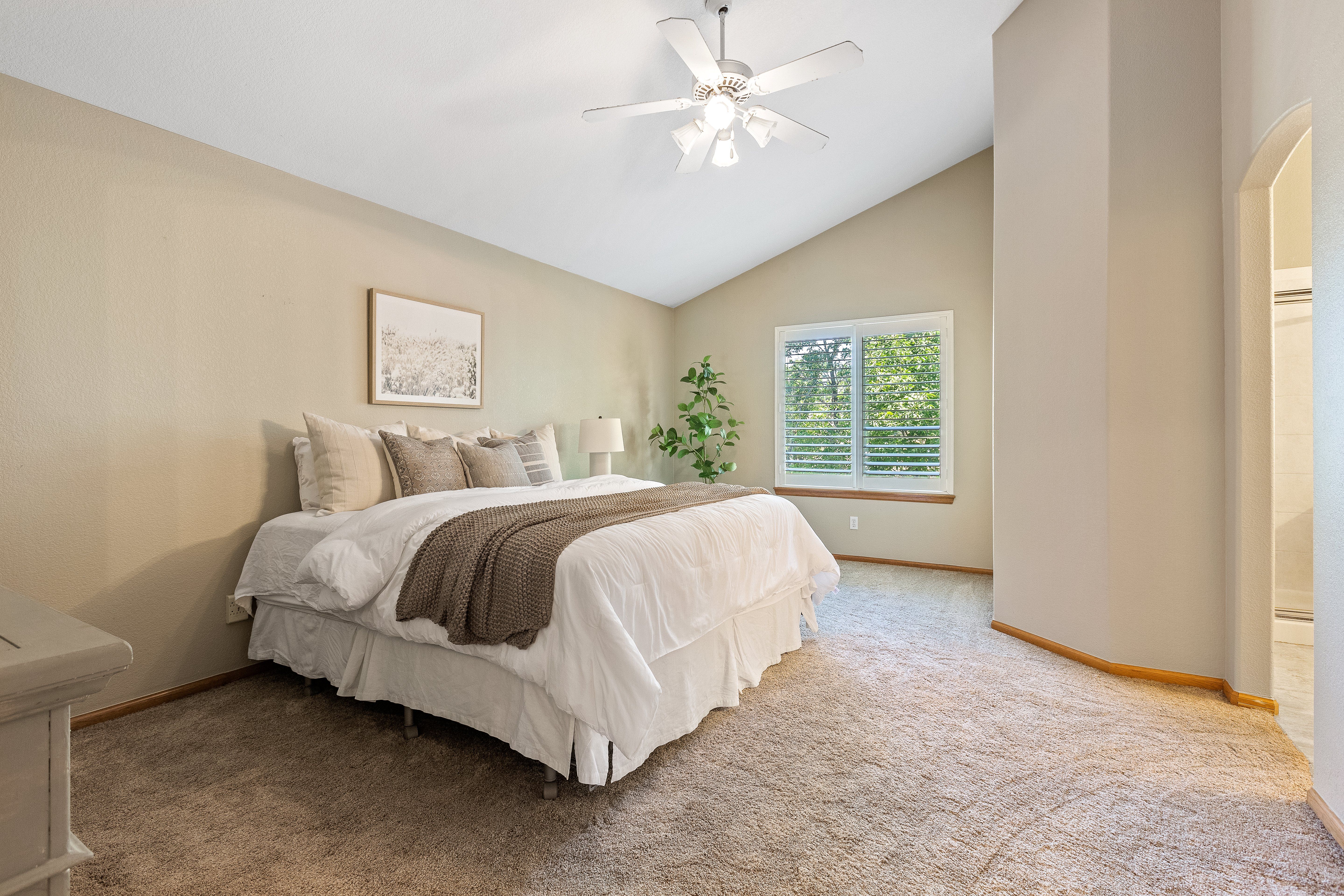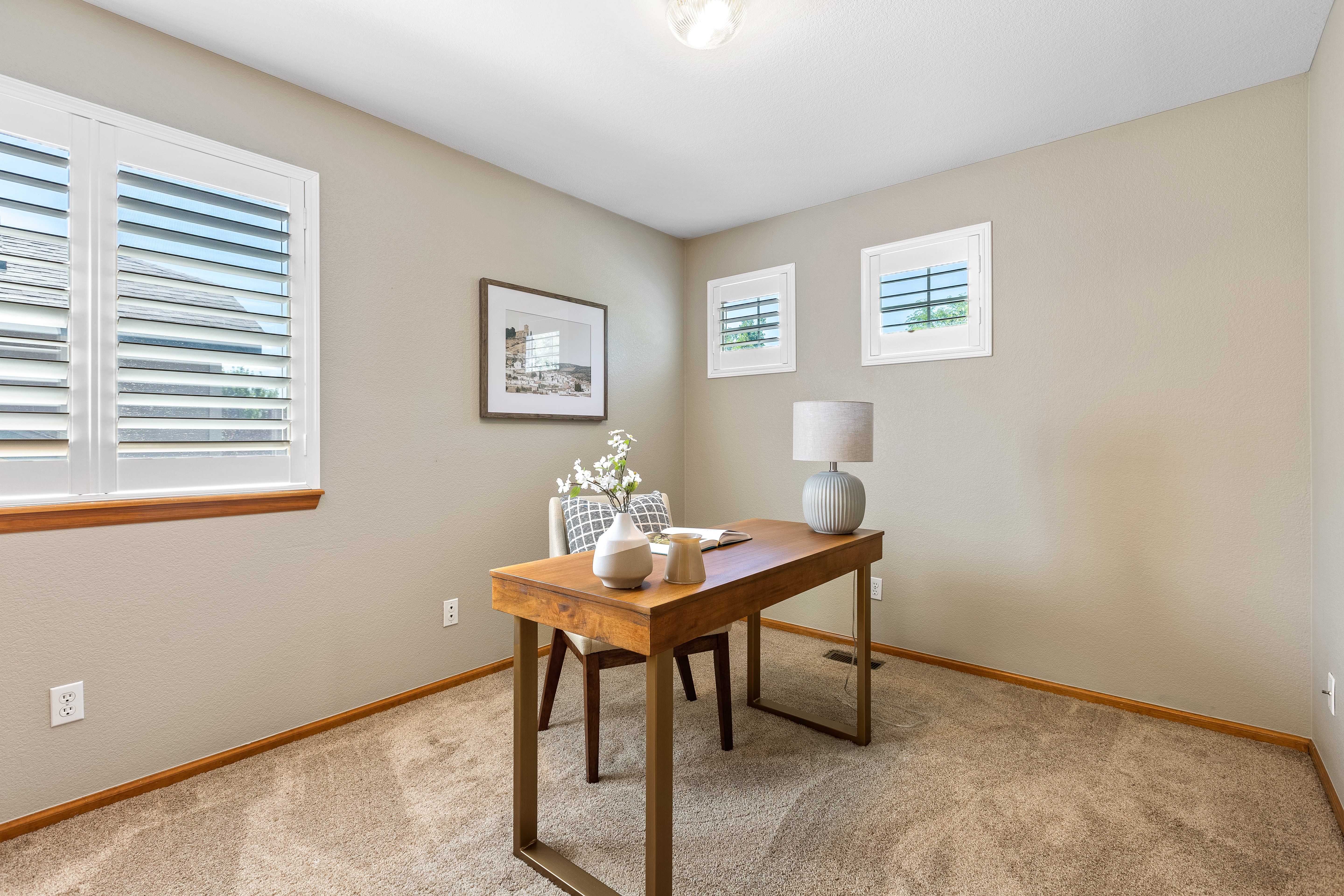 If you are looking for the Colorado lifestyle, look no further! Walk on the trails, paddleboard at the lake, swim at the pool and more at the community of Grant Ranch. A welcoming entryway transitions to the front living room feature vaulted ceilings and custom plantation shutters. The open concept kitchen and dining space boast stainless steel appliances, quartz countertops and a brand new chandelier. The kitchen is open to an additional living room/den with a cozy electric fireplace, built-in shelving, and double doors to the deck overlooking the backyard.