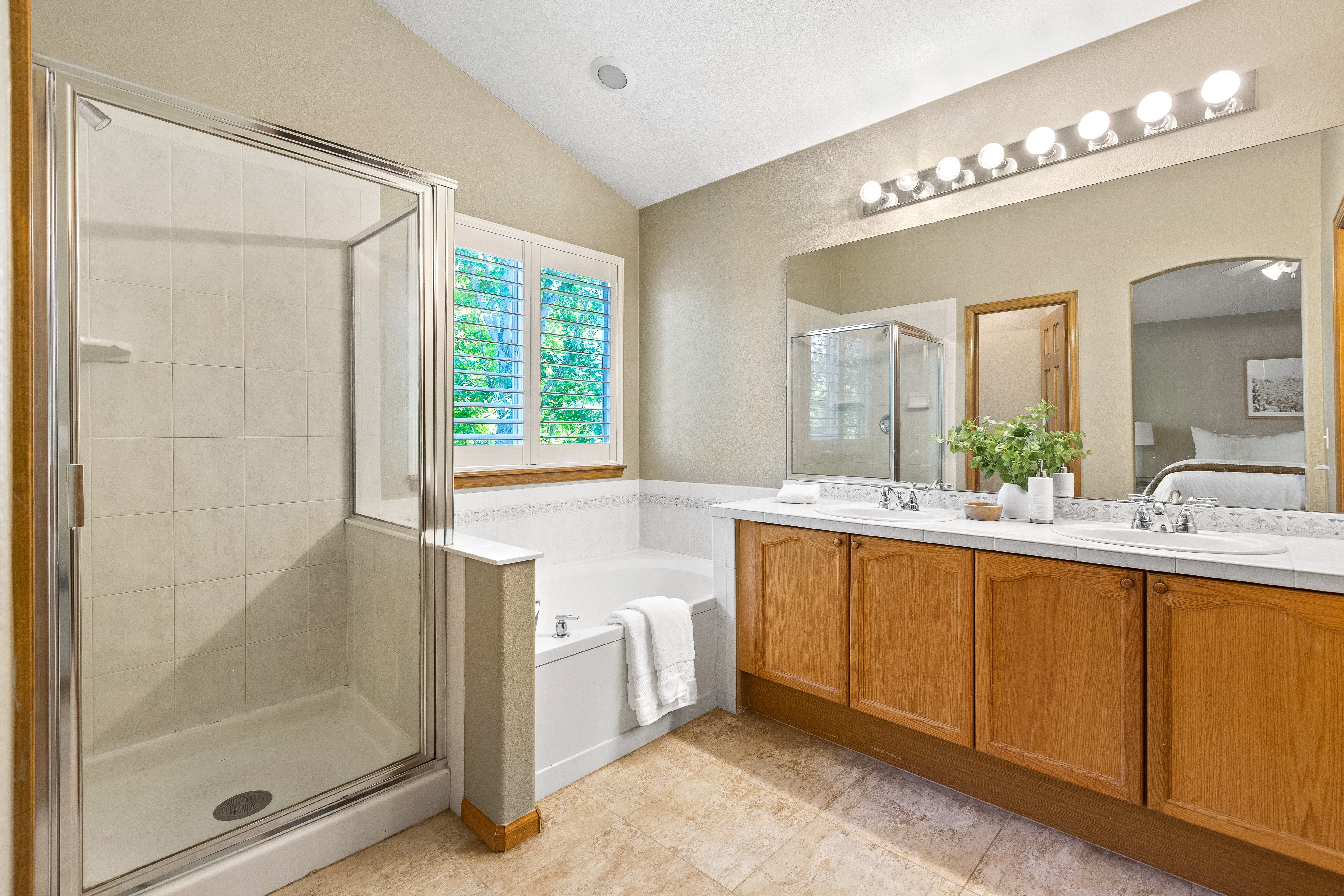 The Primary Suite on the upper level is surrounded by lush treetop views out every window! A 5 piece en suite bath, soaking tub and walk in closet affords a well earned retreat. Two additional bedrooms and a hallway on the upper level accommodate a variety of living needs. The walkout lower level features the fourth bedroom with egress window as well as a bonus room with sliding glass double doors that open up to the back yard, perfect for indoor-outdoor connectivity.