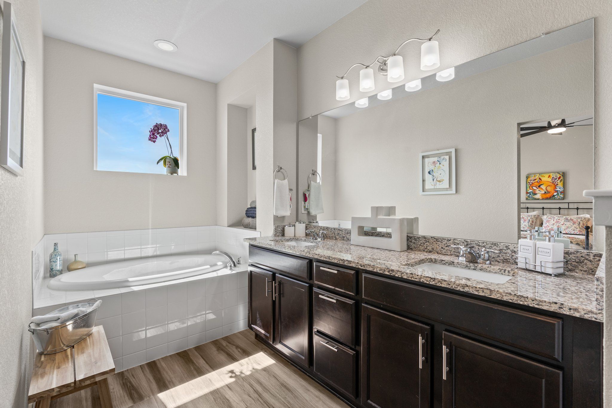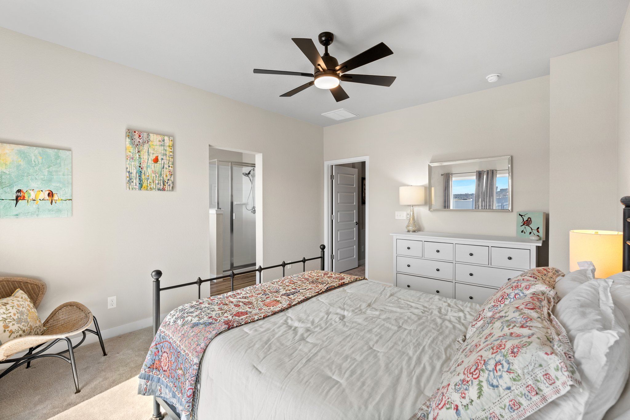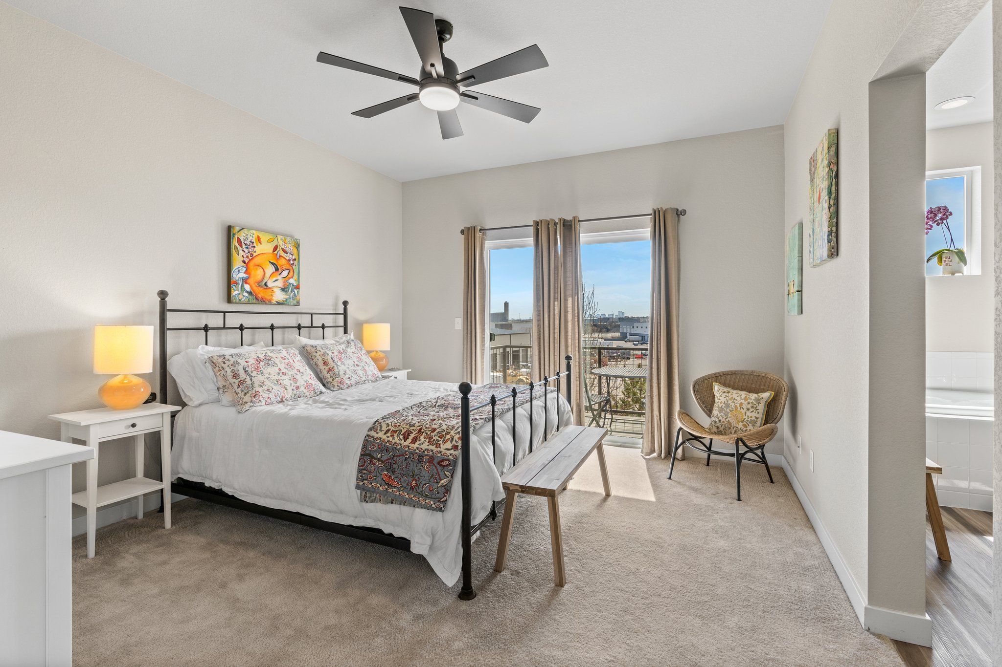 Upstairs, you can enjoy the spectacular primary bedroom with walk-in closet and 5-piece ensuite bath. Enjoy your morning coffee while taking in the mountain views from the private balcony off the primary suite. Sliding doors and the new ceiling fan/chandelier combo flood the space with light and fresh air.