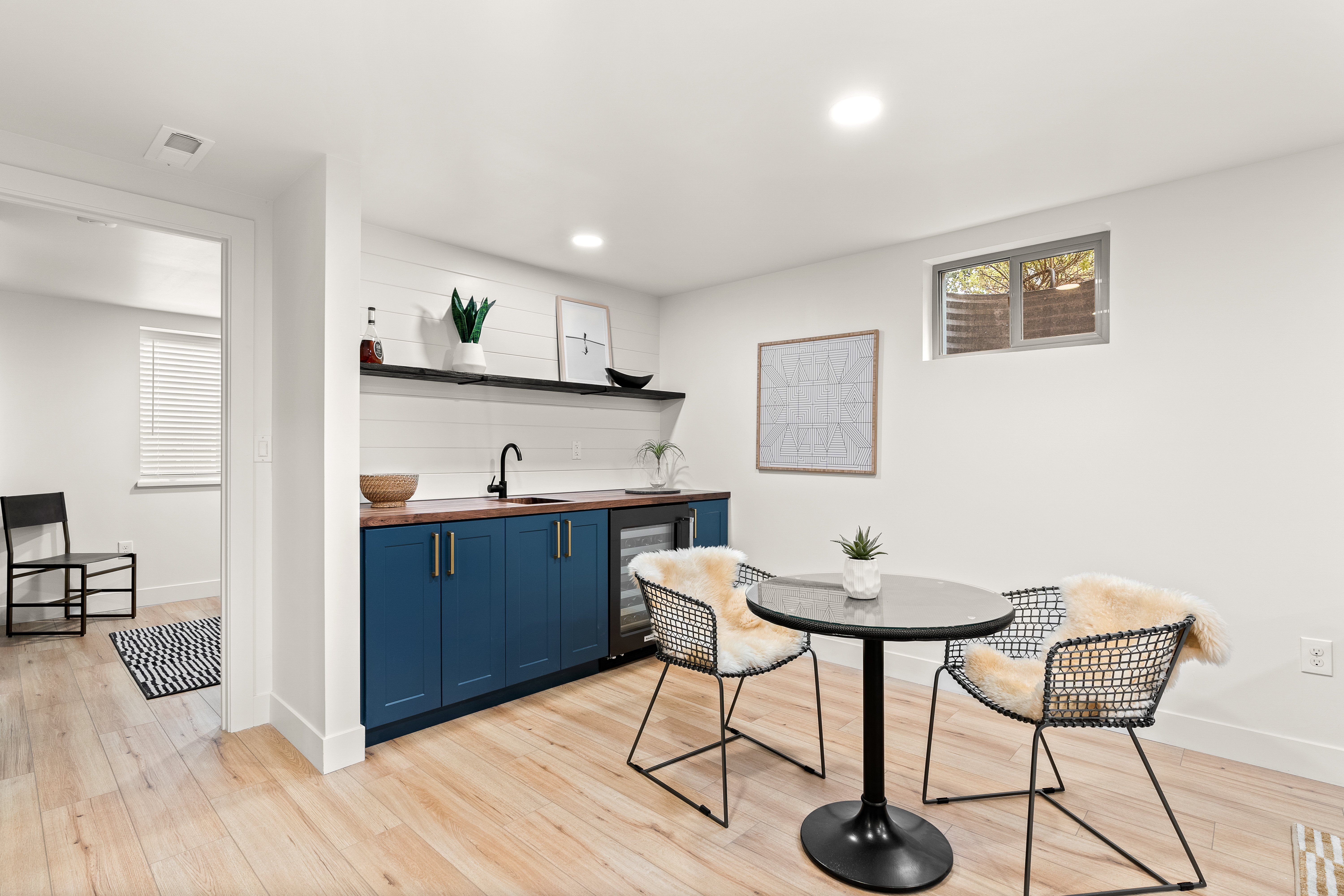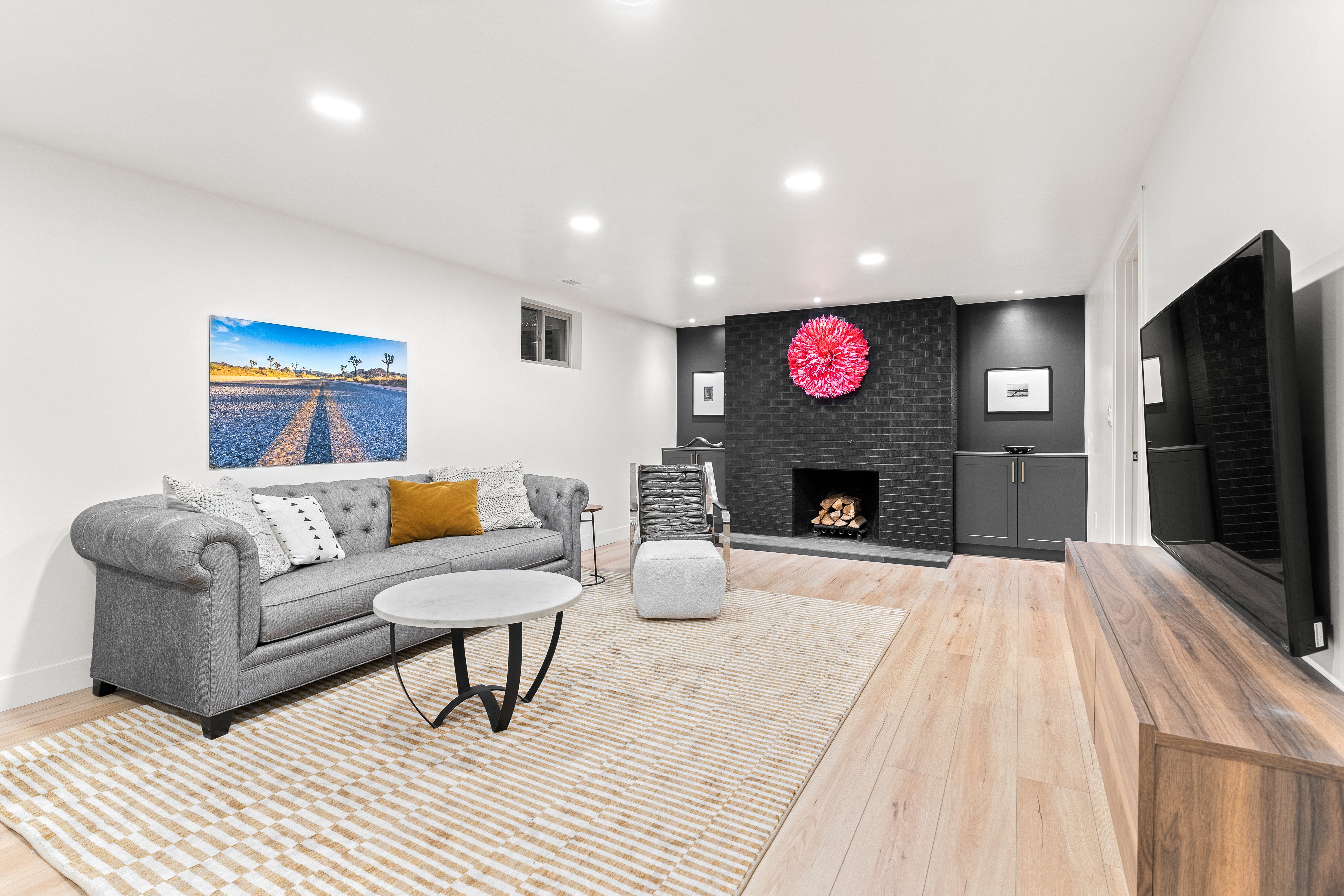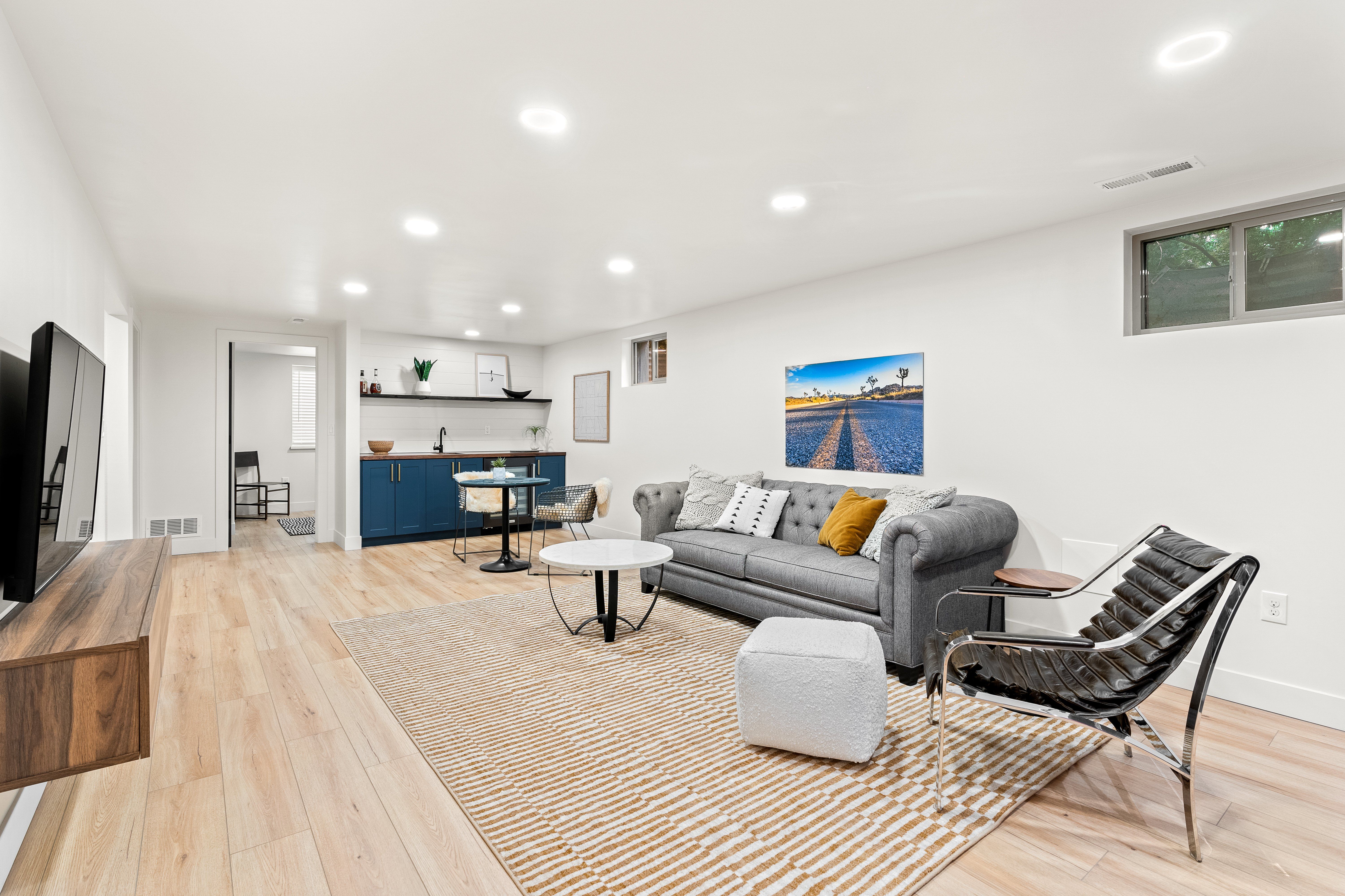 The newly finished lower level offers a substantial flex space with luxury vinyl flooring, wet bar, fireplace, ample storage, and a discreet laundry.