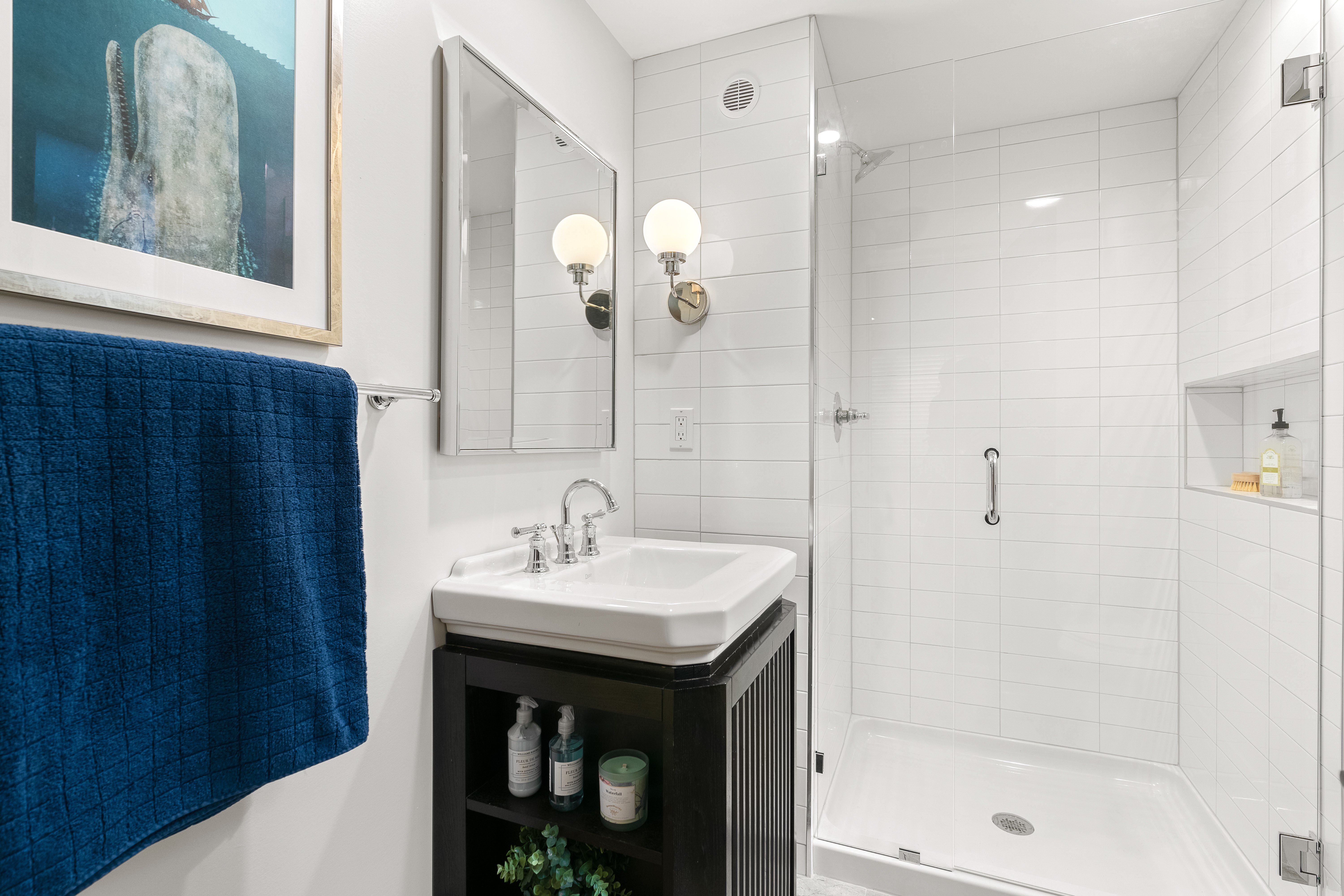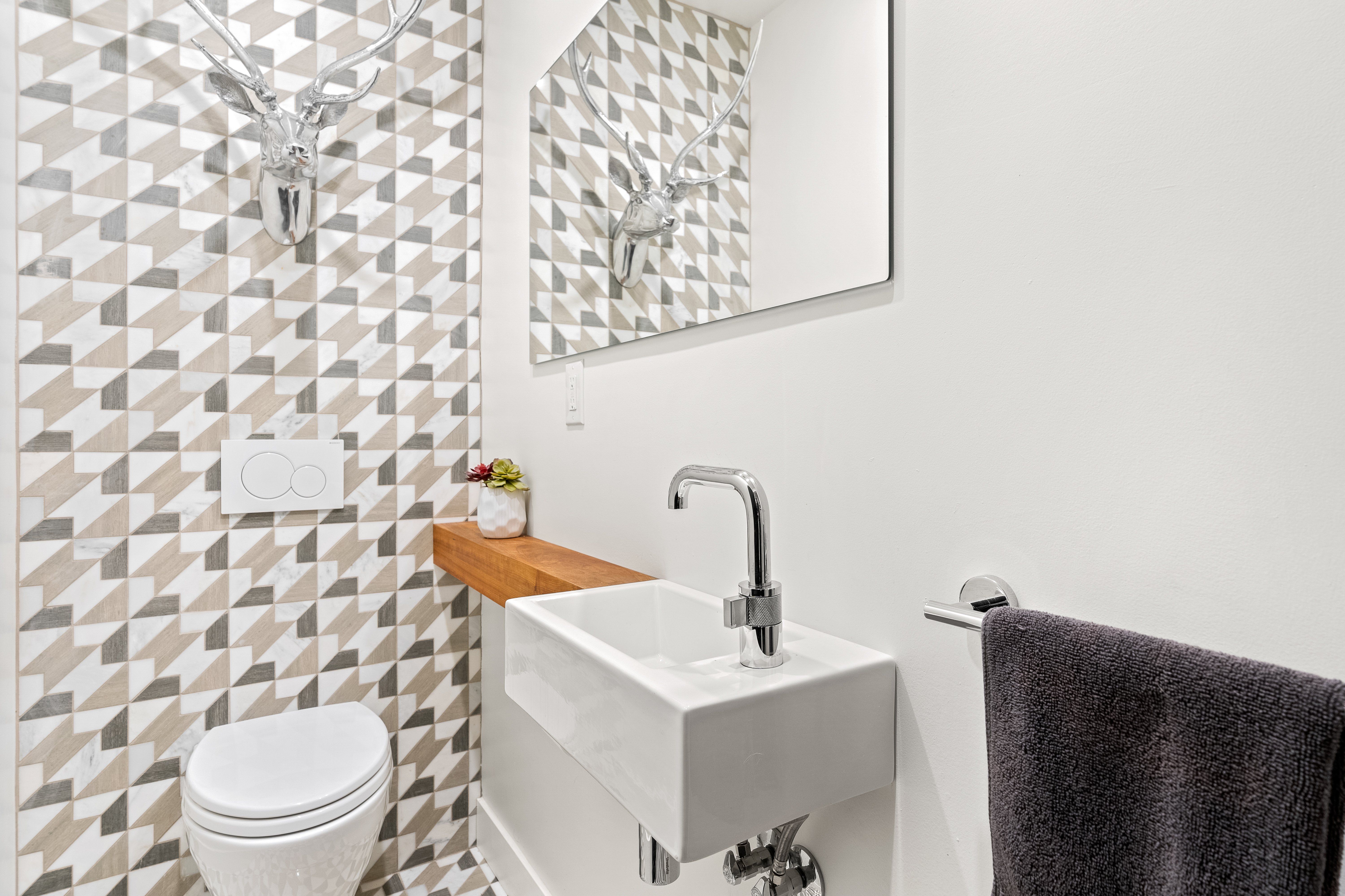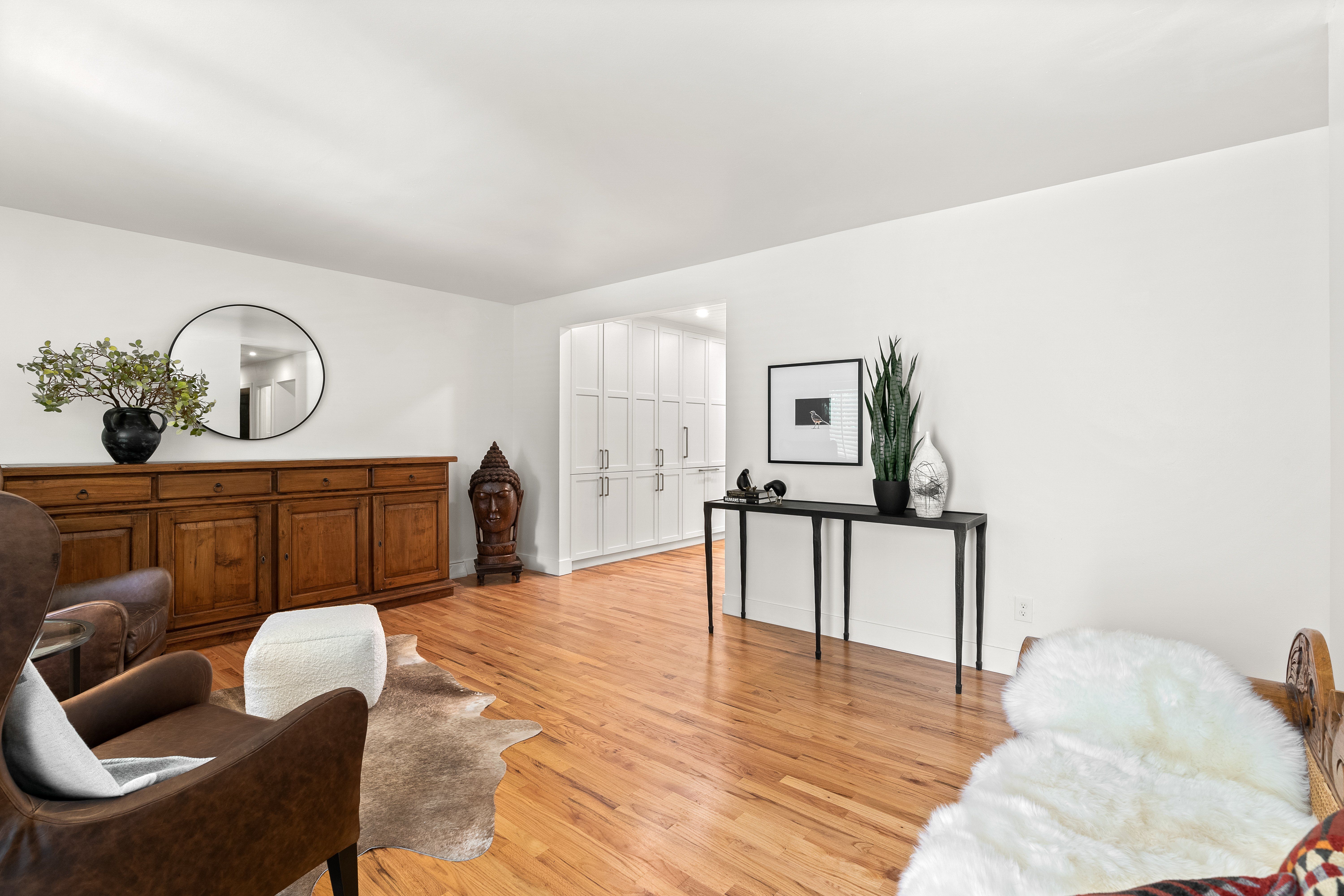 The newly finished lower level offers a substantial flex space with luxury vinyl flooring, wet bar, fireplace, ample storage, and a discreet laundry.
