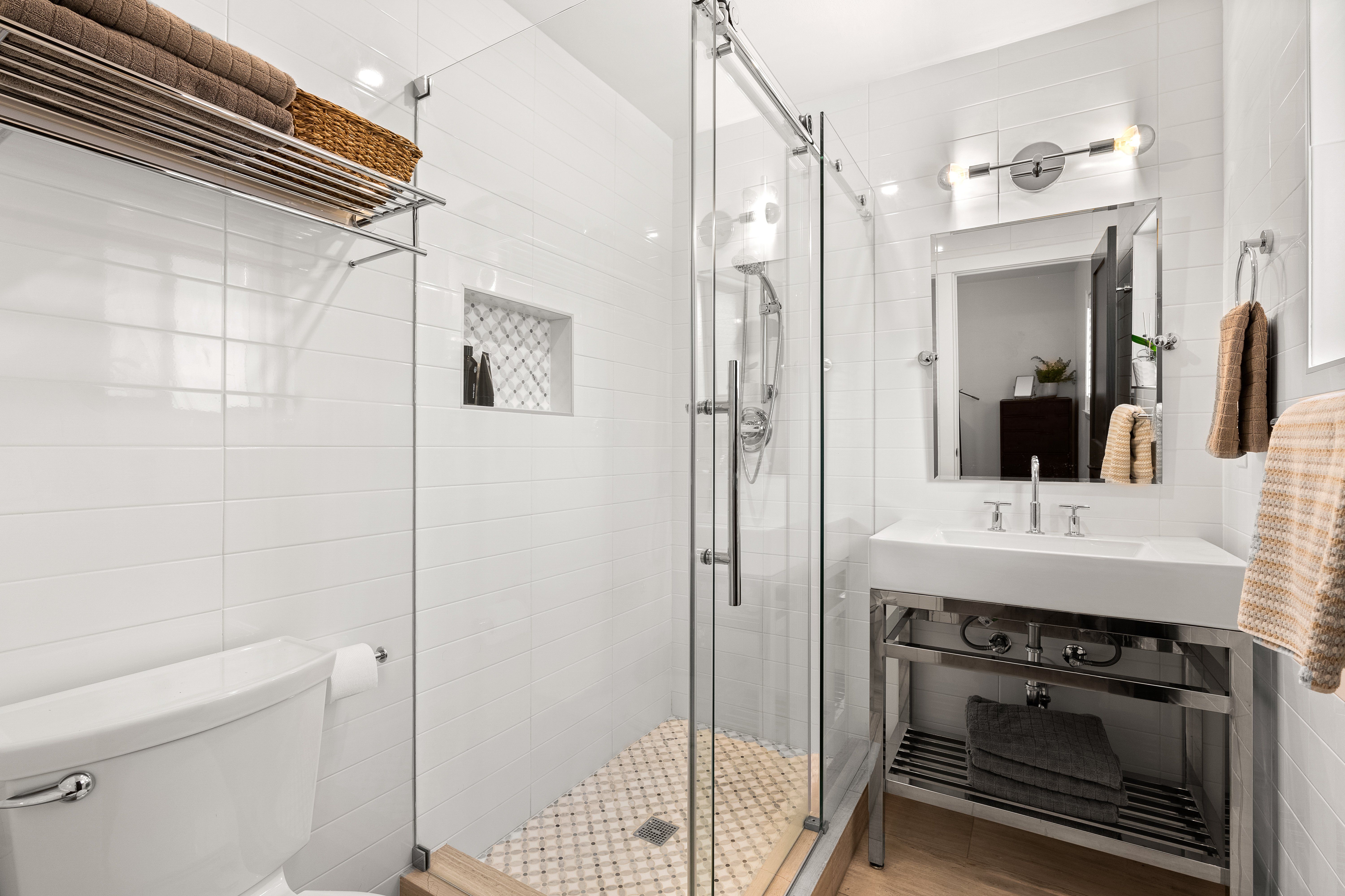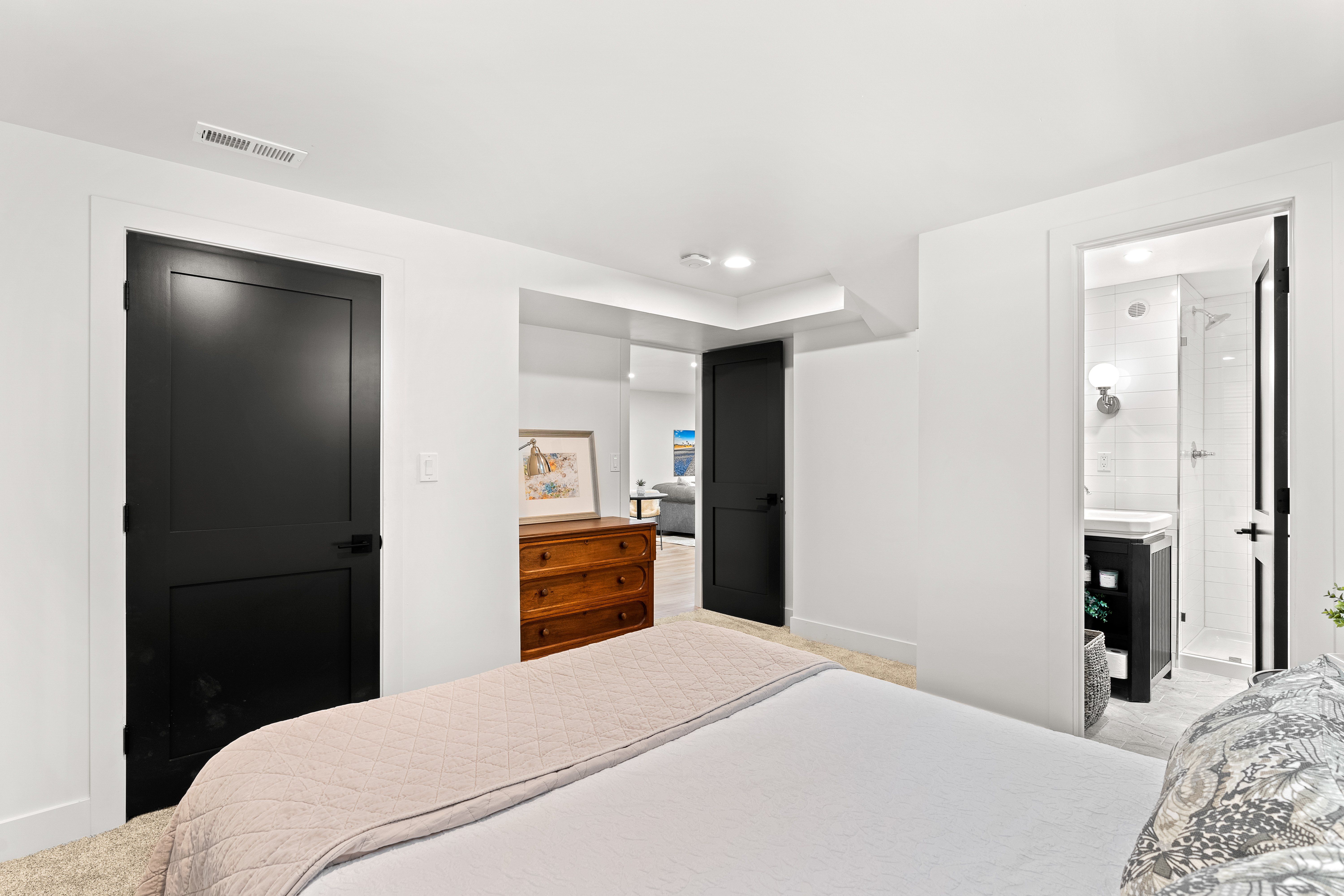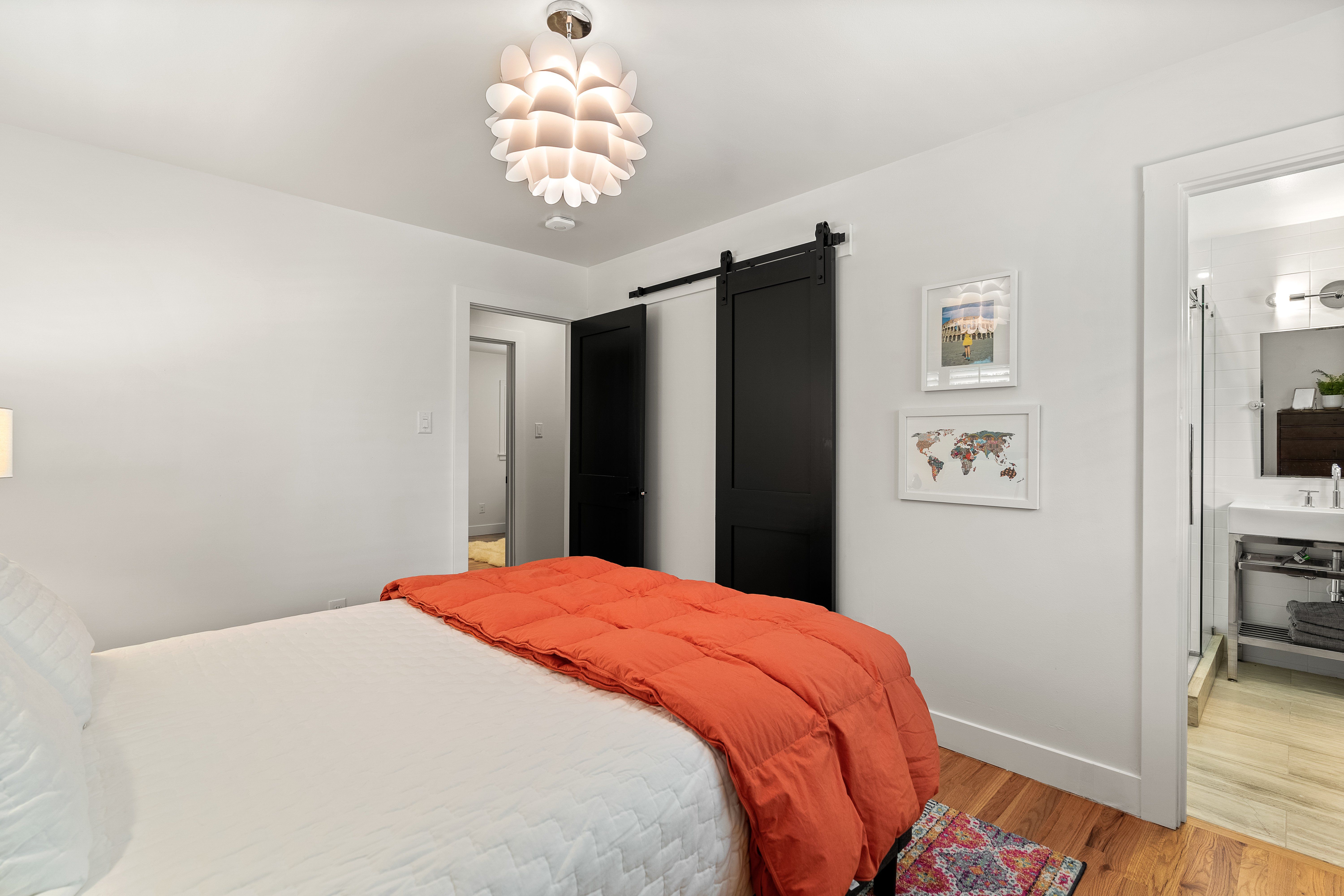 The main floor primary suite is a restful sanctuary with ensuite bath. Elfa shelving maximizes space. Heated flooring keeps everything cozy, and everyone should have an opportunity to look at themselves under these vanity lights. Looking good, friends!! Three additional bedrooms, two of which are ensuite, offer versatility to accommodate the new owner’s needs.