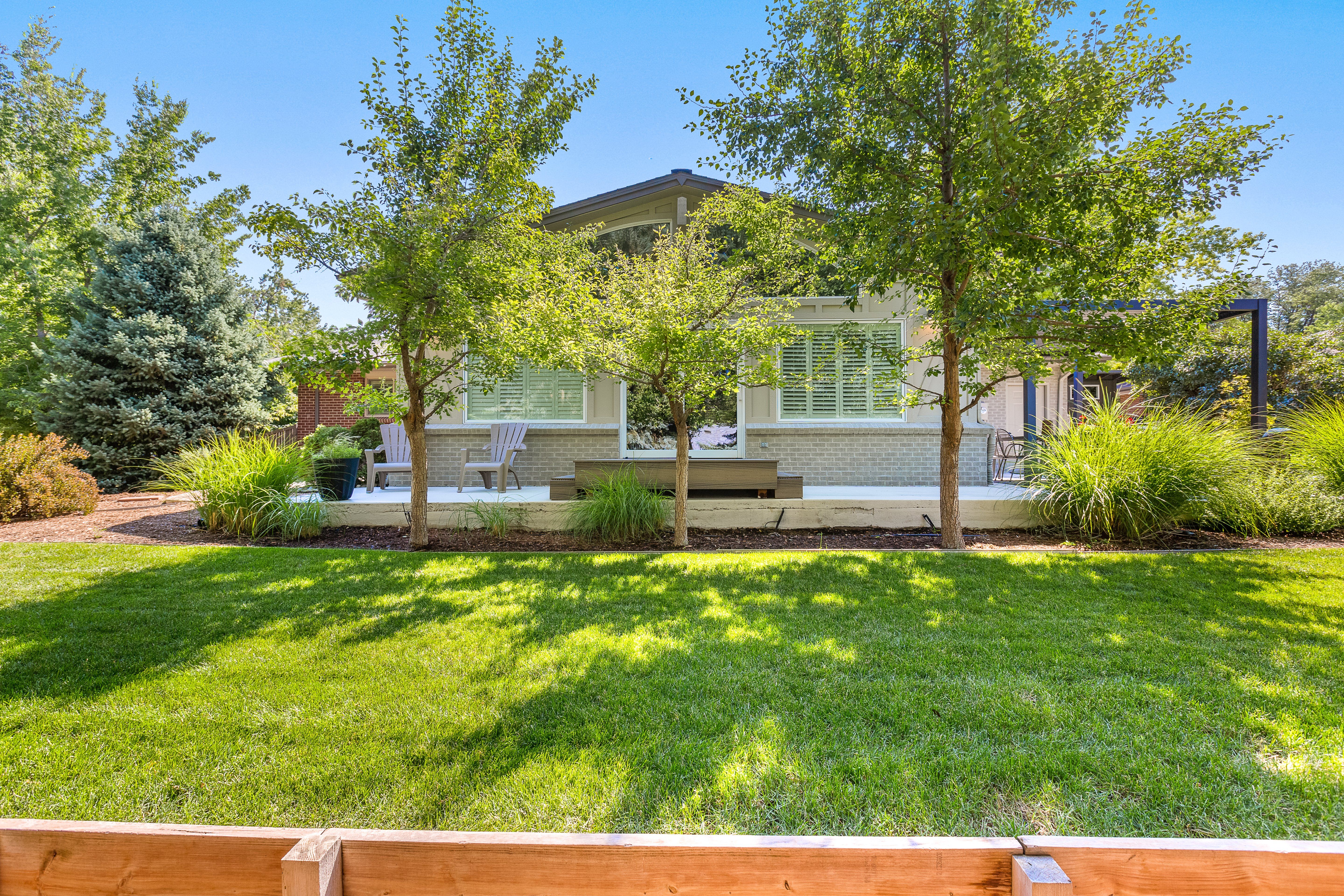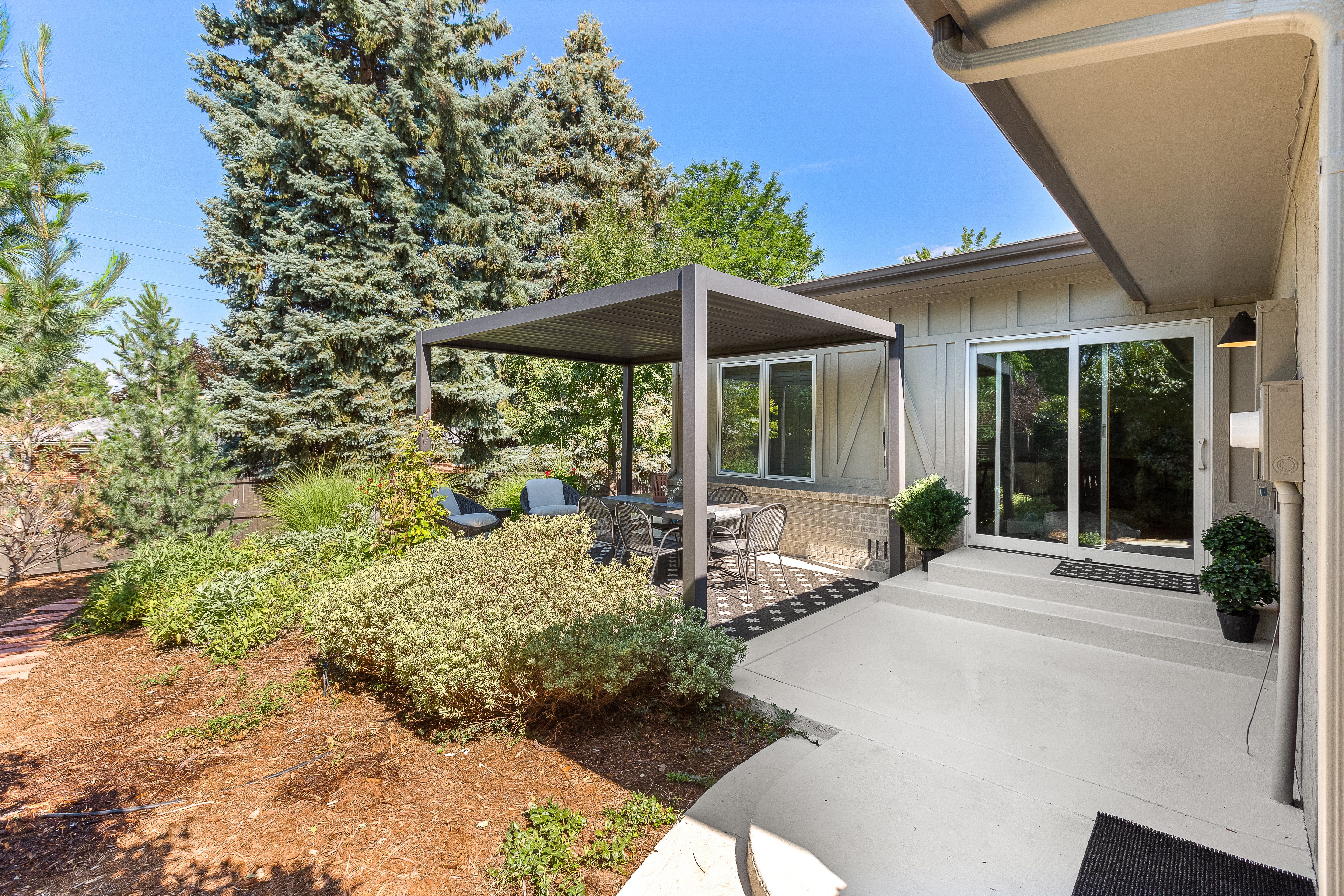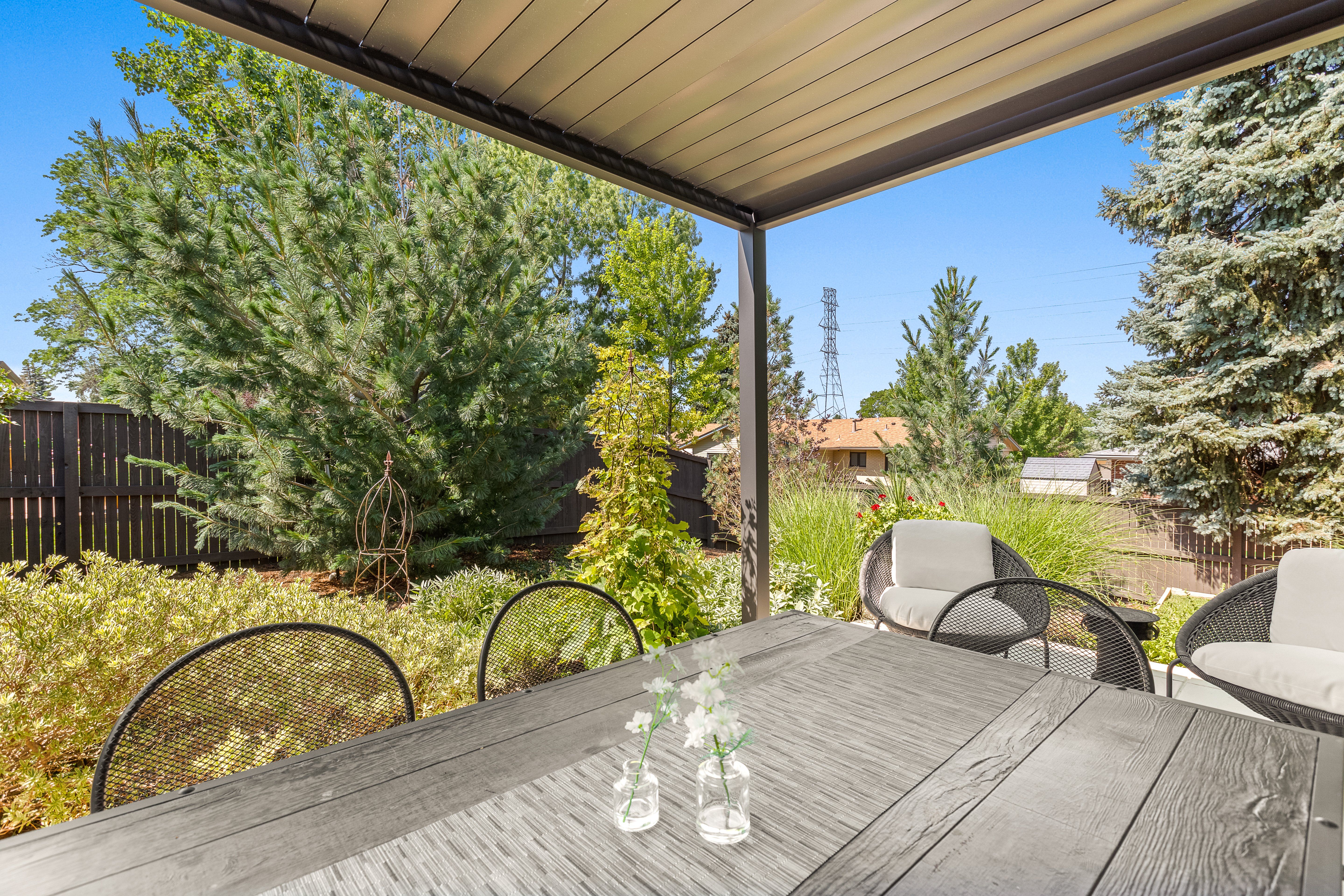 Enjoy the Colorado climate all year round in the large back yard framed by mature trees. All season pergola included! Convenient location near Southmoor Park, Whole Foods, and Tamarac Square with easy access to the Denver Tech Center and Downtown.