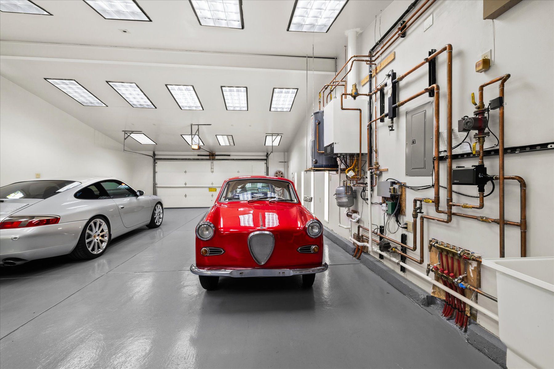 In addition to a traditional attached 2-car garage, the home boasts a detached 6-car heated garage. A dream for car enthusiasts, business owners, or creatives alike —with nearly 1,000 climate-controlled square feet, a half bath, its own boiler, and a heated driveway so you’ll never shovel snow again. This flexible space could serve as a workshop or be the starting point for a fantastic ADU conversion.