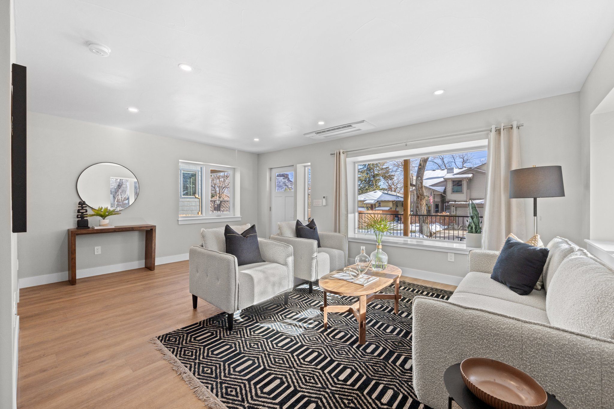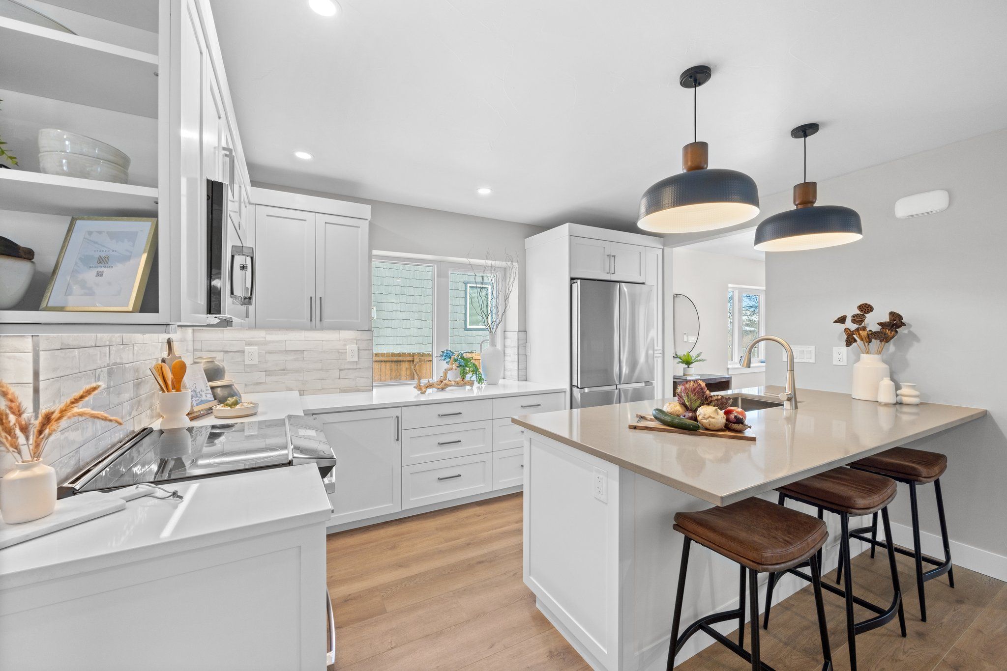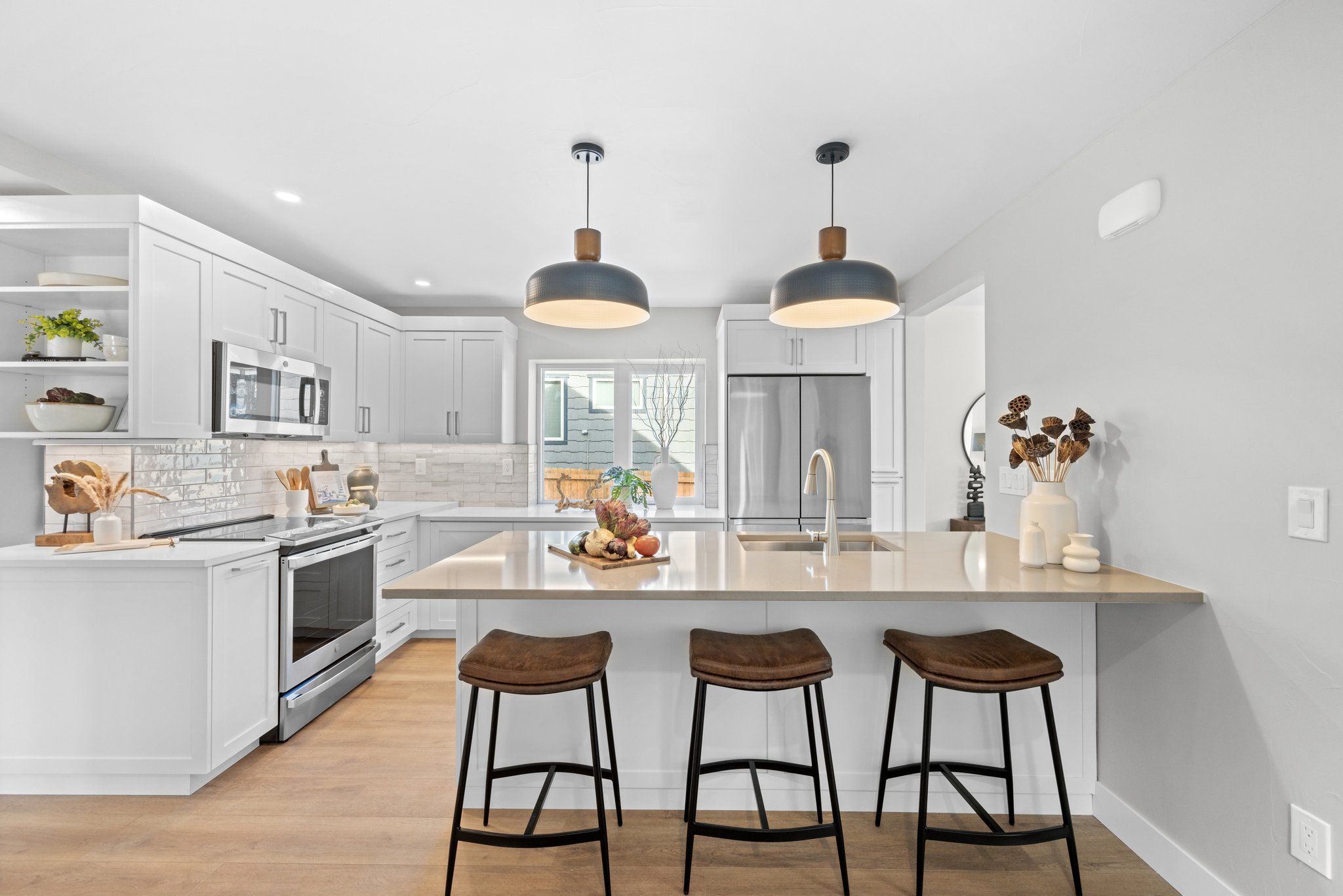 Amenities include a new state-of-the-art high efficiency heat pump washer/dryer combination, mini split heating and cooling with five separate zone controls and heat pump hot water heater. Each bedroom has its own climate control. Two primary bedrooms with ensuites are on the second level and one large bedroom with an adjacent bathroom located in the basement. The home is filled with natural light thanks to new modern windows. Efficiency was the focus of this property which equates to low utility bills. There is an attached single oversized garage with automatic garage door and 220v outlet for electric vehicle charging.